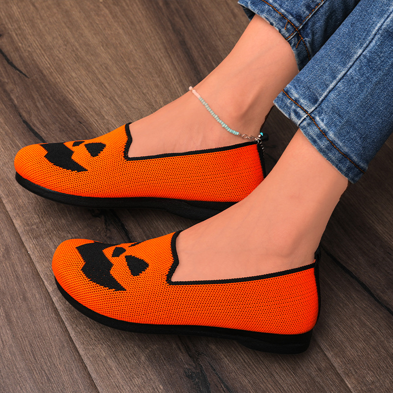 Новые женские повседневные туфли 2025 года с дизайном «Тыква на Хэллоуин», легкие, дышащие, модные тканевые туфли для дропшиппинга на TEMU