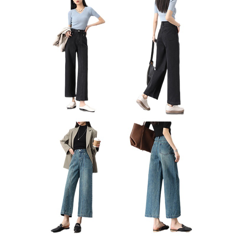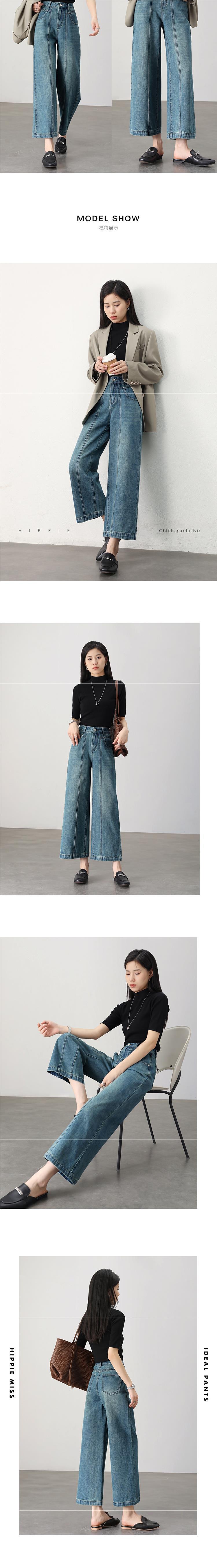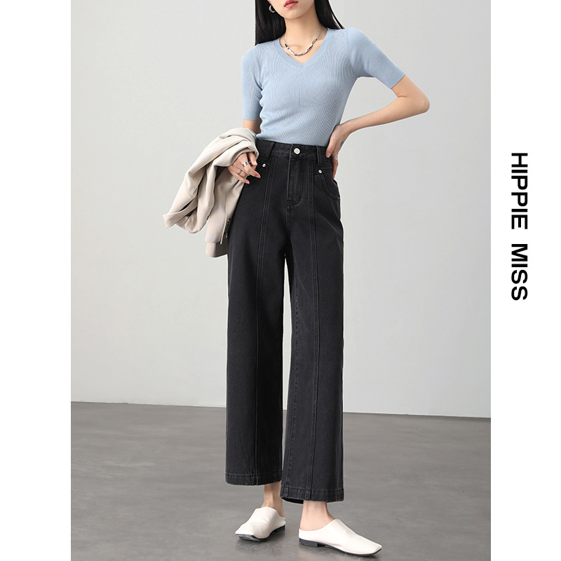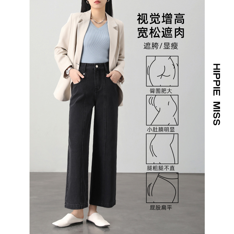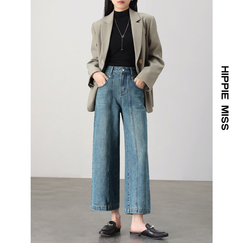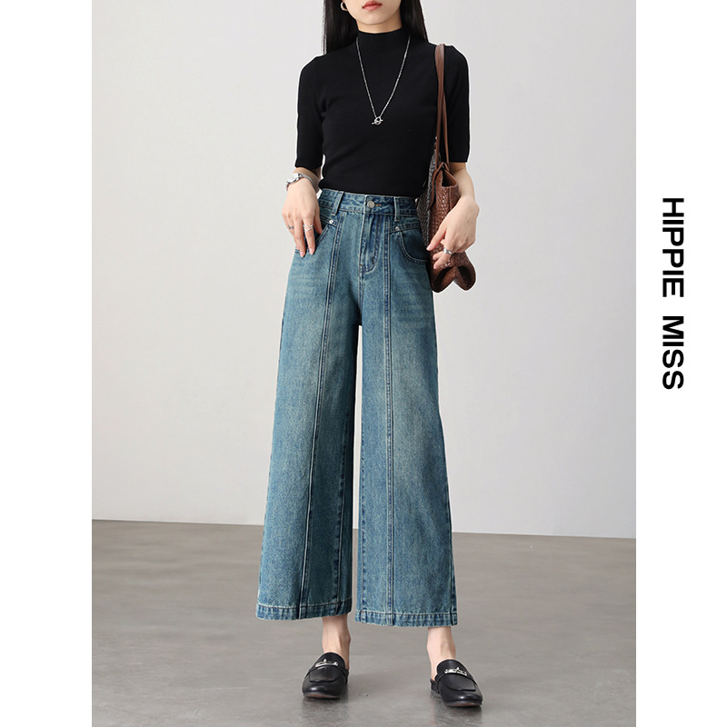 IT2 девушка хиппи с высокой талией широкие брюки джинсовая девушка 2024 весенний сегментный дизайн