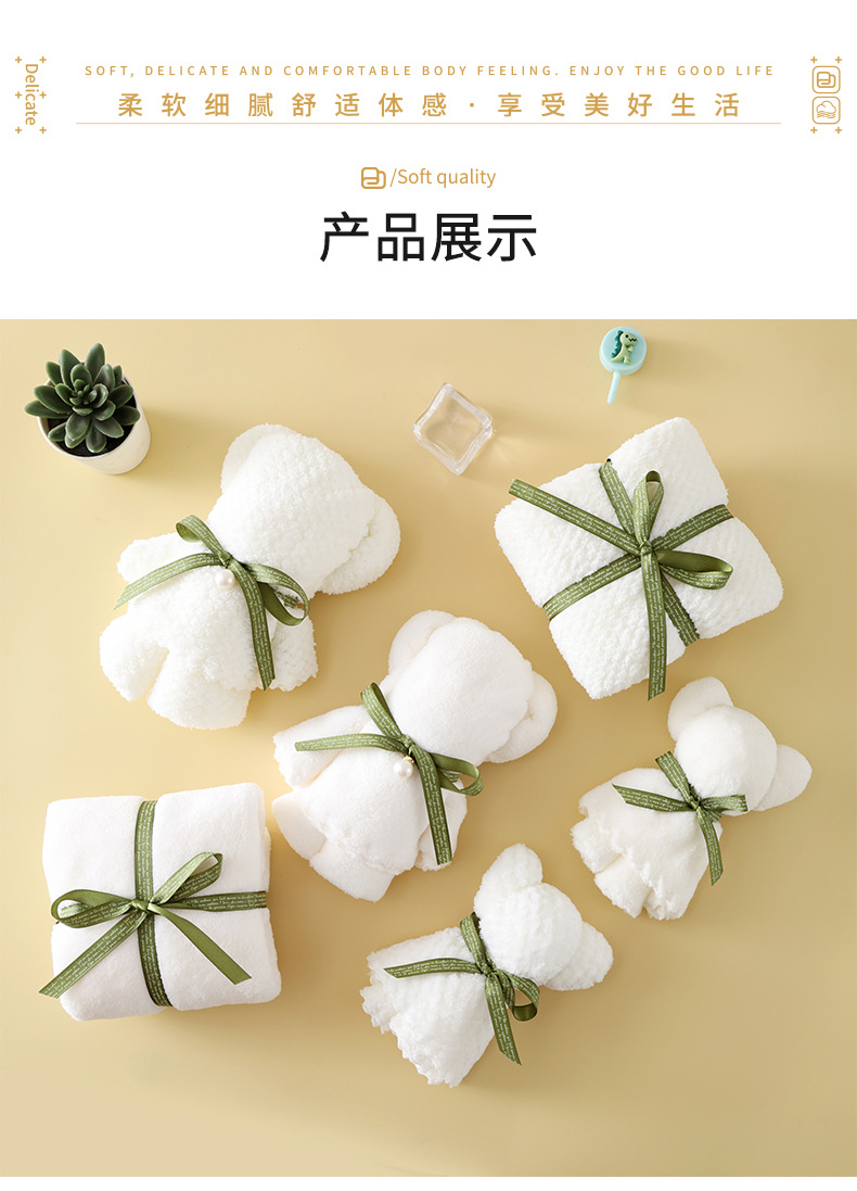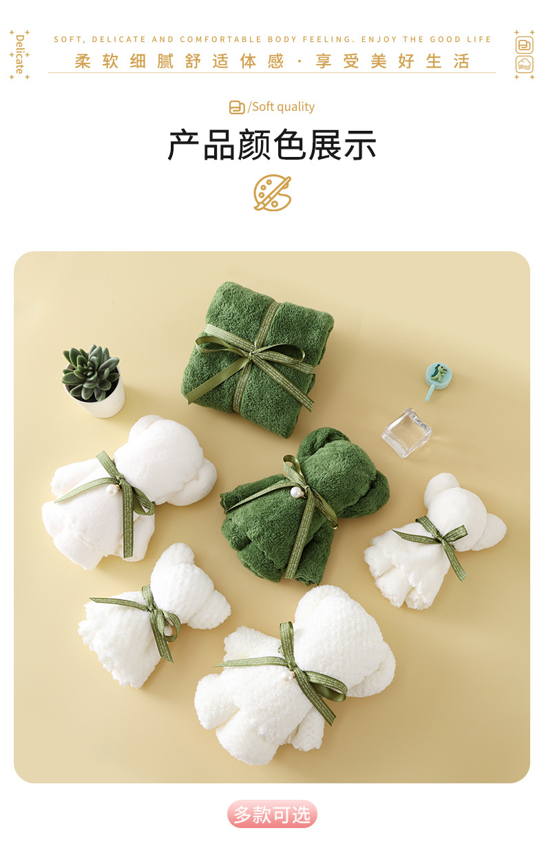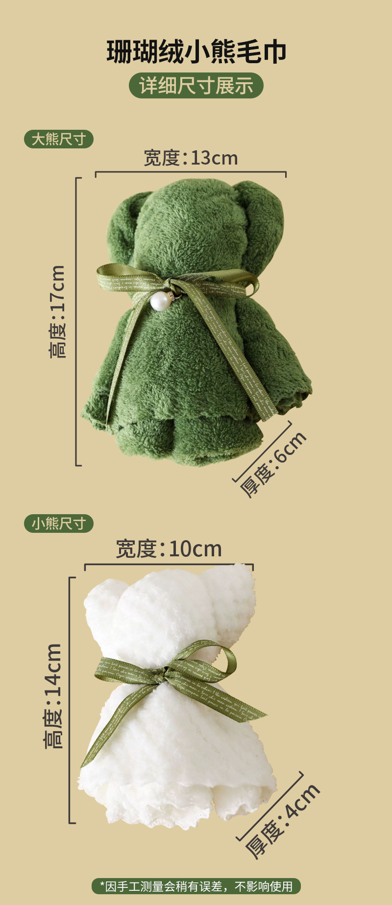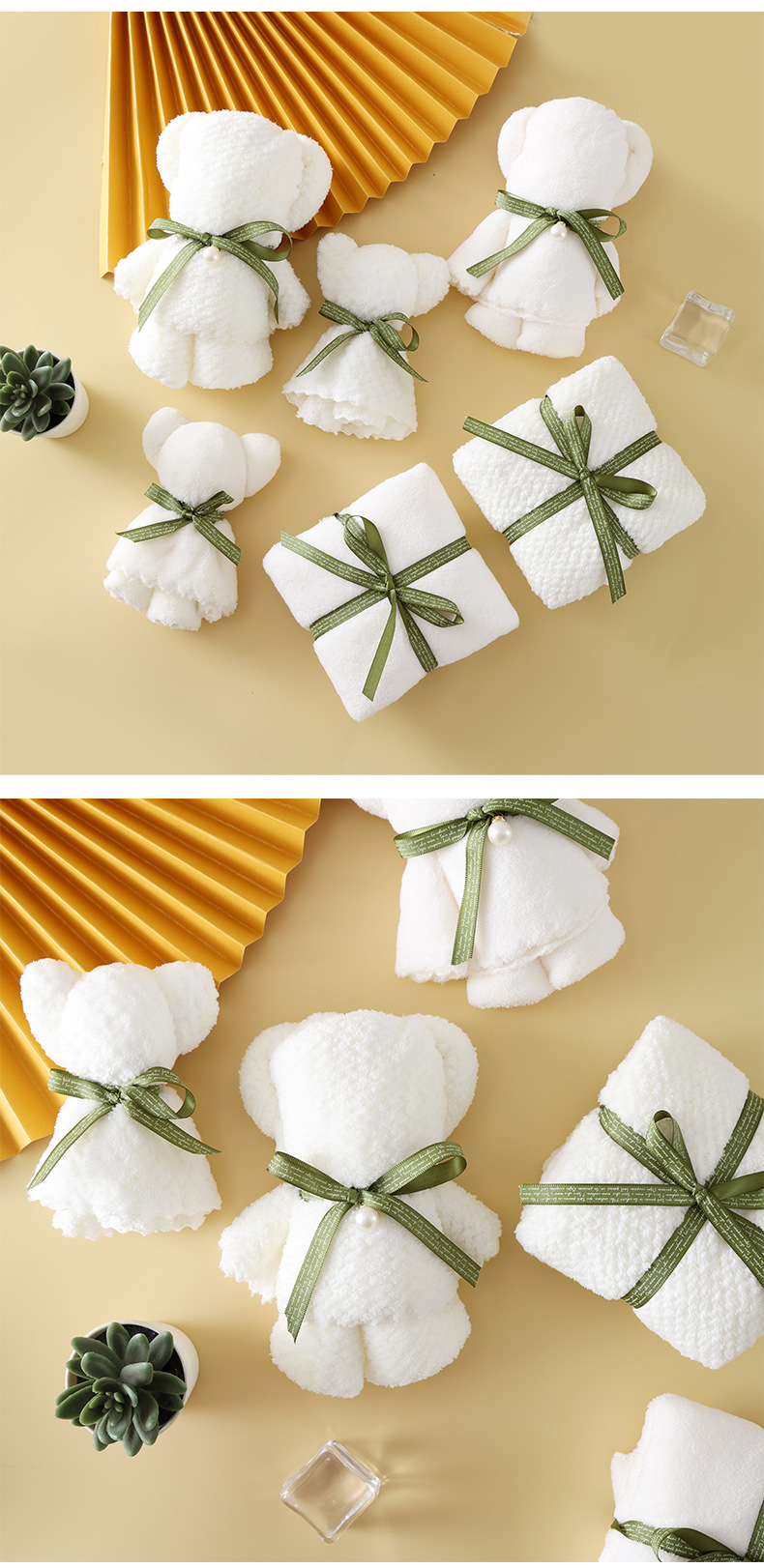 Коралловый плюшевый медвежонок полотенце маття зеленая лента маленькая свежая свадебная лавка