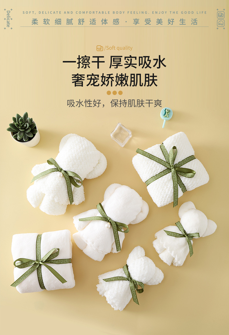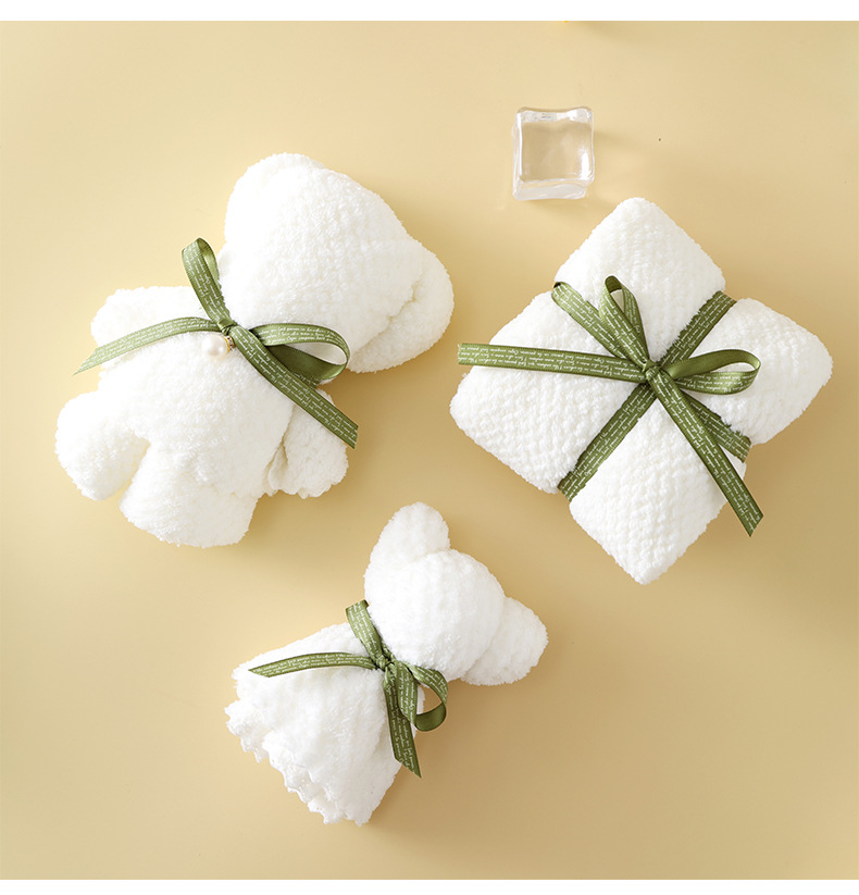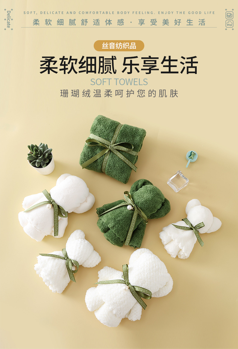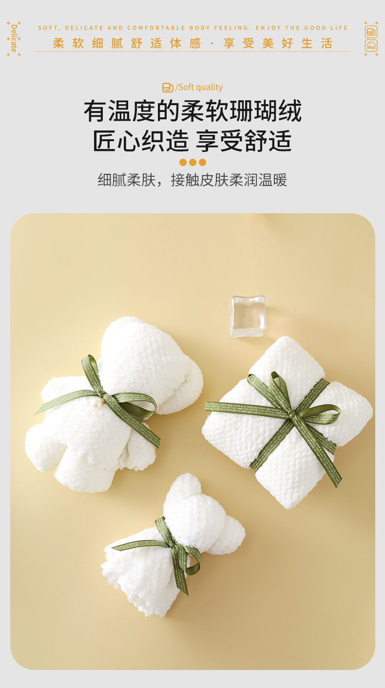 Коралловый плюшевый медвежонок полотенце маття зеленая лента маленькая свежая свадебная лавка