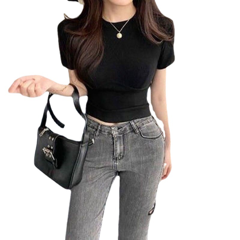 Обтягенный топ с характерным основанием на груди, нижняя футболка женская 2023 новая осень короткая