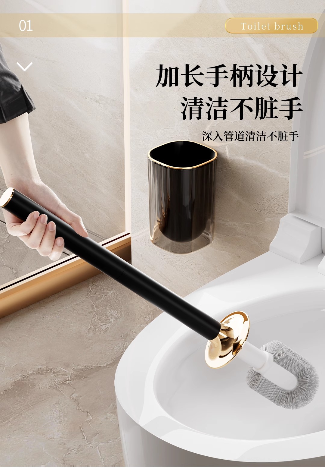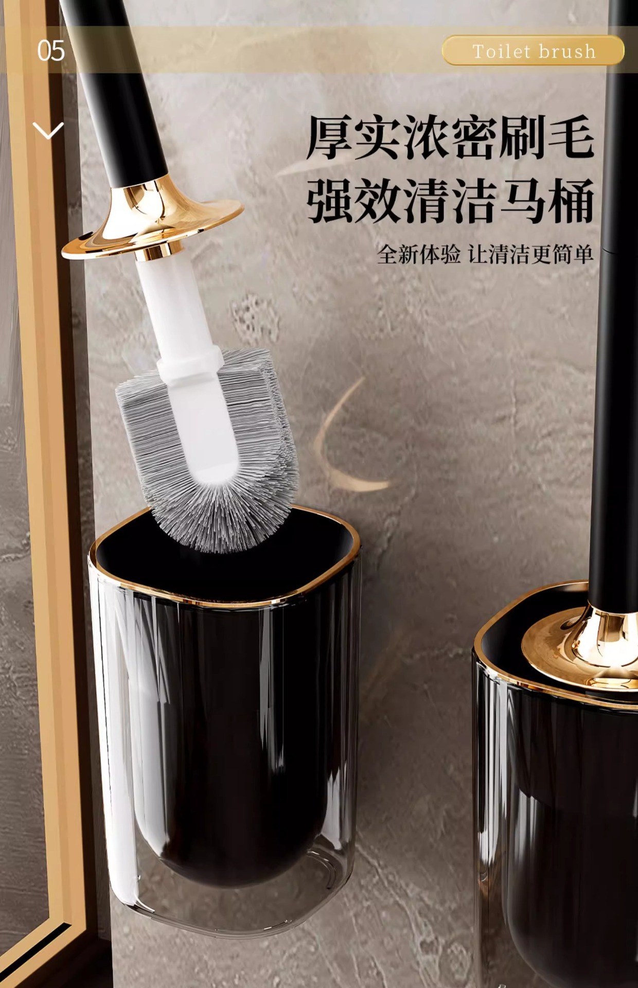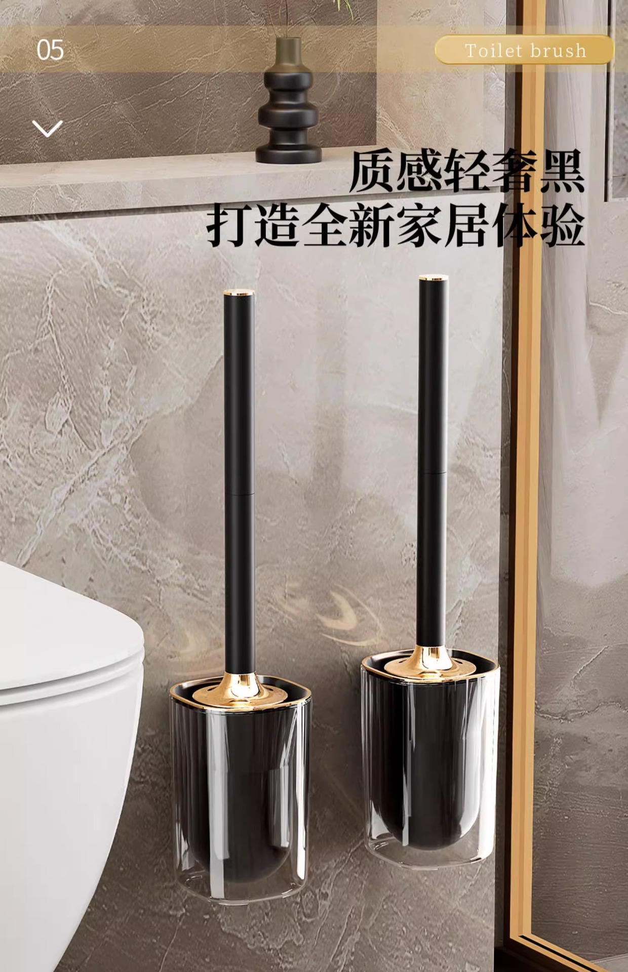 Одиночная щетка для унитаза из ПЭТ черного золота; Черно-золотые двухпакетные щетки для унитаза из ПЭТ.