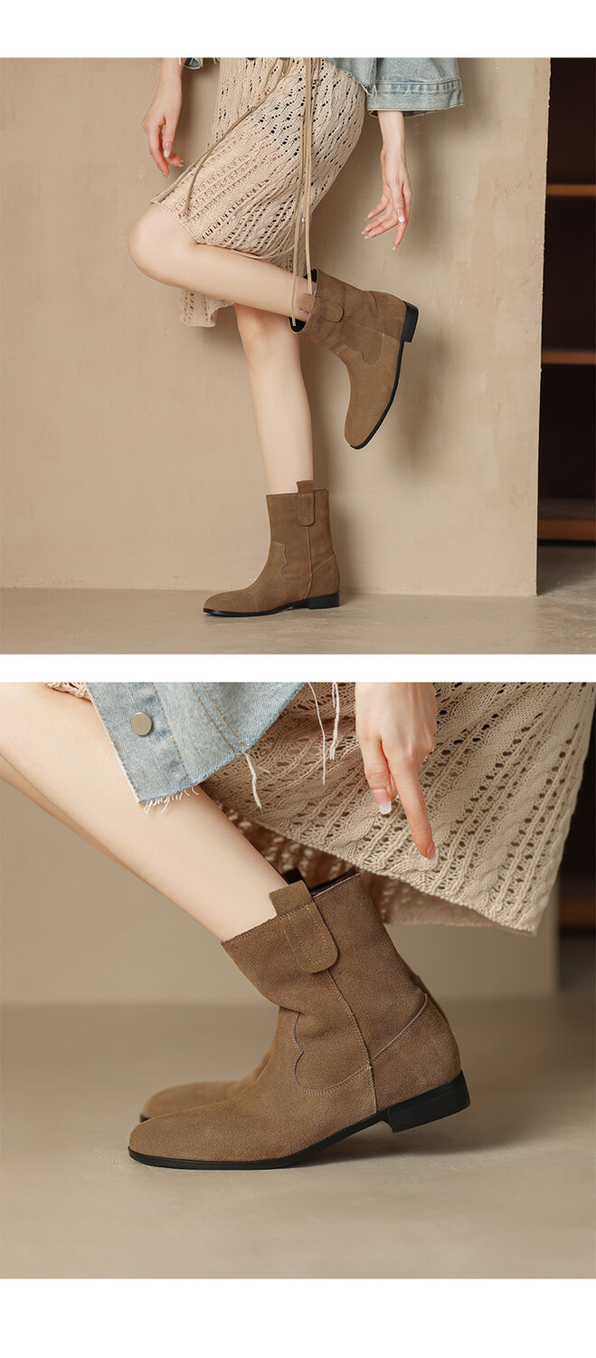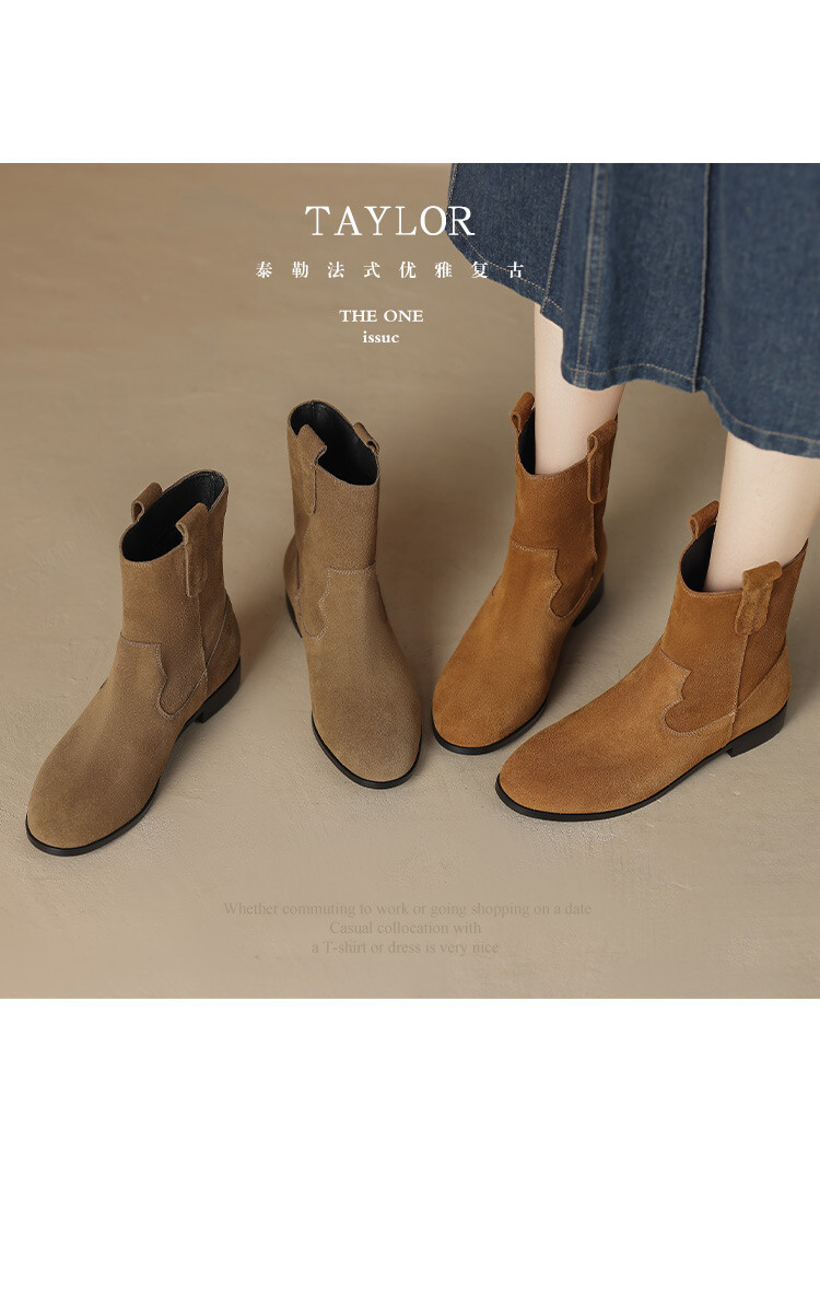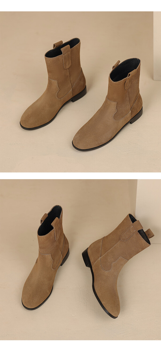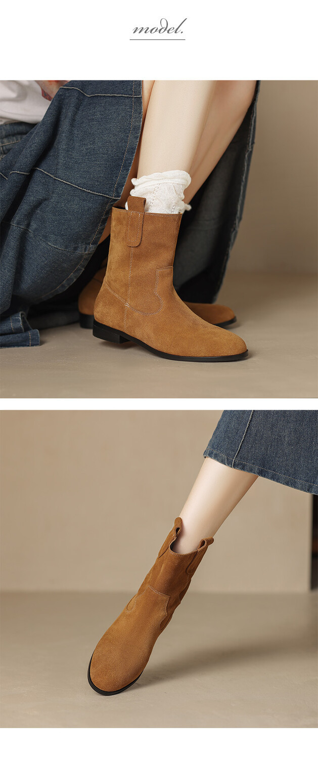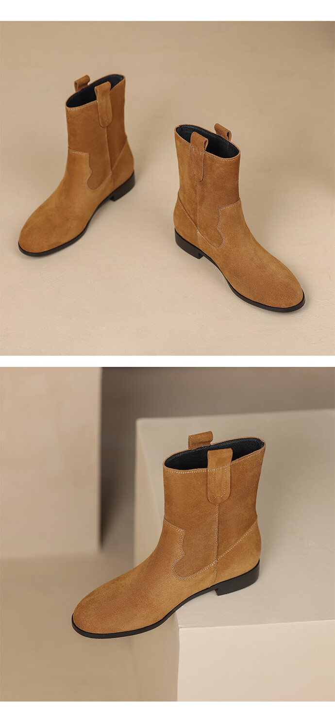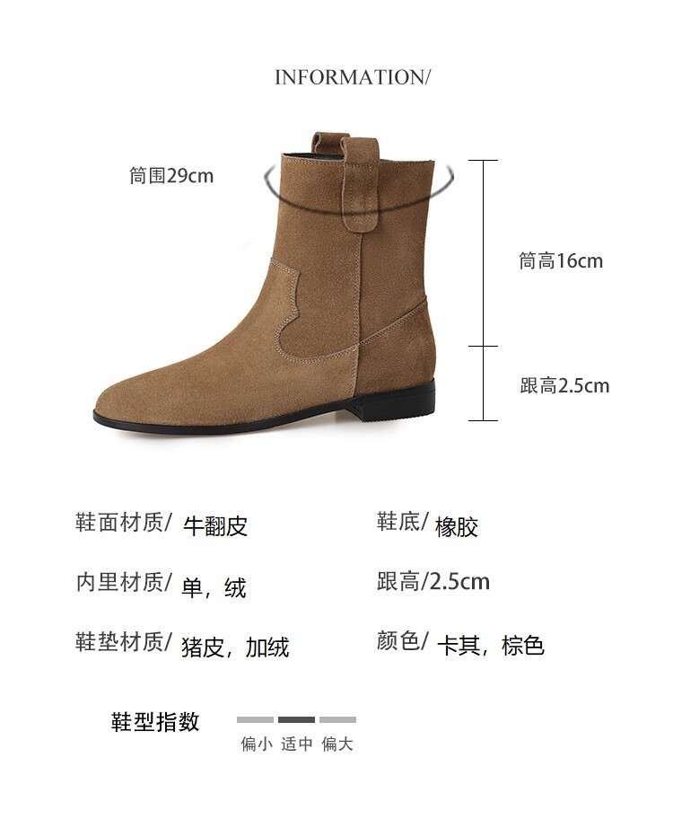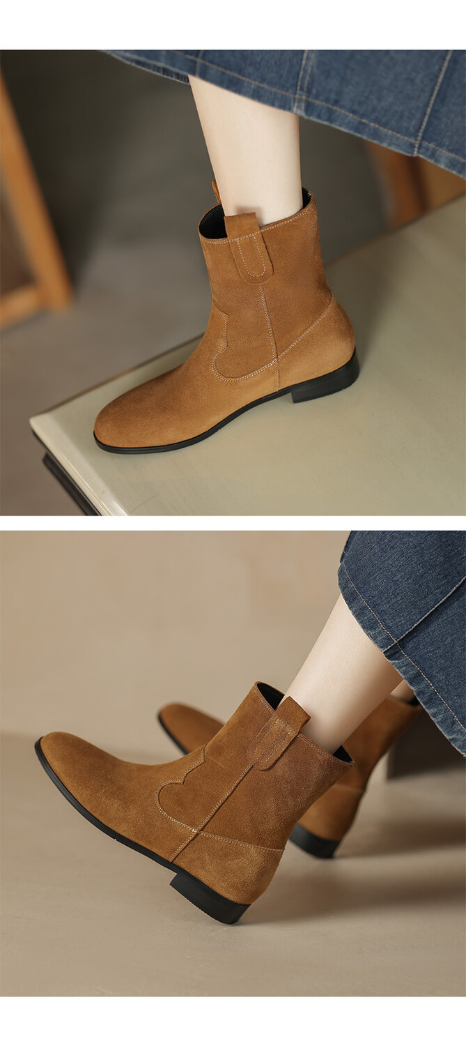 2024 новый гигантский дикий ~ Кожаные круглые западные ковбойские сапоги женские ретро-матовые темпераментные короткие сапоги на низком каблуке осень ~