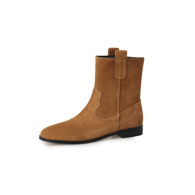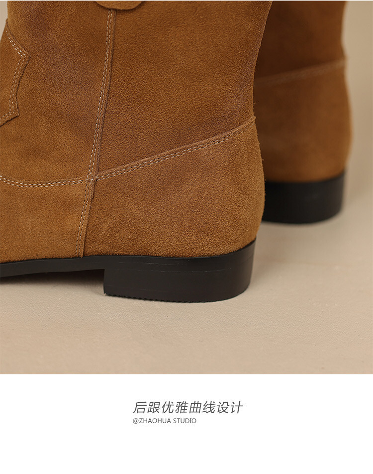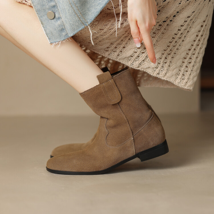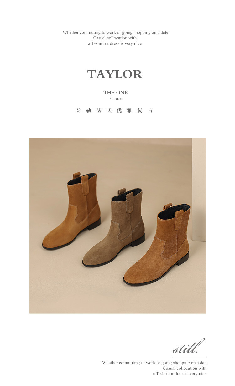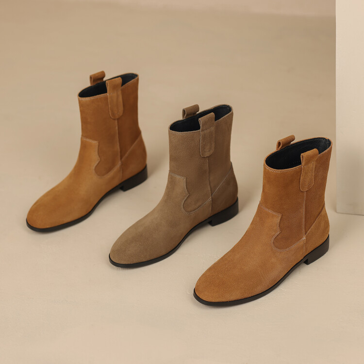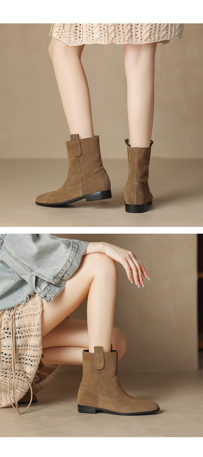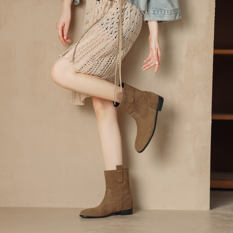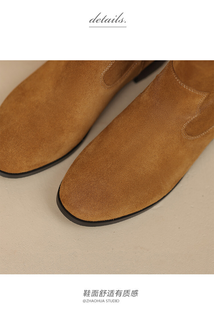 2024 новый гигантский дикий ~ Кожаные круглые западные ковбойские сапоги женские ретро-матовые темпераментные короткие сапоги на низком каблуке осень ~