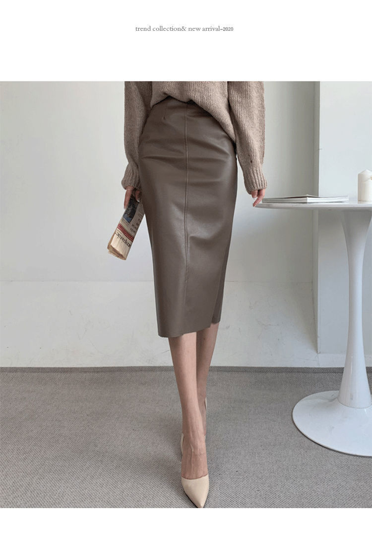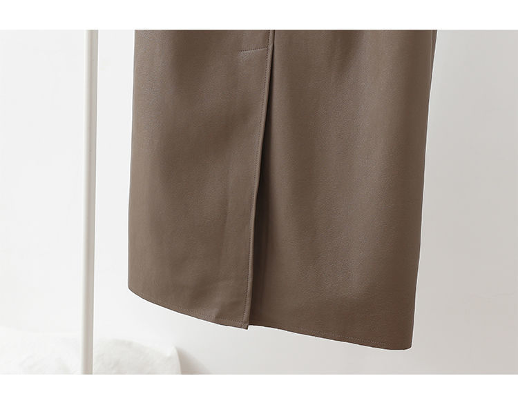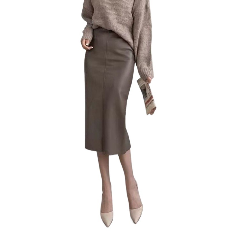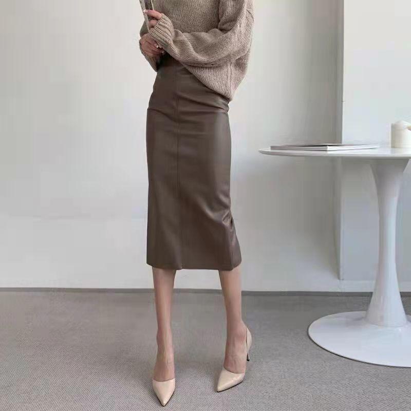 Кожаная юбка Кожаная женская задняя сексапильная юбка осенне-зимняя корейская версия темперамента с высокой талией средней и длинной прямой юбкой с бедрами