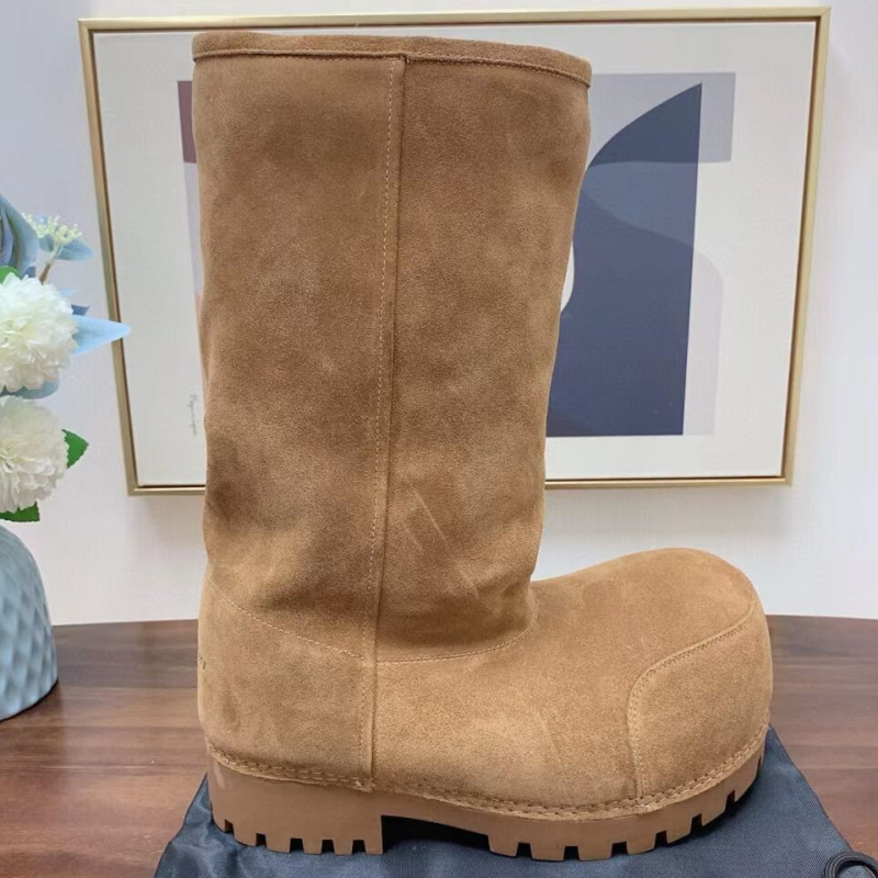 2024 зимние новые уродливые снежные сапоги сапоги для мужчин и женщин с толстой подошвой увеличены, но колени высокие трубочки теплые хлопчатобумажные сапоги