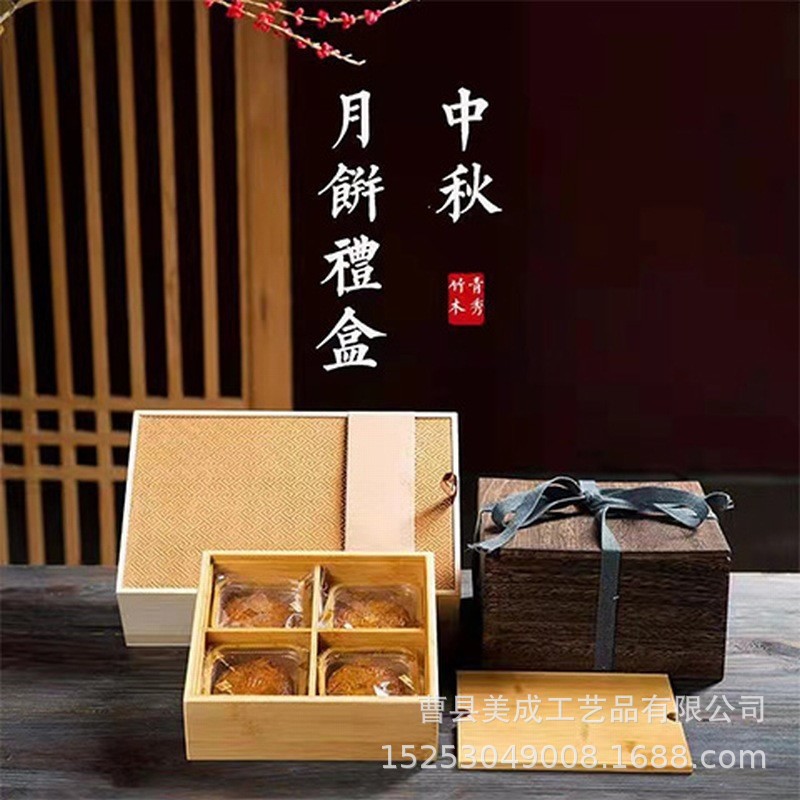 Праздник середины осени лунный пирог подарочная коробка Nanzhu деревянный лунный пирог упаковочная коробка Праздник середины осени лунный пирог подарочная коробка упаковка 4 сетки для хранения деревянная коробка