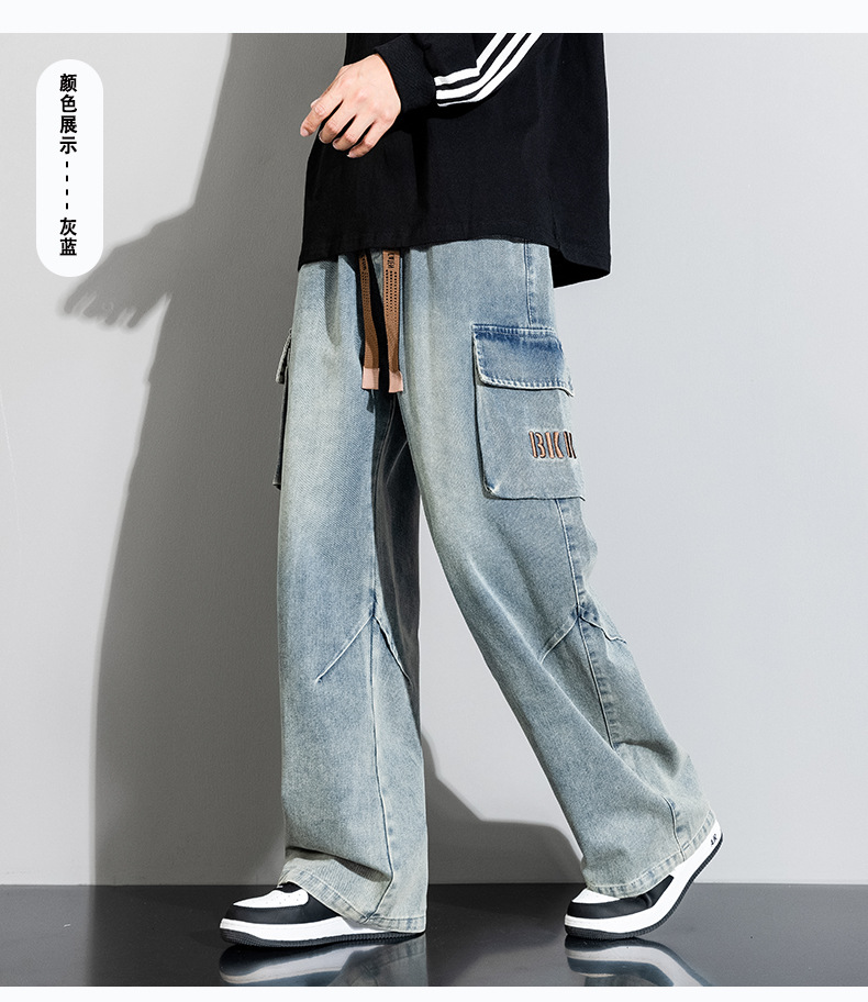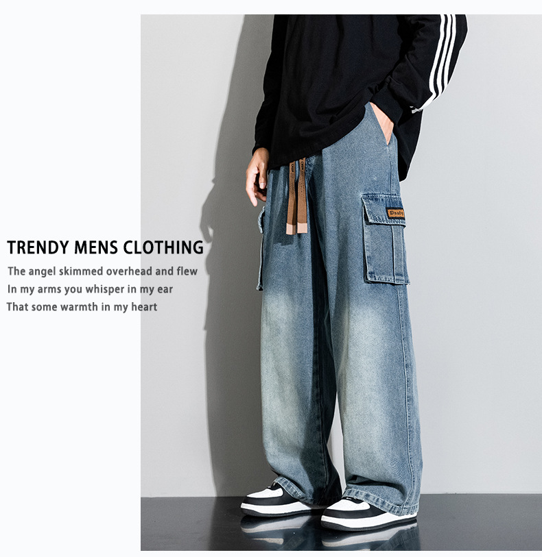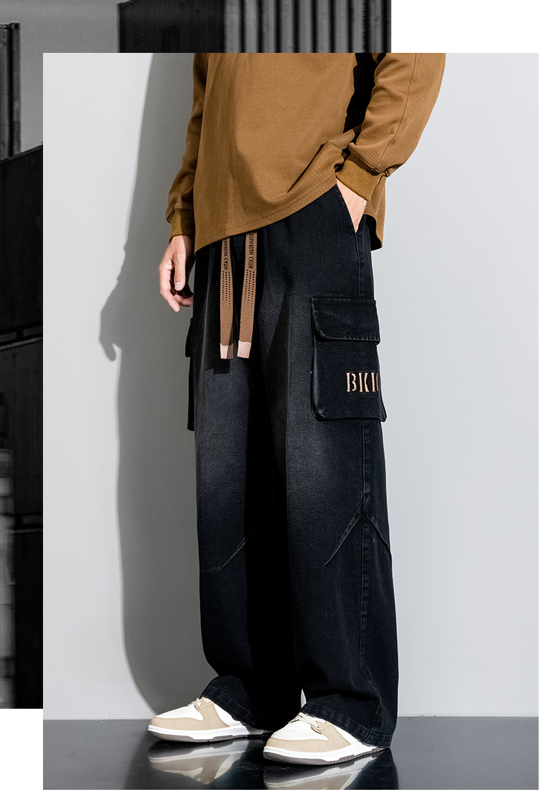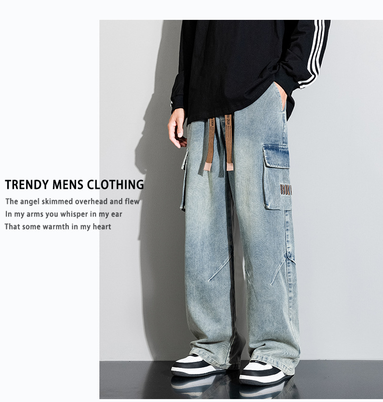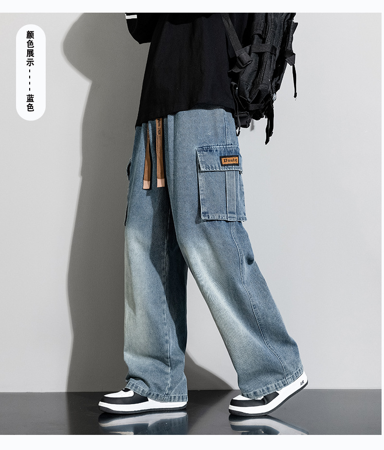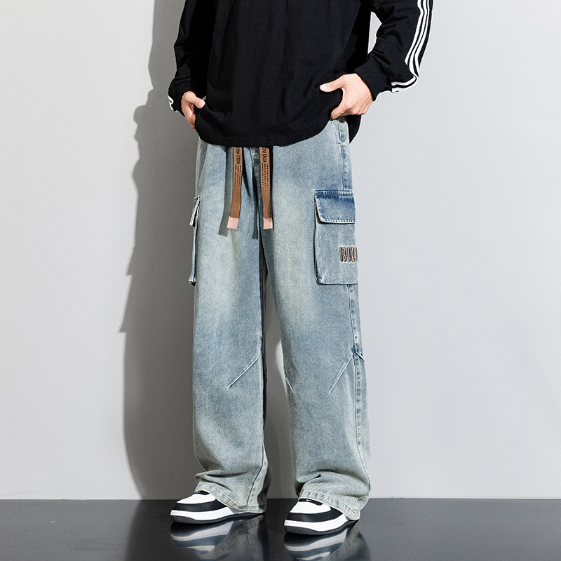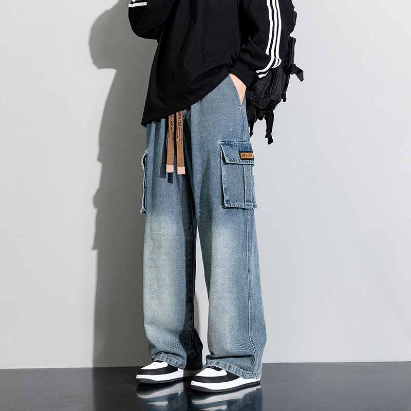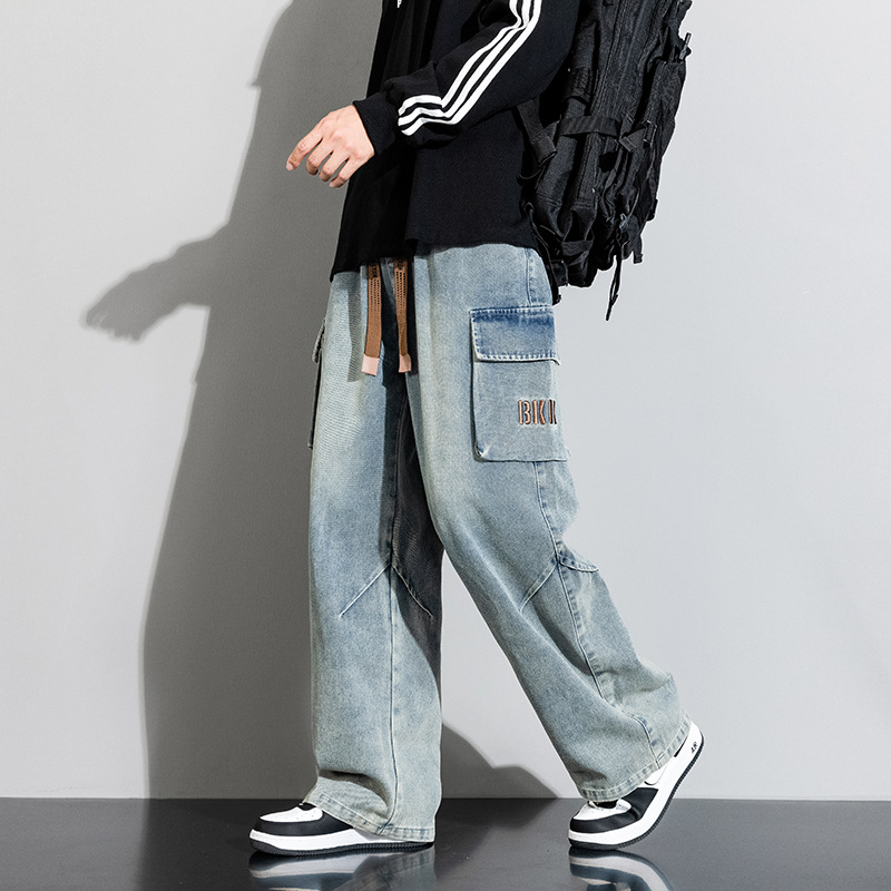 Джинсовые американские джинсы High Street Design Чувство Широкие брюки Ретро Мойка Мужская одежда