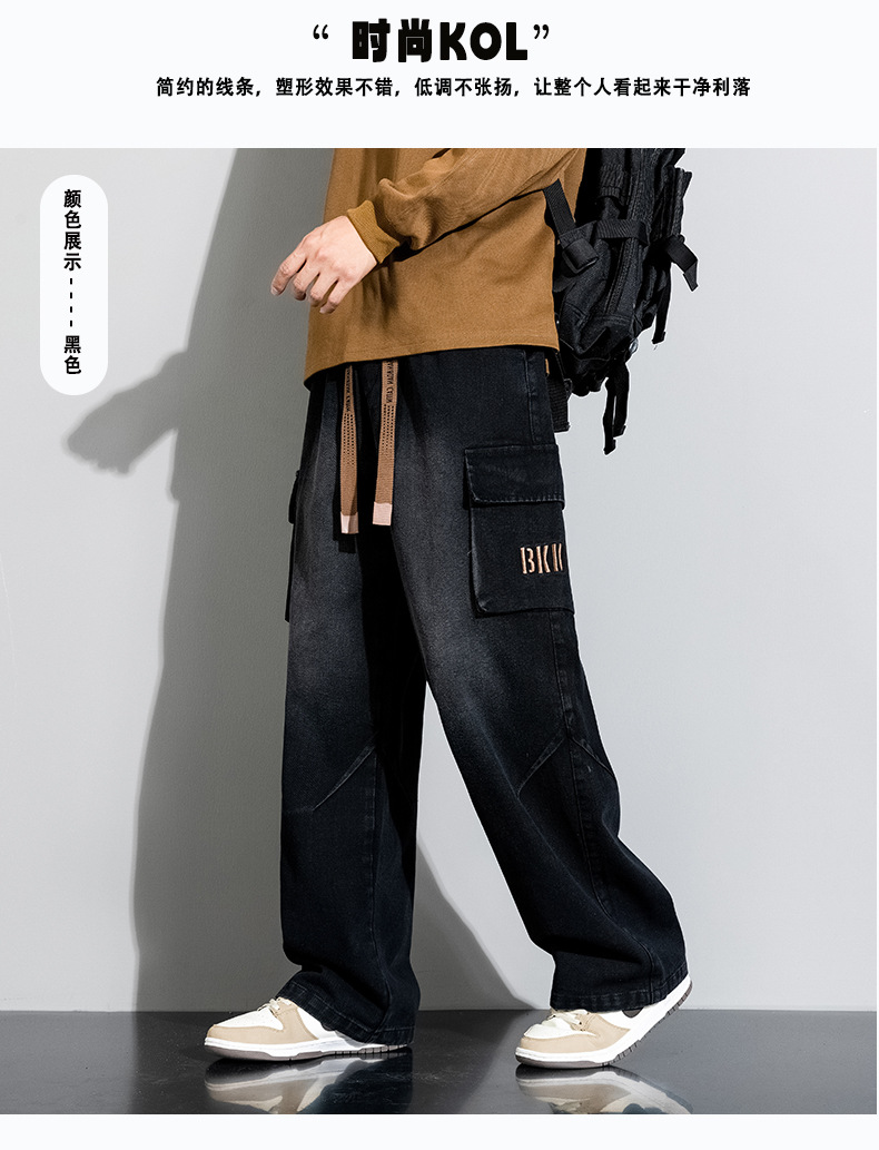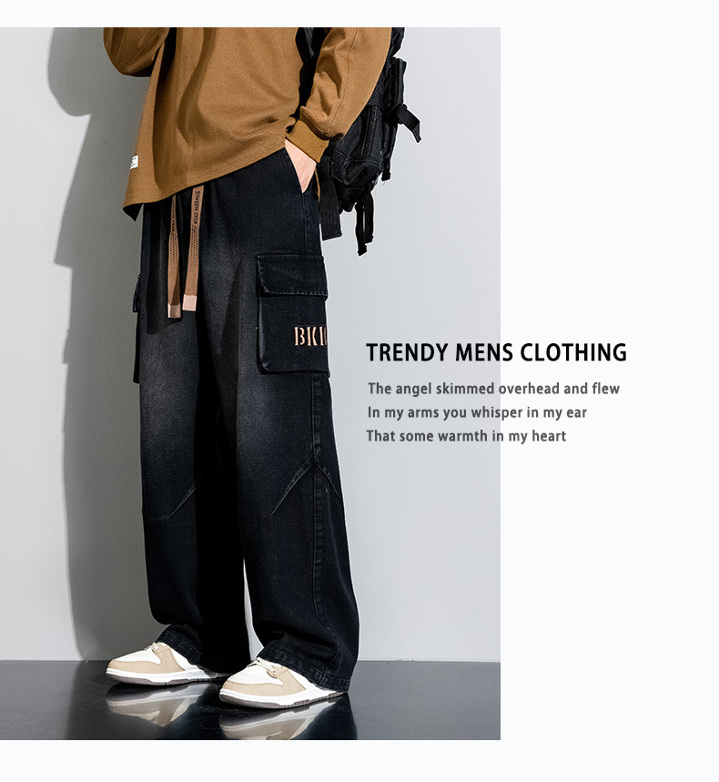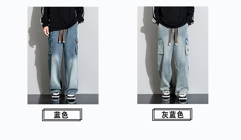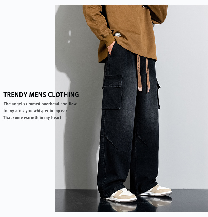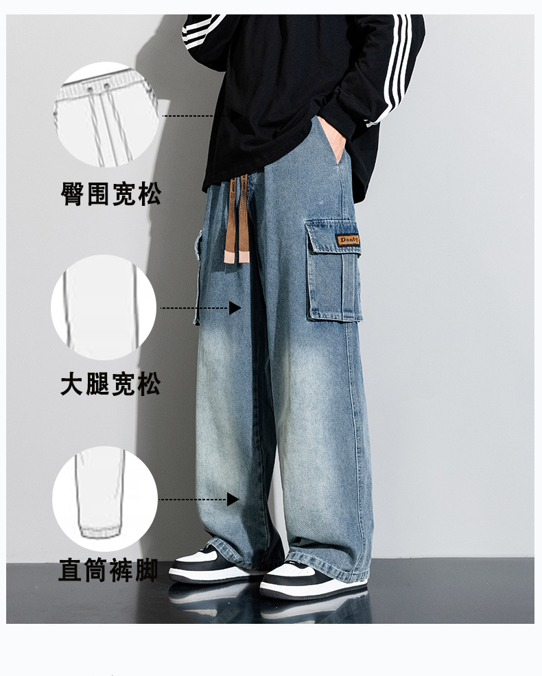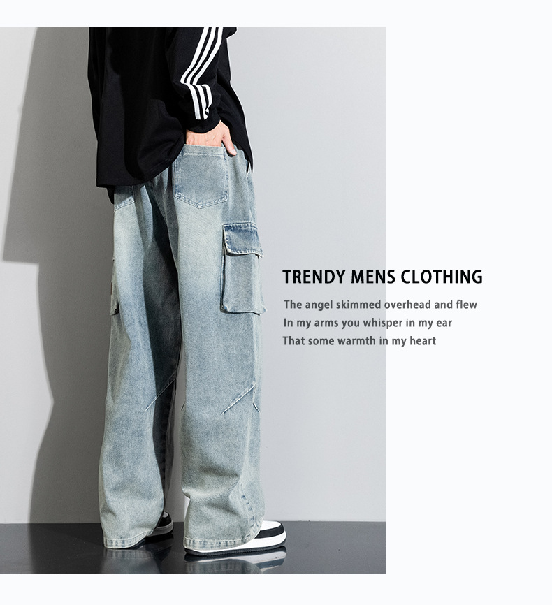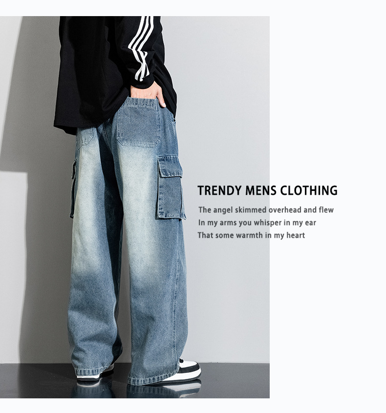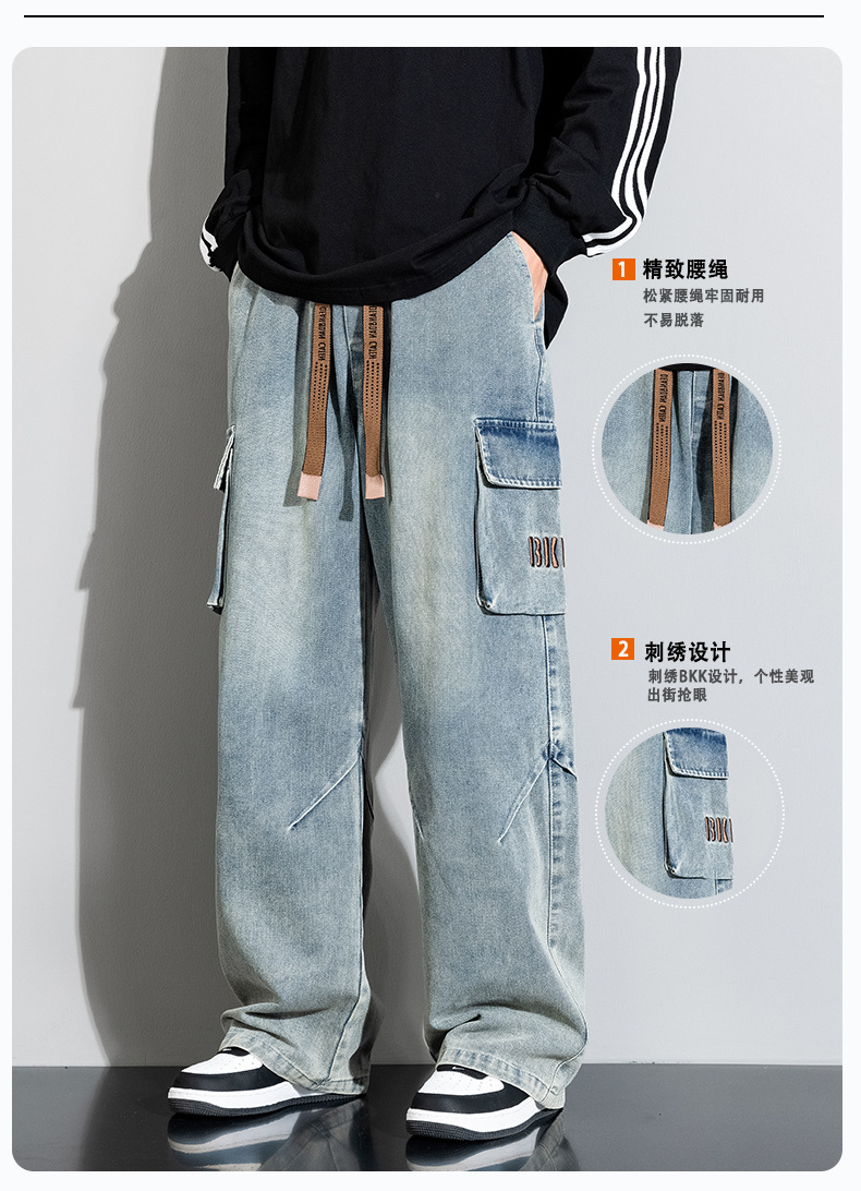 Джинсовые американские джинсы High Street Design Чувство Широкие брюки Ретро Мойка Мужская одежда