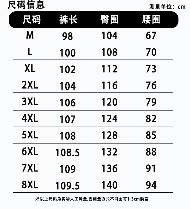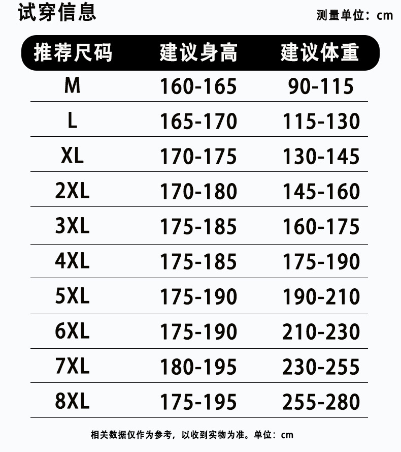 M; L; XL; 2XL; 3XL; 4XL; 5XL; 6XL; 7XL; 8XL