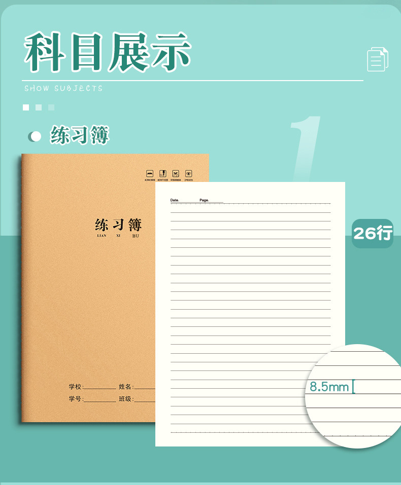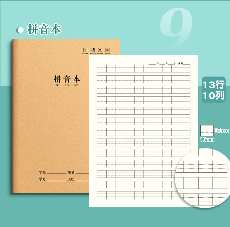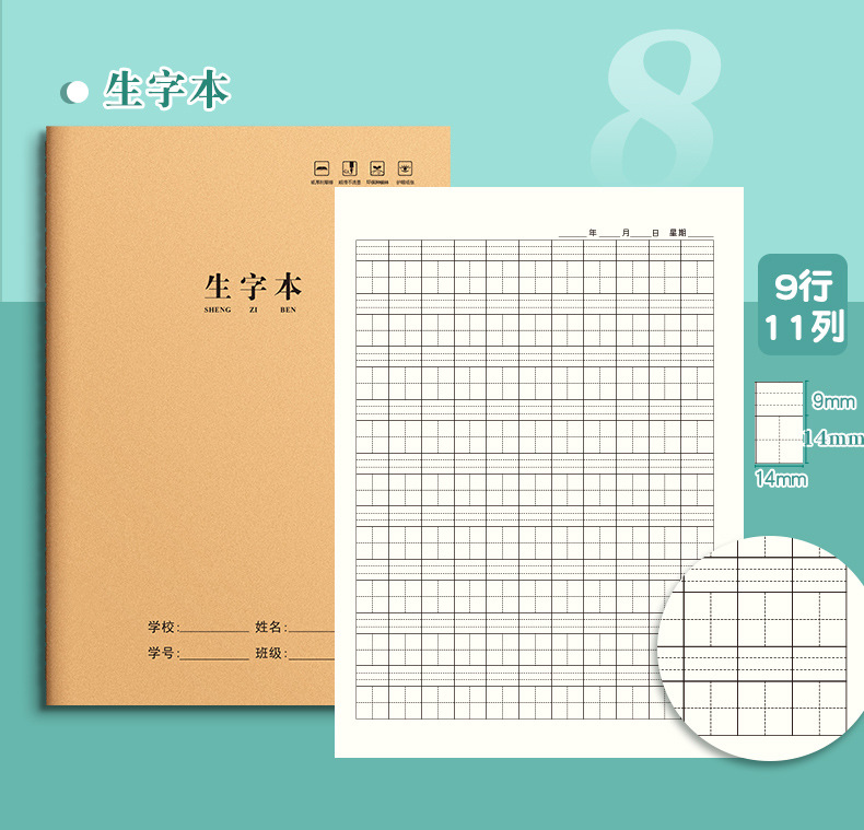 1 строчка из воловьей кожи, тонкая B5 для практики; 1 строчка из воловьей кожи, тонкая B-математика; 1 вышивка из воловьей кожи B5-английская книга; 1 строчка из воловьей кожи, тонкая B5 – национальная; 1 кусок воловьей кожи с вышивкой B5-состав 300 сеток; 1 строчка из воловьей кожи, 400 сеток.; 1 книга B5-Tianzi с вышивкой из воловьей кожи; 1 вышивка из воловьей кожи. Полевые сетки B5-пиньинь.; 1 книга с коровьей кожей, новинка B5 с надписью