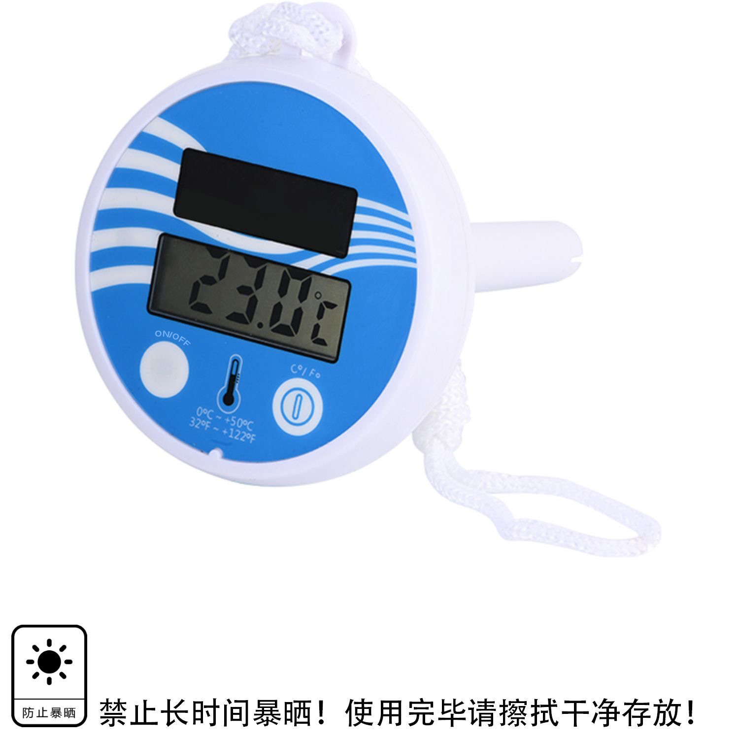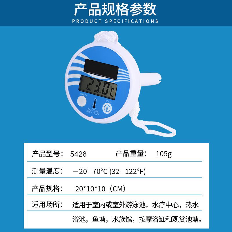 游泳池专用浮水温度计,可置于游泳池水中测量其水温,温度计会浮于水面。