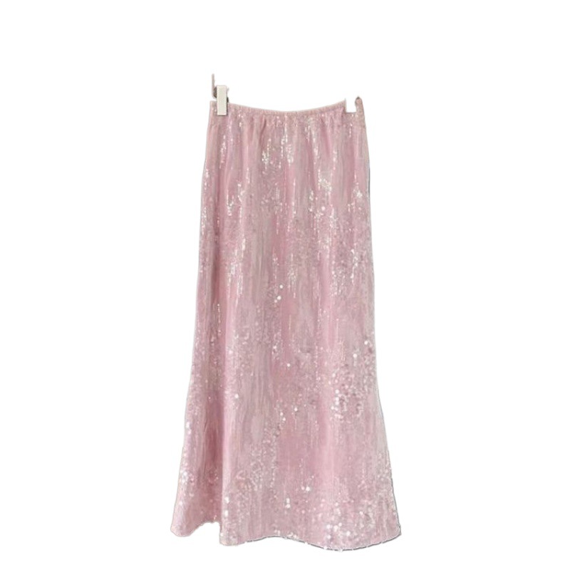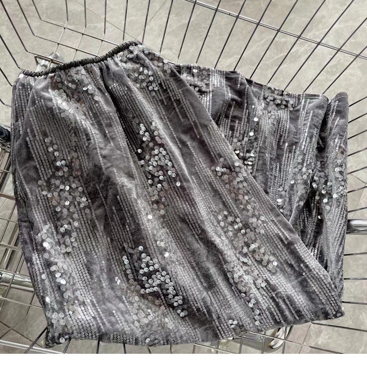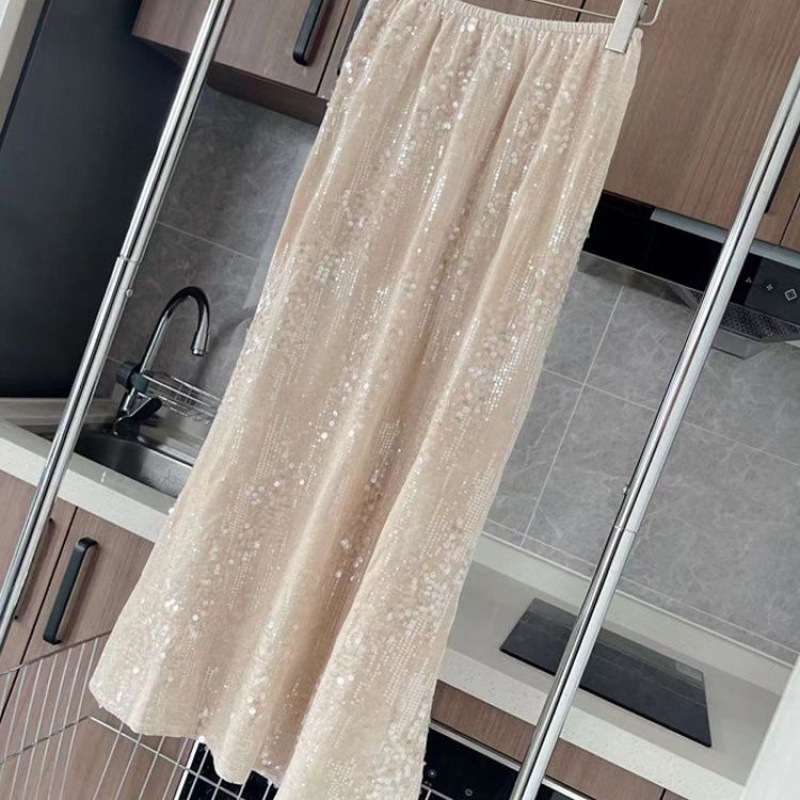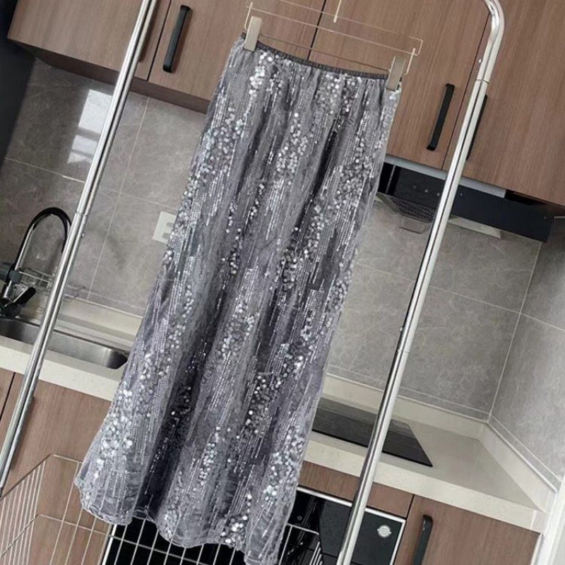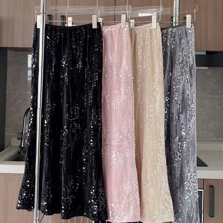 Юбка с блестками, черная мода, тяжелая работа, новая новая модель средней и длинной, покрытая мясом, тонкая рыбья хвост