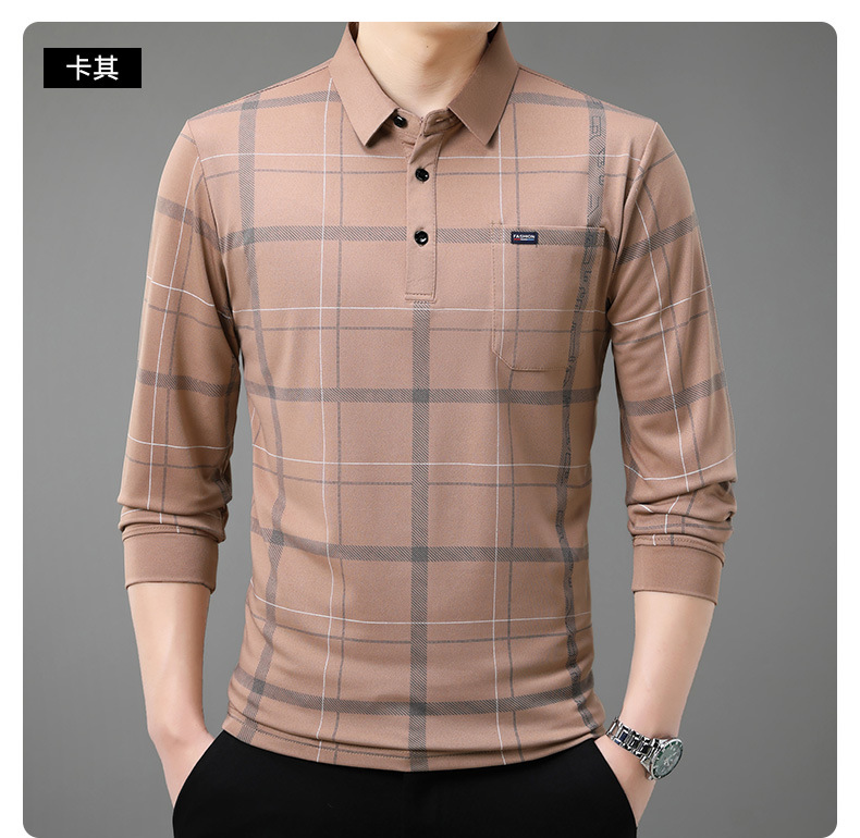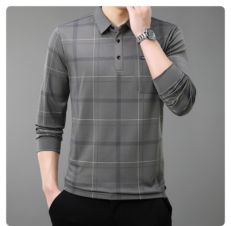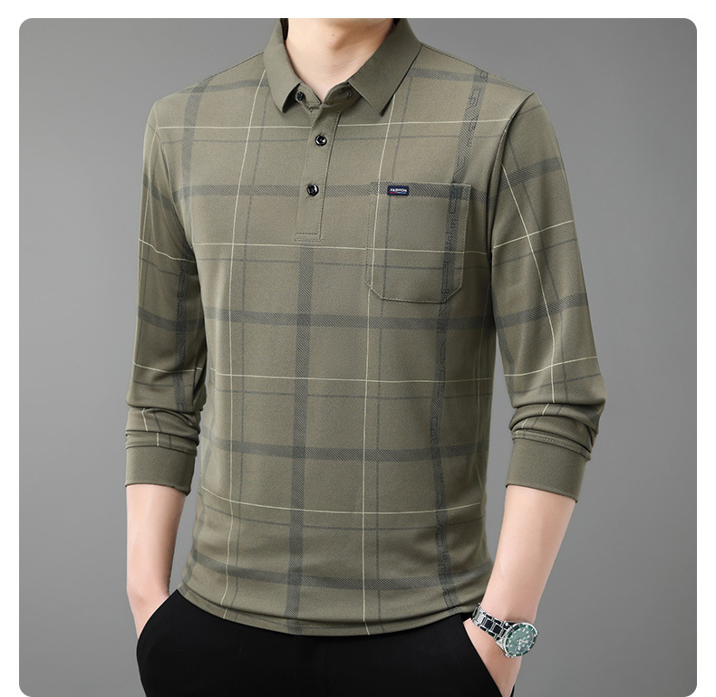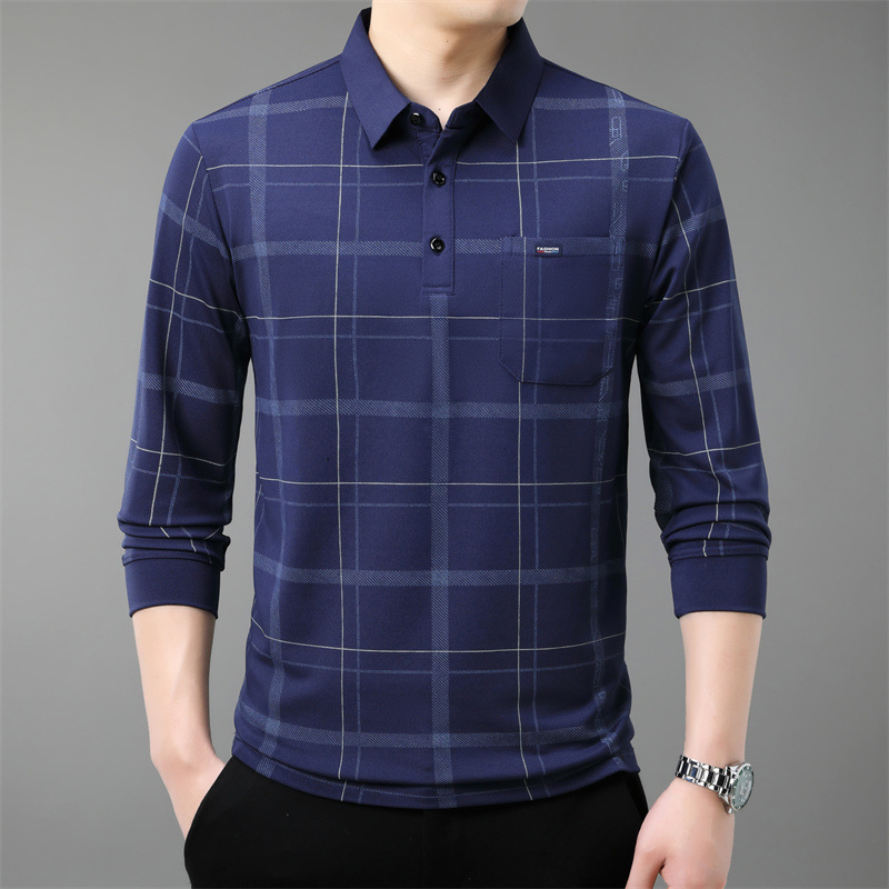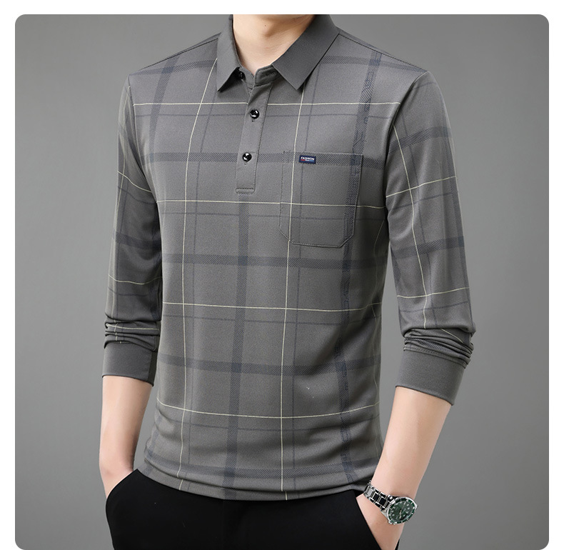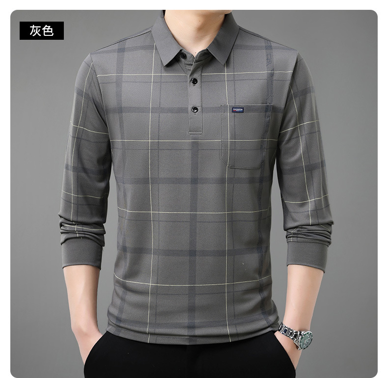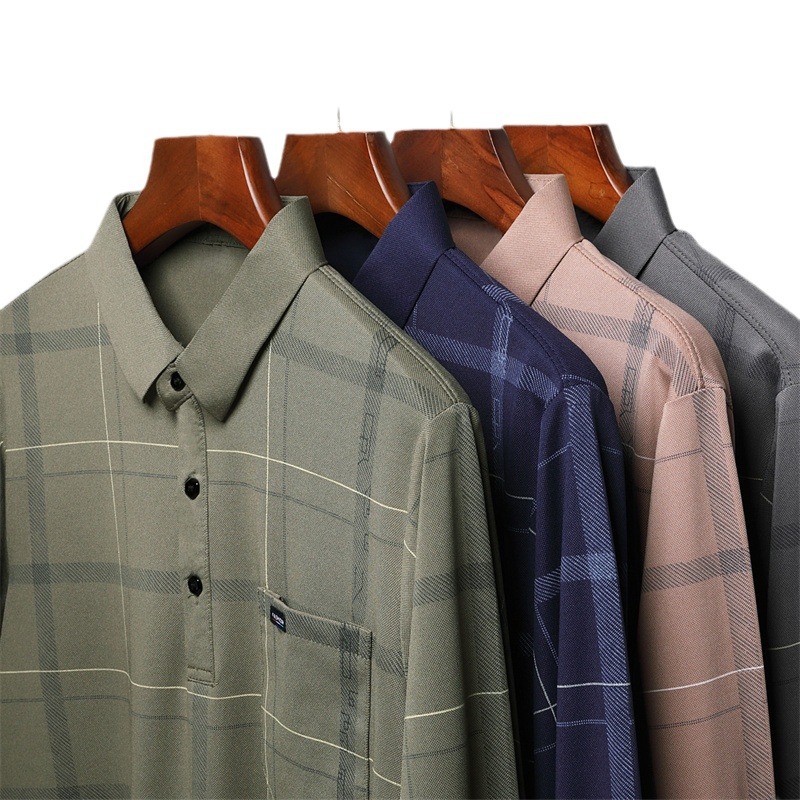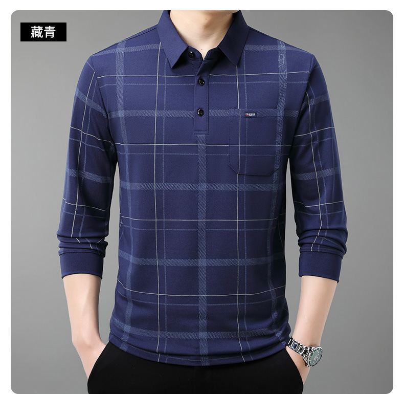 Осенний новый мужской лацканный решетчатый футболка с длинными рукавами реальные карманы тонкий клетчатый средний и пожилой мужской поло рубашка оптом