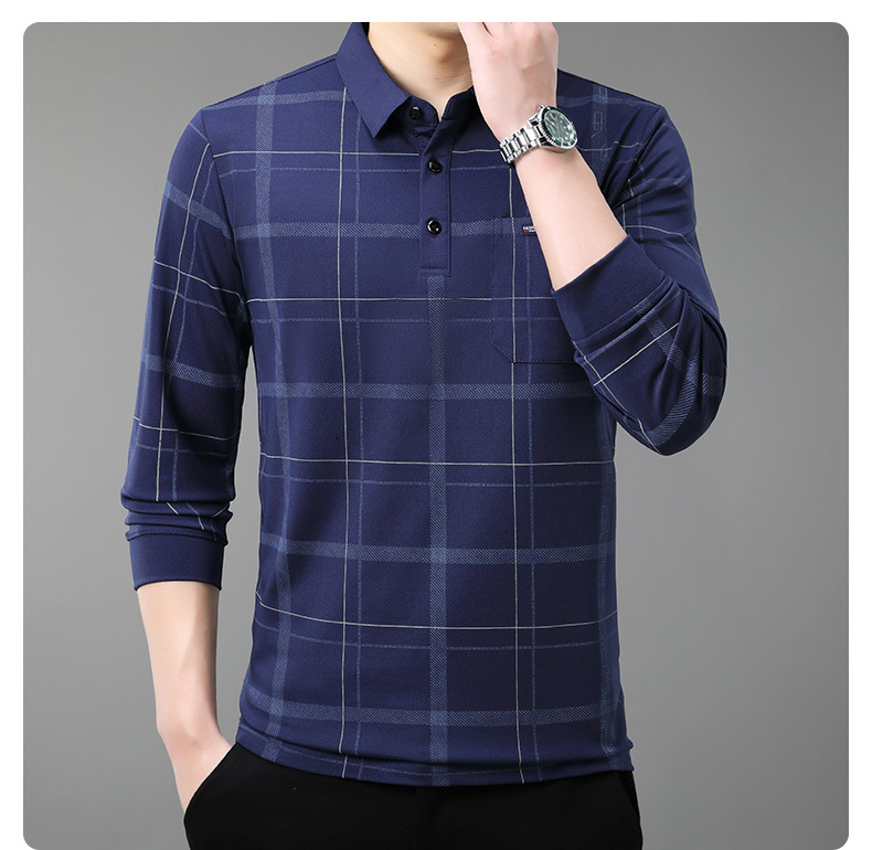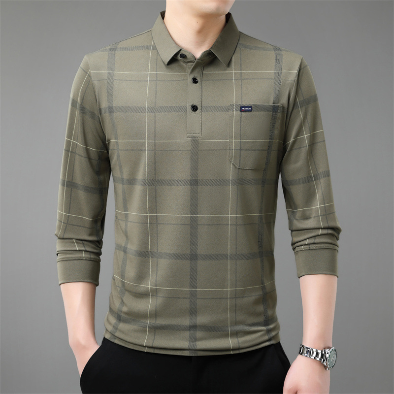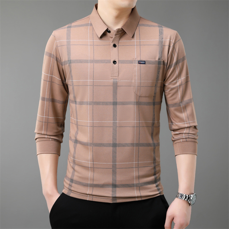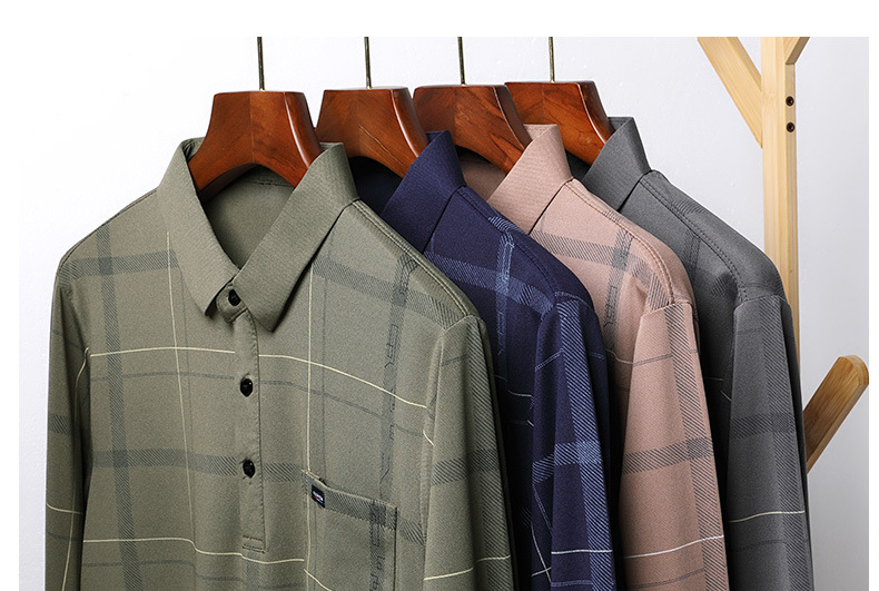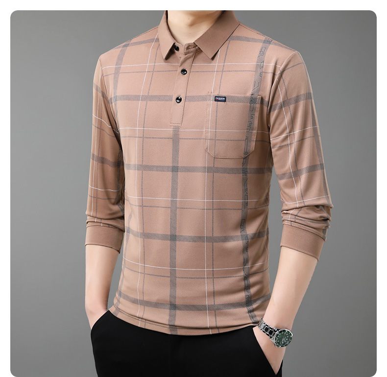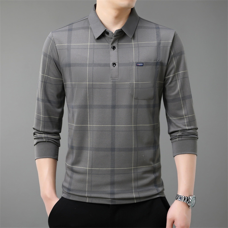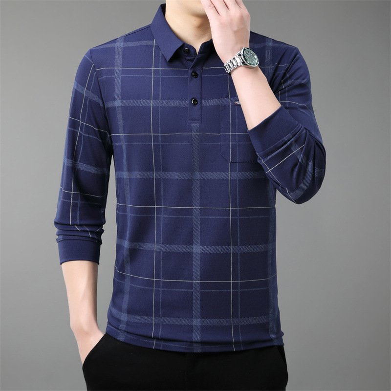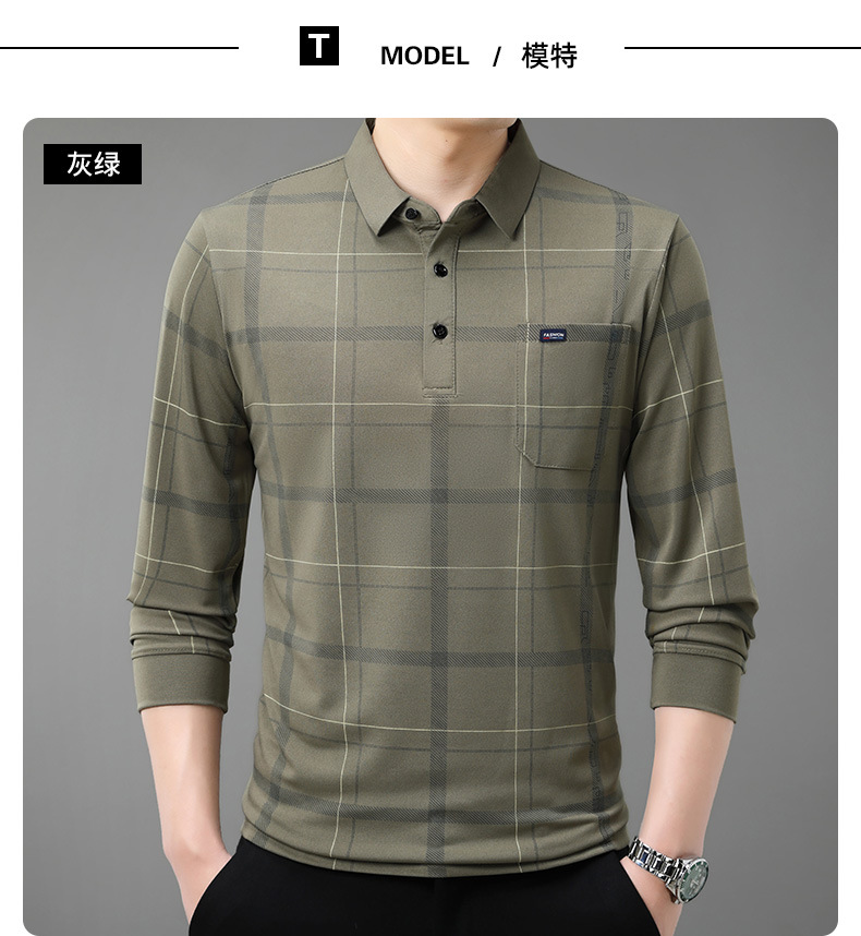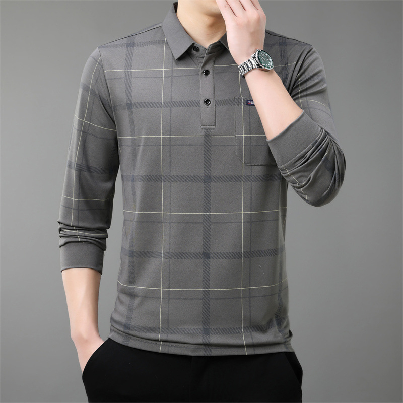 Осенний новый мужской лацканный решетчатый футболка с длинными рукавами реальные карманы тонкий клетчатый средний и пожилой мужской поло рубашка оптом