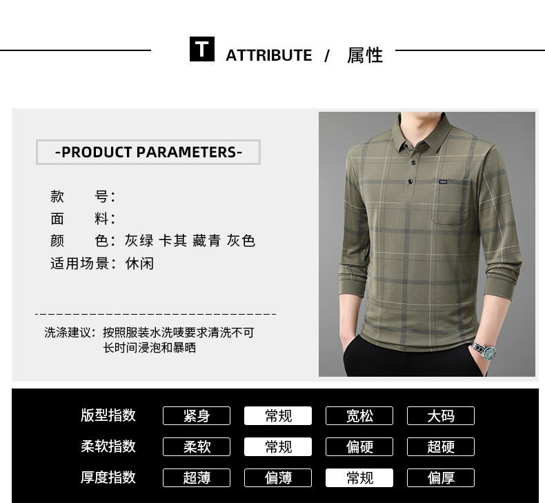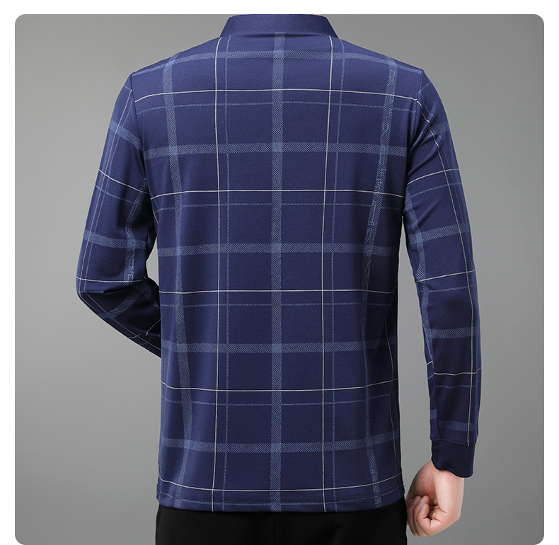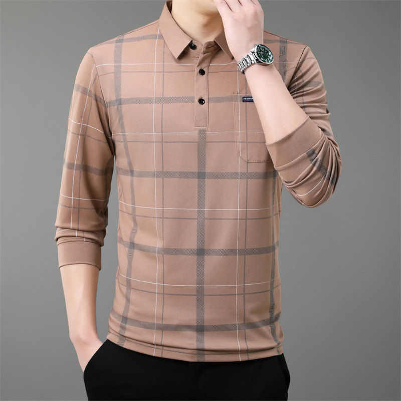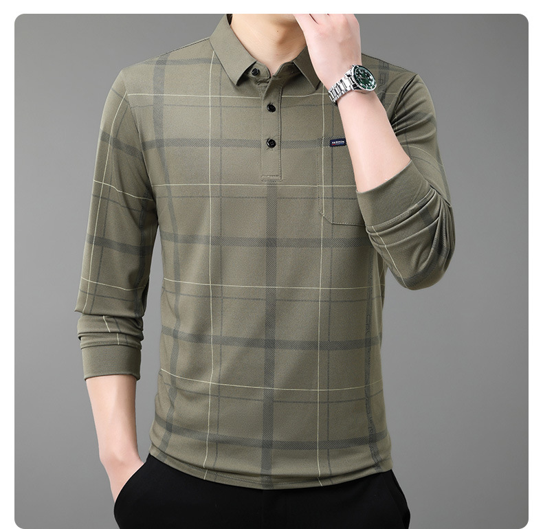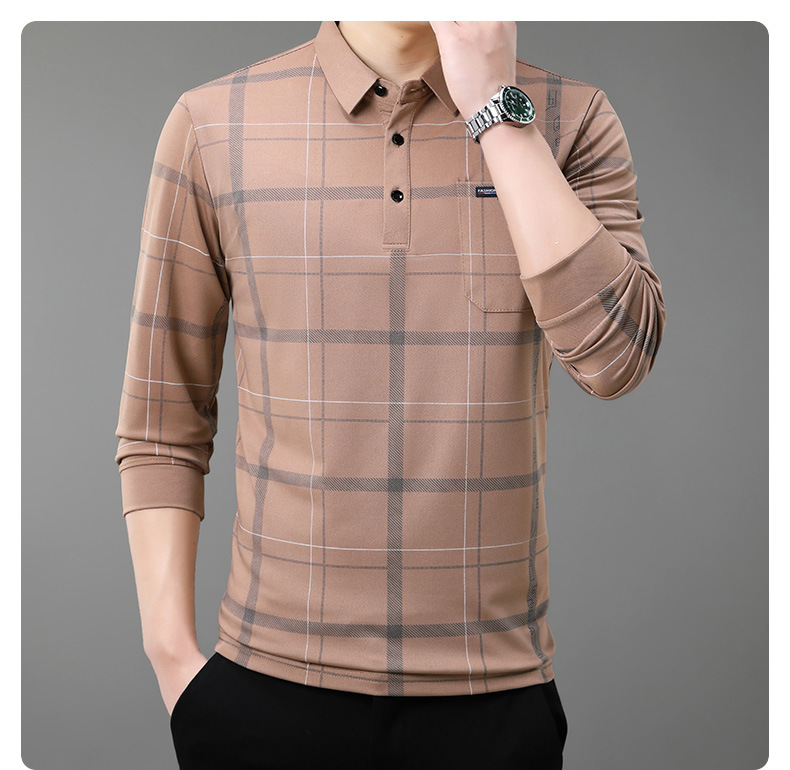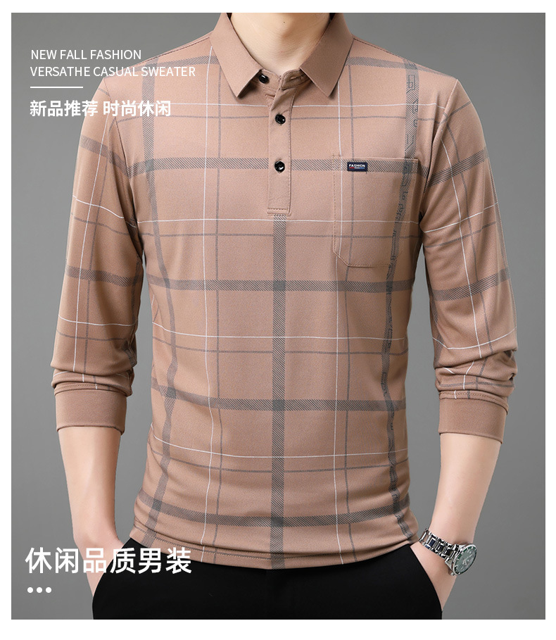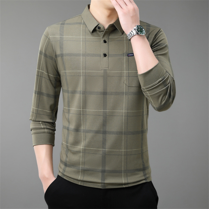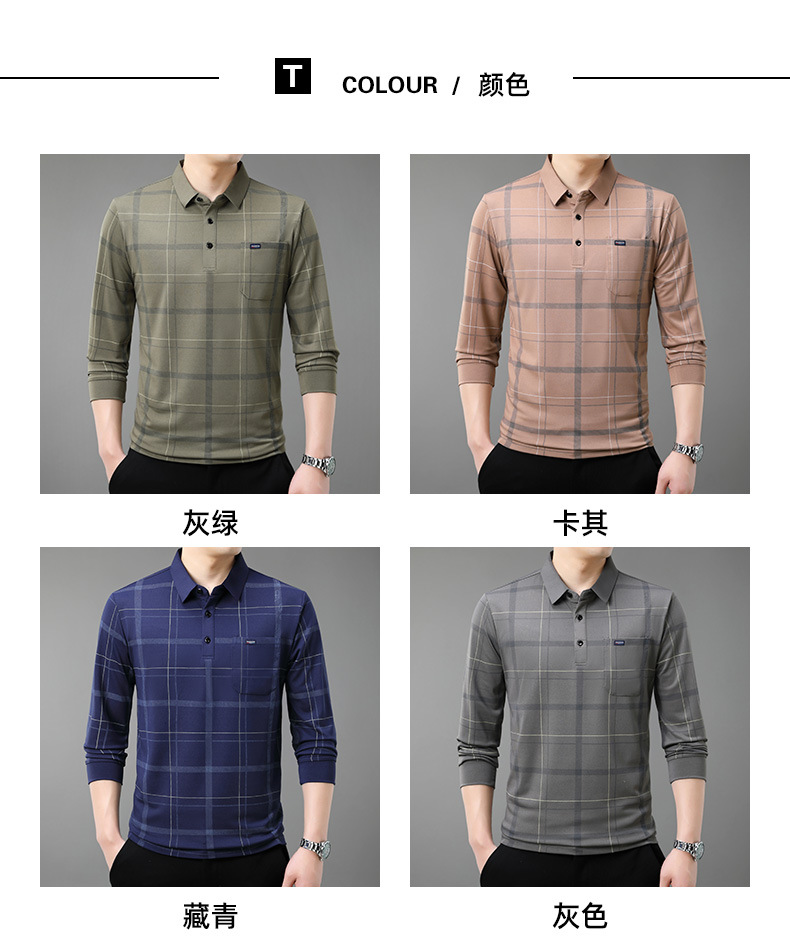 Осенний новый мужской лацканный решетчатый футболка с длинными рукавами реальные карманы тонкий клетчатый средний и пожилой мужской поло рубашка оптом