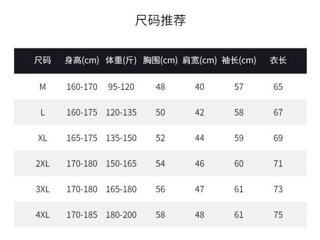 105/M/48; 110/L/50; 115/XL/52; 120/2XL/54; 125/3XL/56; 130/4XL/58