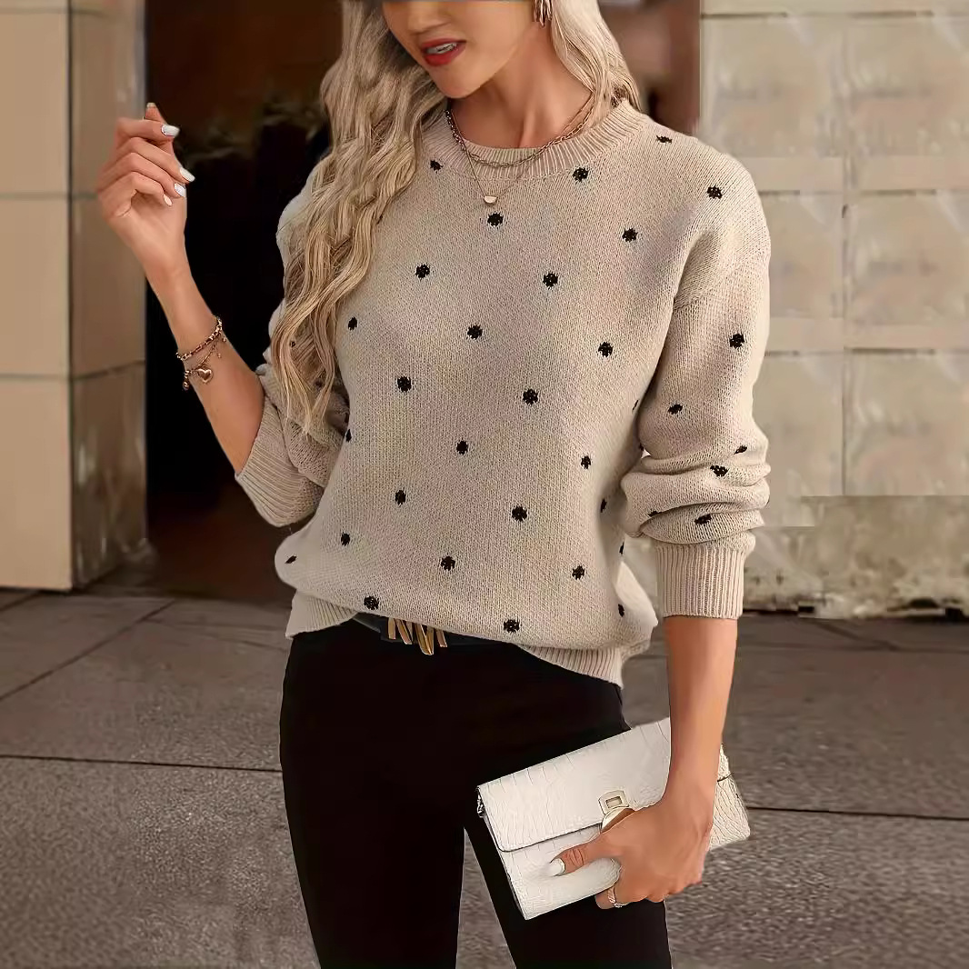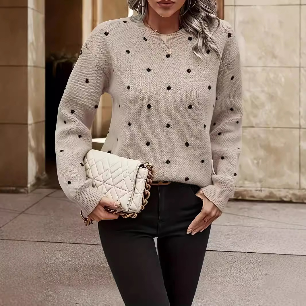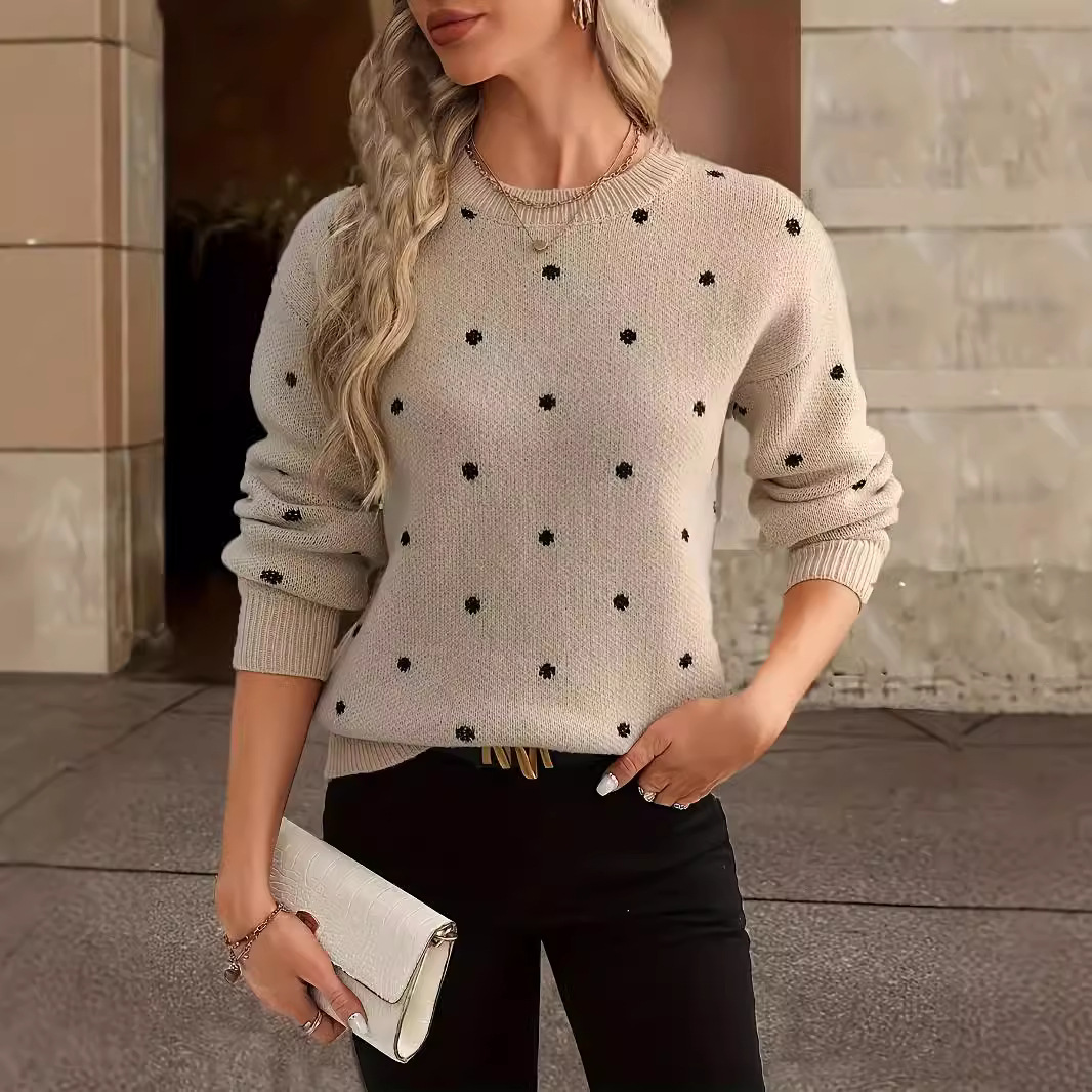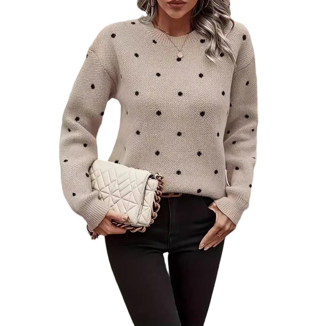 2024 Amazon трансграничный осенне-зимний трикотаж с круглым вырезом, женский экспортный трикотаж с свободным низом, обработка женской одежды