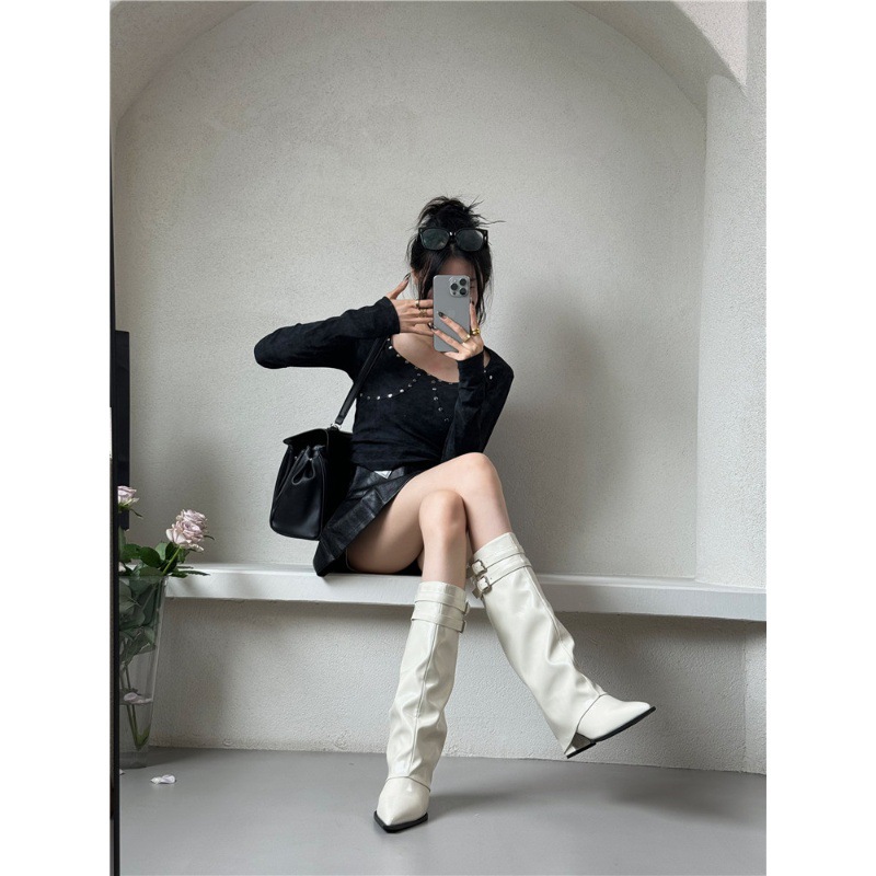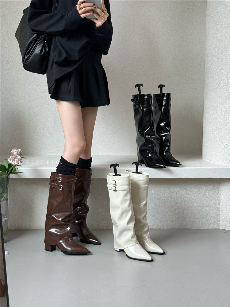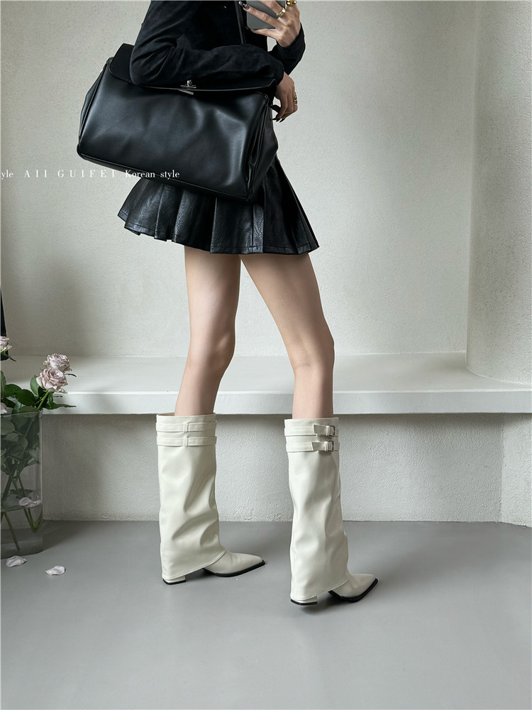 Красота! Белые брюки сапоги новый дизайн чувство ниши