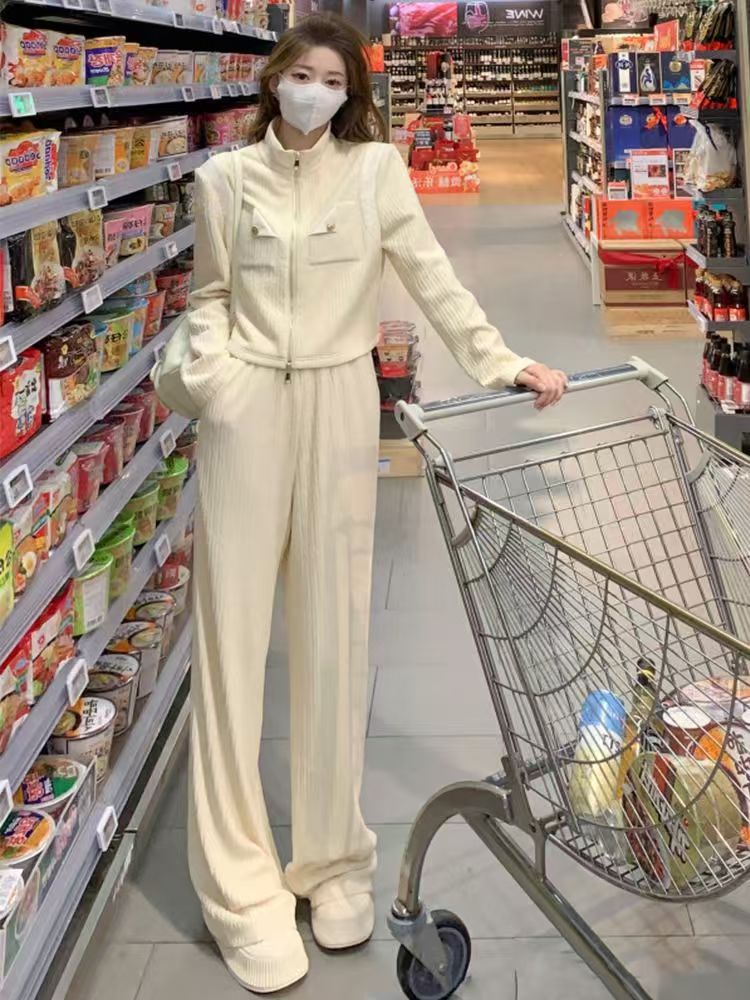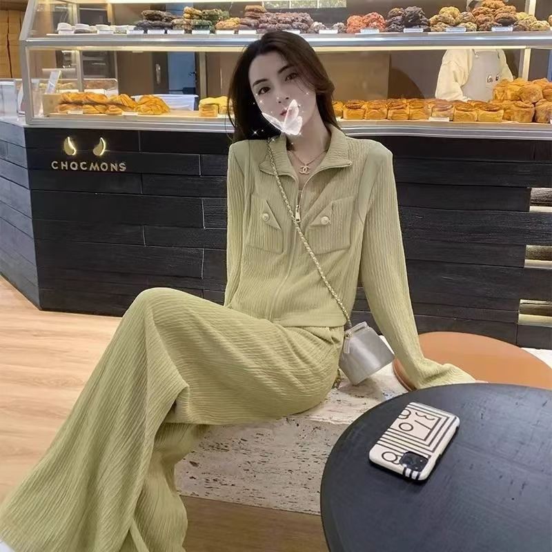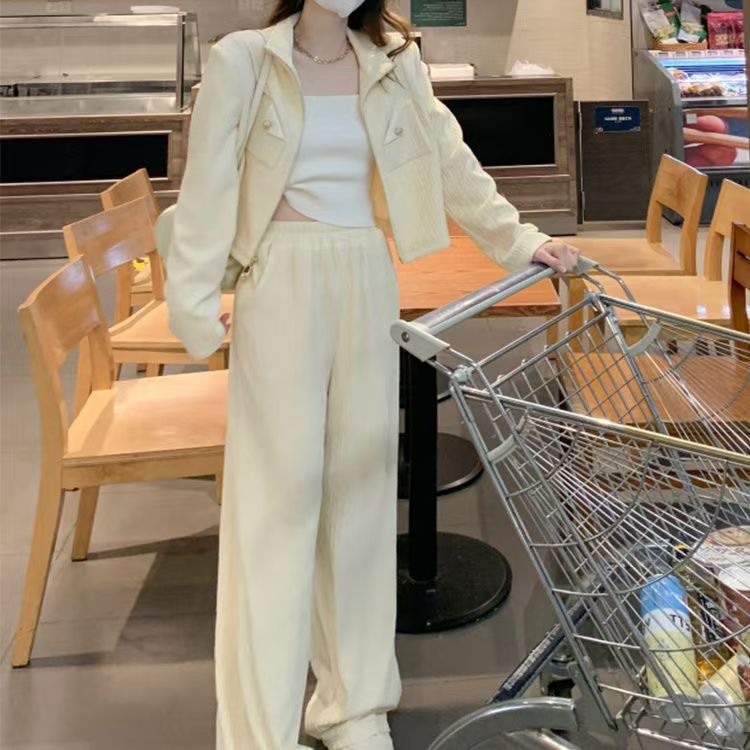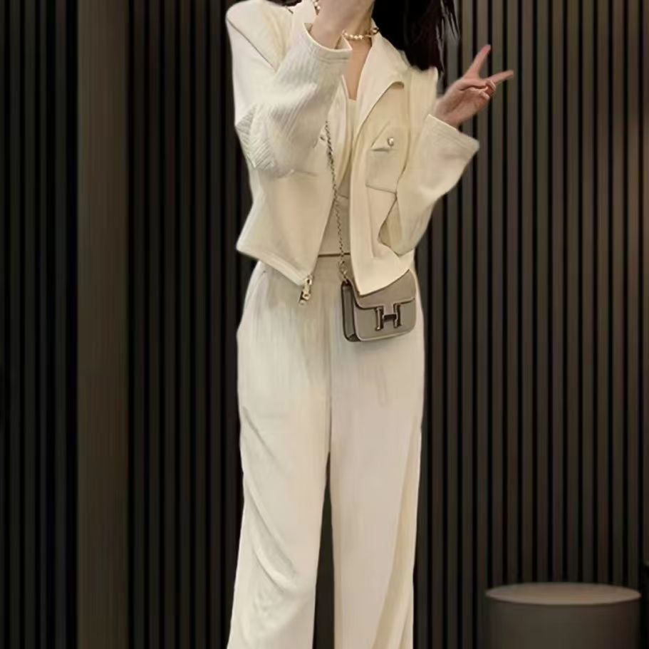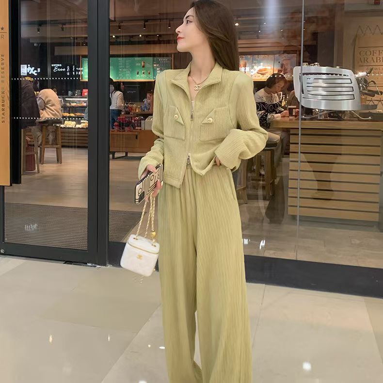 2024 Весенний и Осенний Новый стиль тонкий модный широкий брюки из двух частей повседневный спортивный темперамент маленький ароматный набор женский