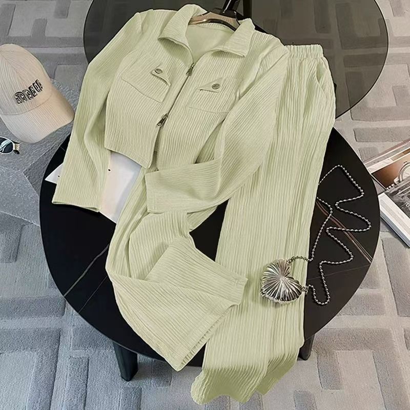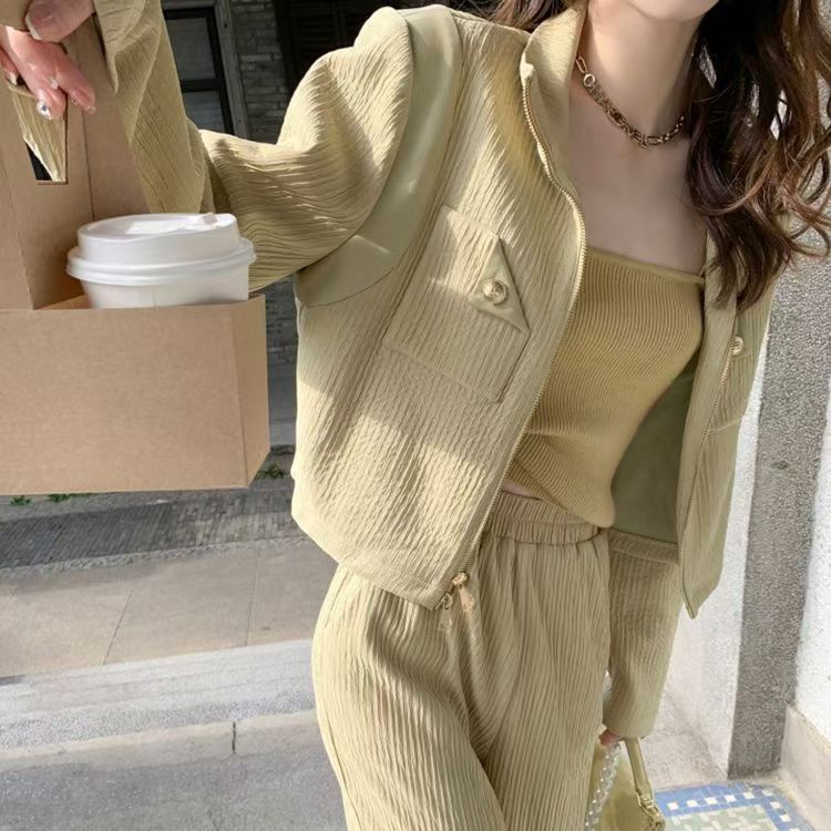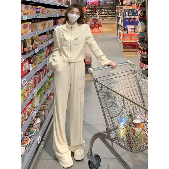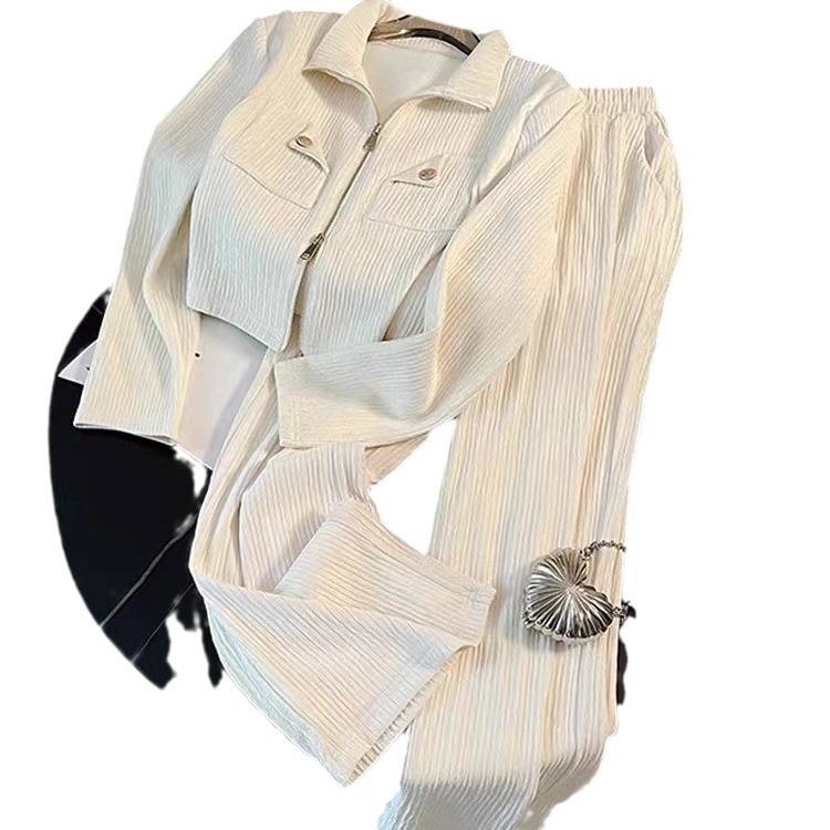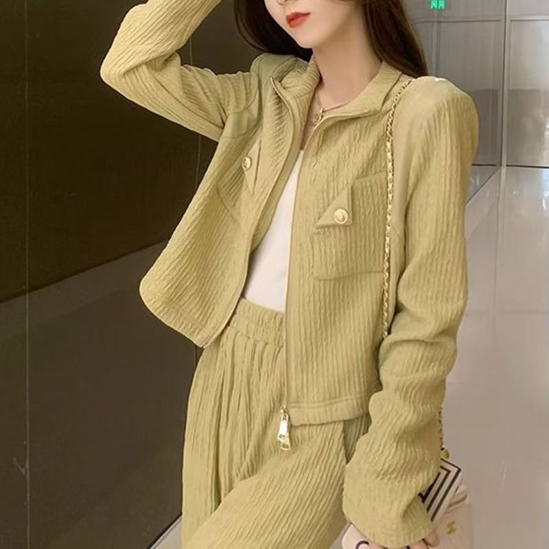 2024 Весенний и Осенний Новый стиль тонкий модный широкий брюки из двух частей повседневный спортивный темперамент маленький ароматный набор женский
