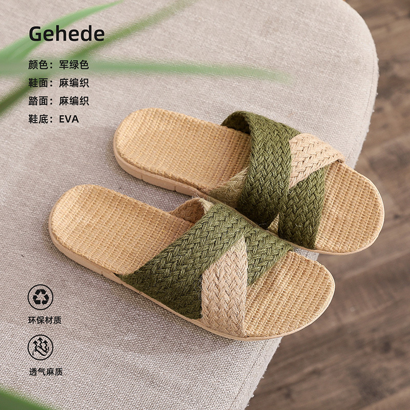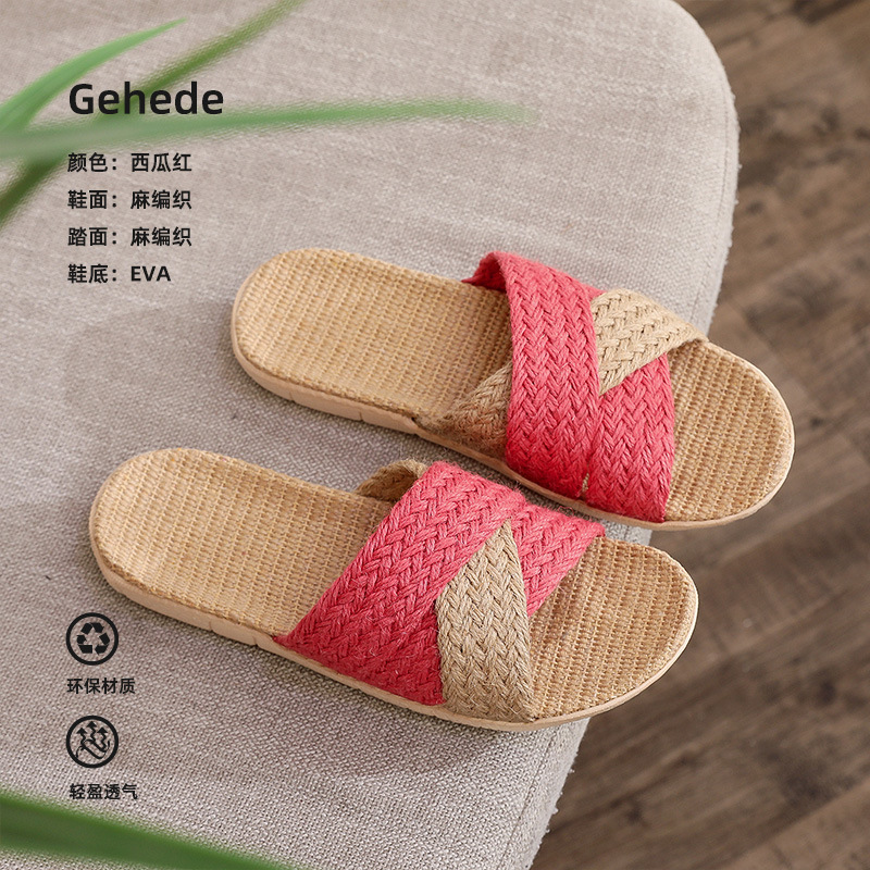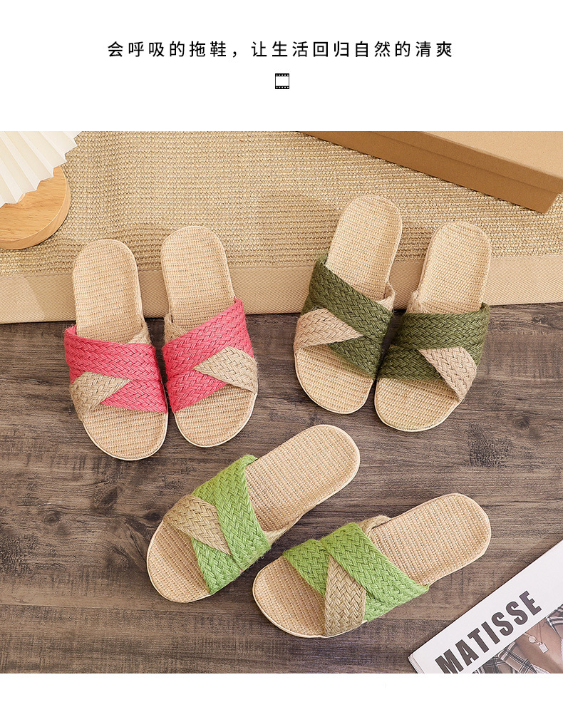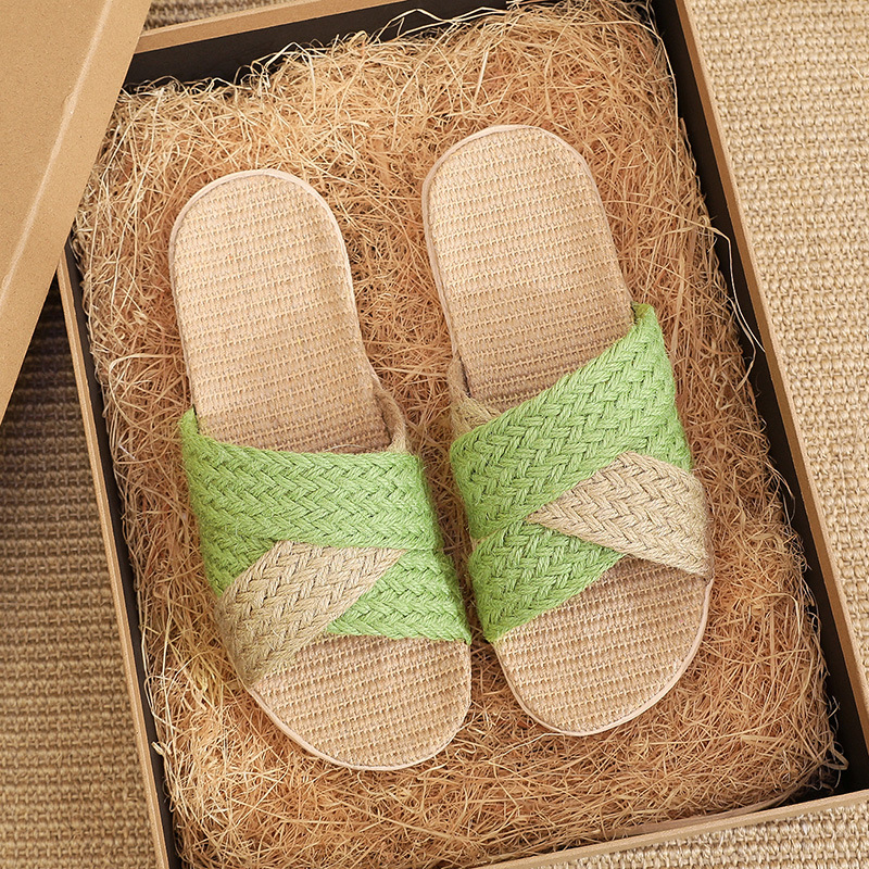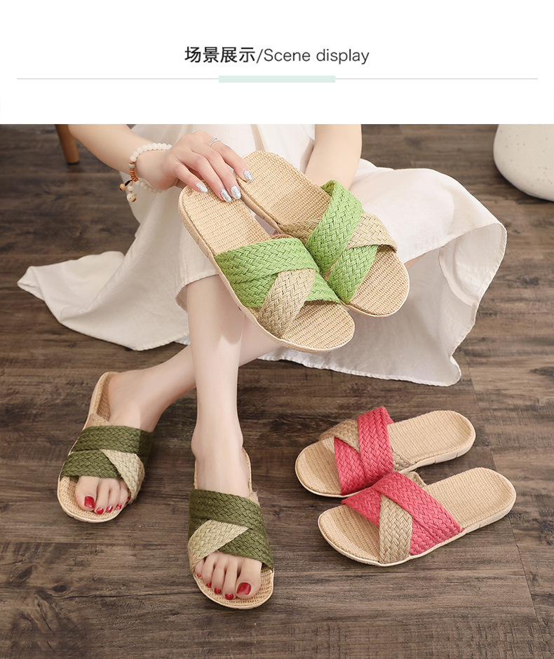 Льняные тапочки тканые соломенные туфли женские чистые соломенные плетения японский дом четыре сезона тихий интерьер ретро мужской конопля прохладный
