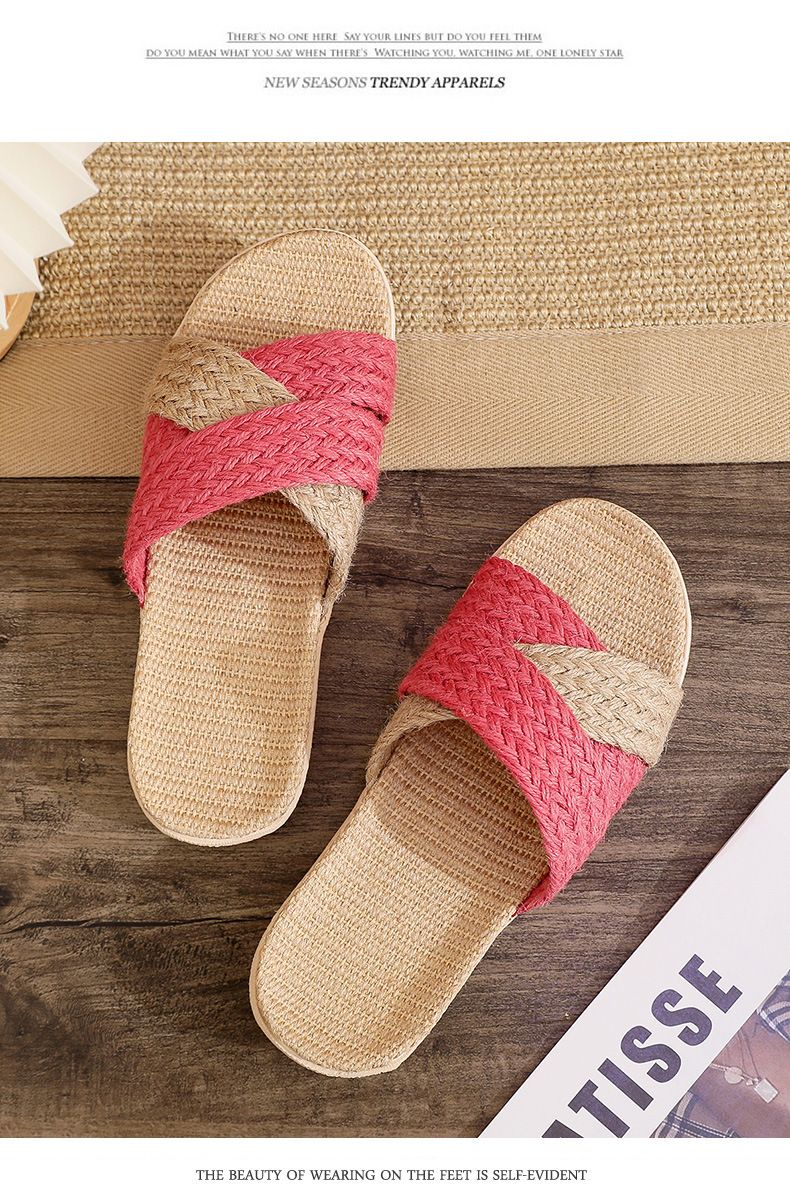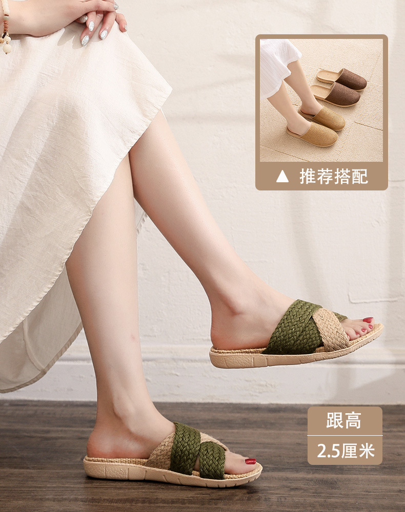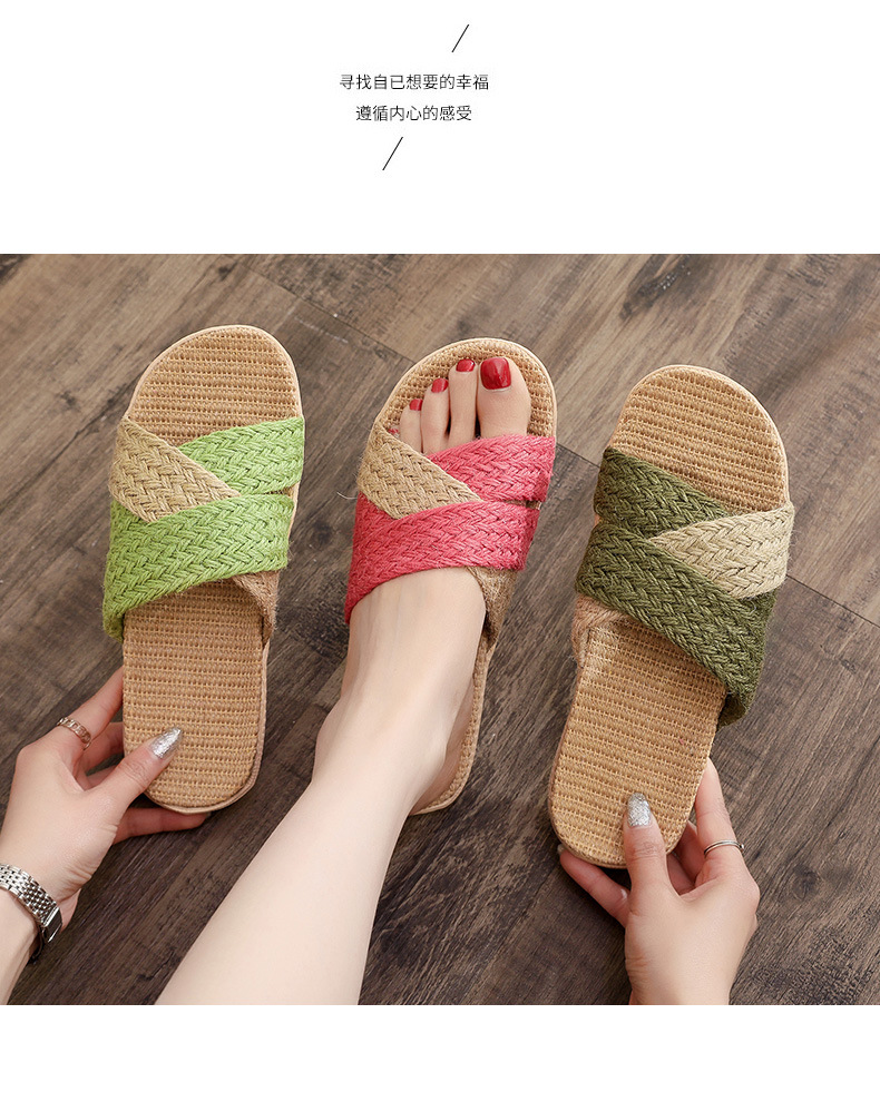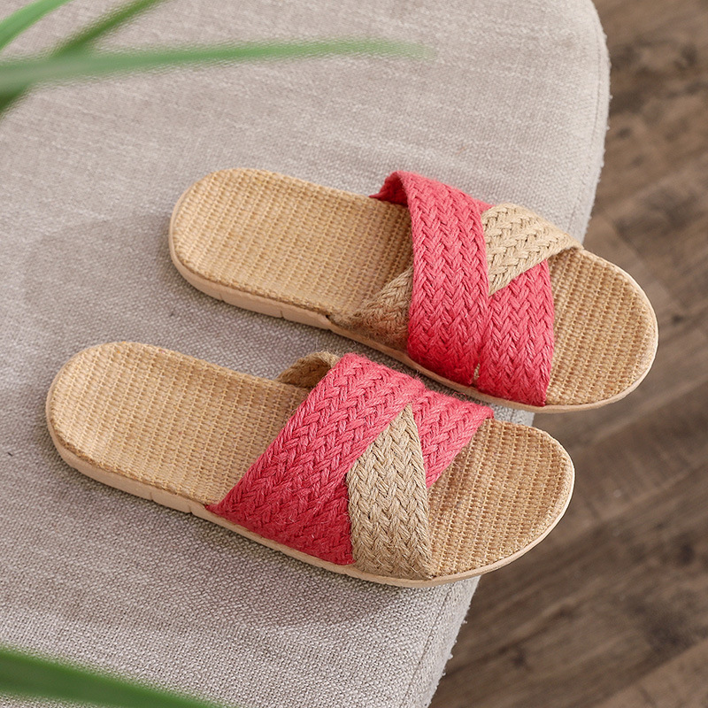 Льняные тапочки тканые соломенные туфли женские чистые соломенные плетения японский дом четыре сезона тихий интерьер ретро мужской конопля прохладный