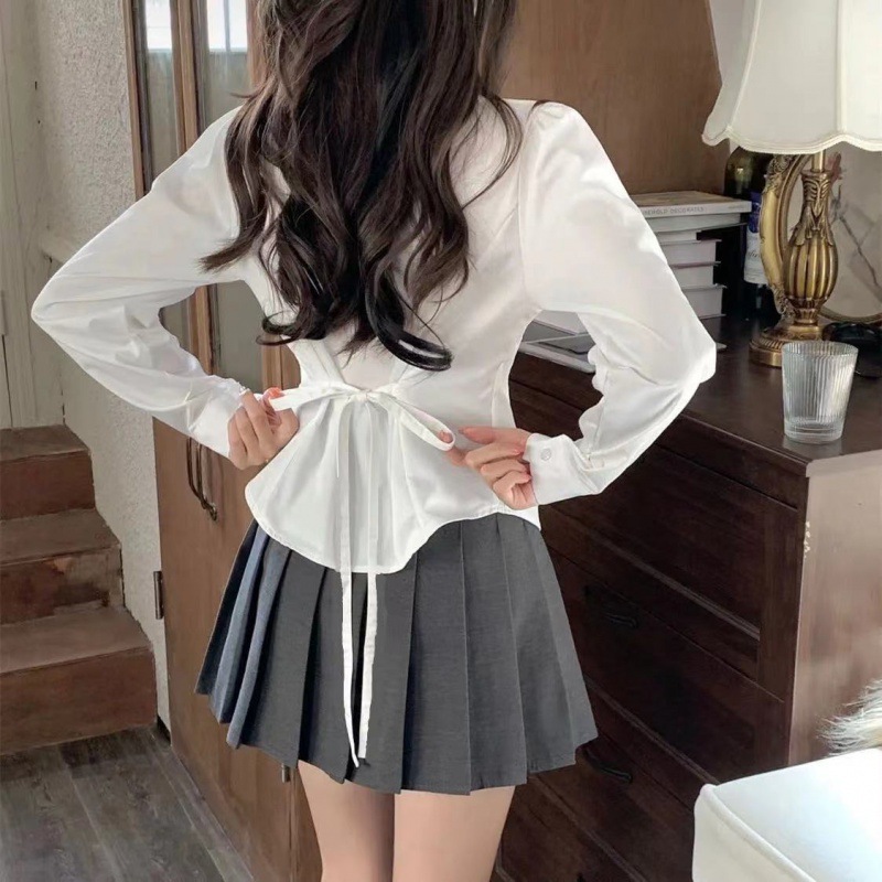 Белая рубашка сладкая пряная школа стиль с длинными рукавами белая рубашка женская весна и осень тонкая форма рубашка дизайн шикарный