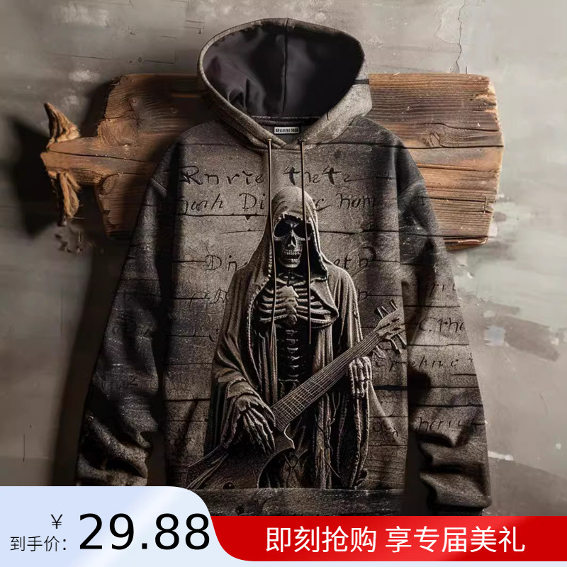 24 трансграничные независимые станции осень-зима новый свитер 3D цифровой принт Хэллоуин мужской череп темный ветер толстовка с капюшоном