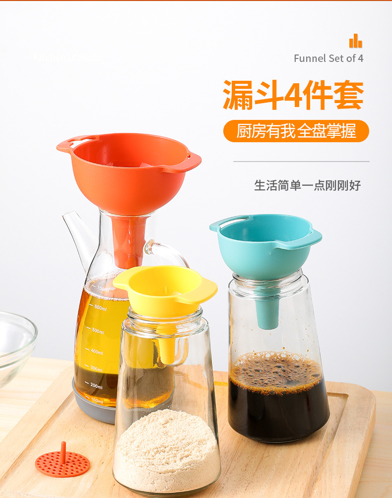 Бытовые кухонные инструменты, воронка для заливки масла, фильтр для сортировки зерна, многофункциональная воронка для заливки вина, набор из 4 предметов