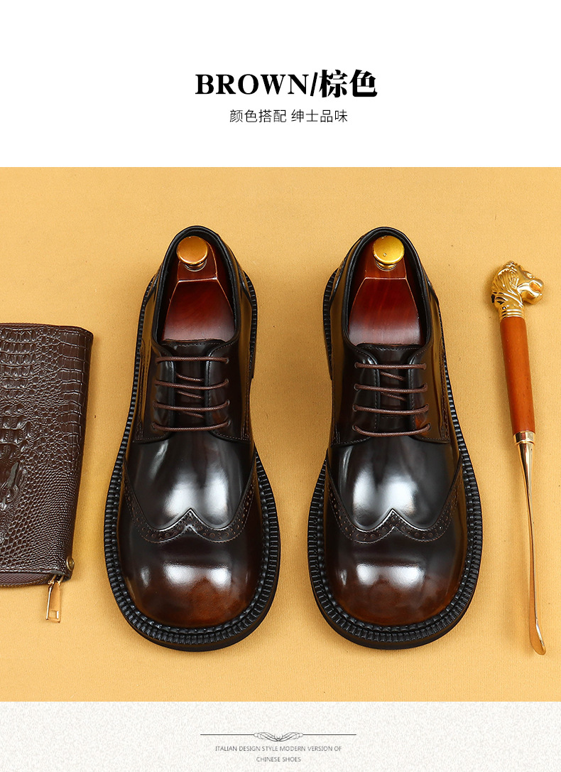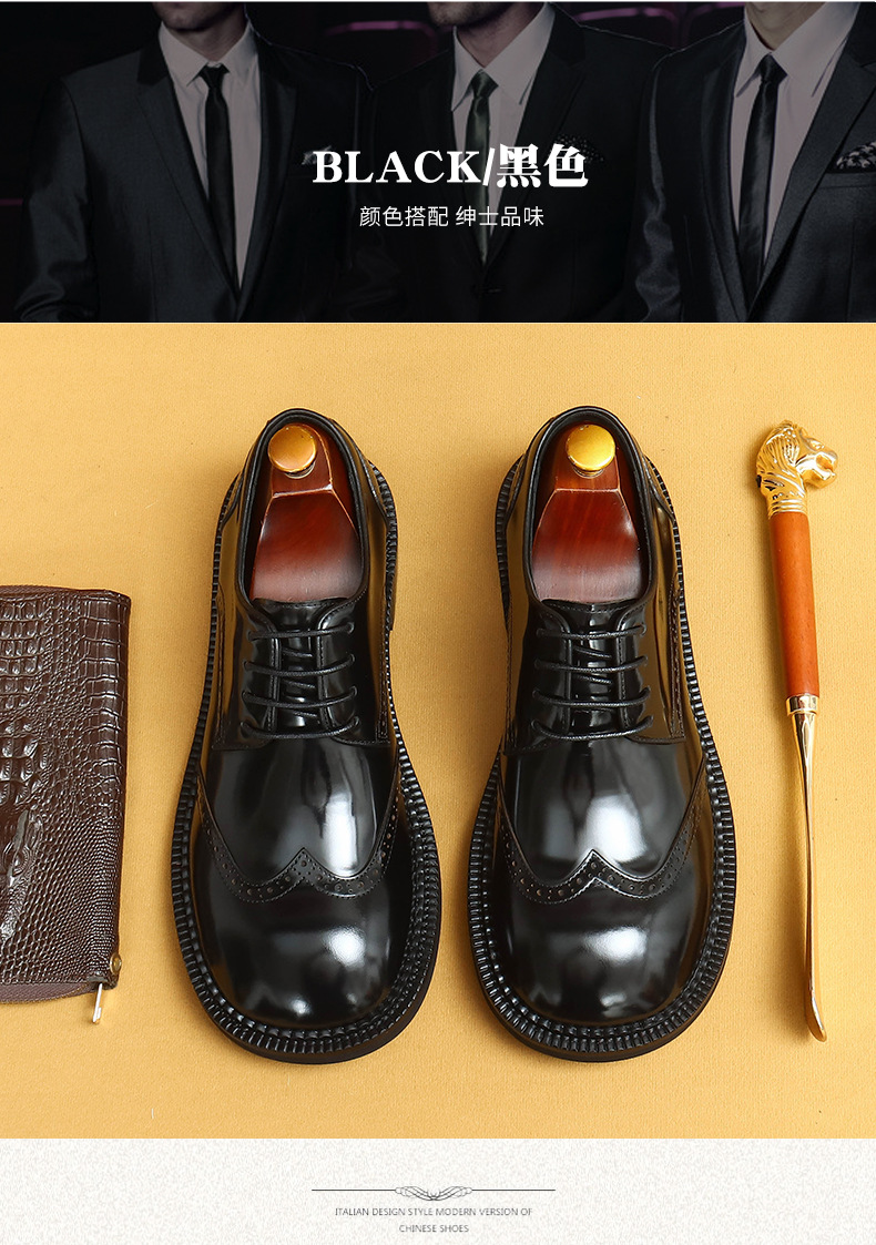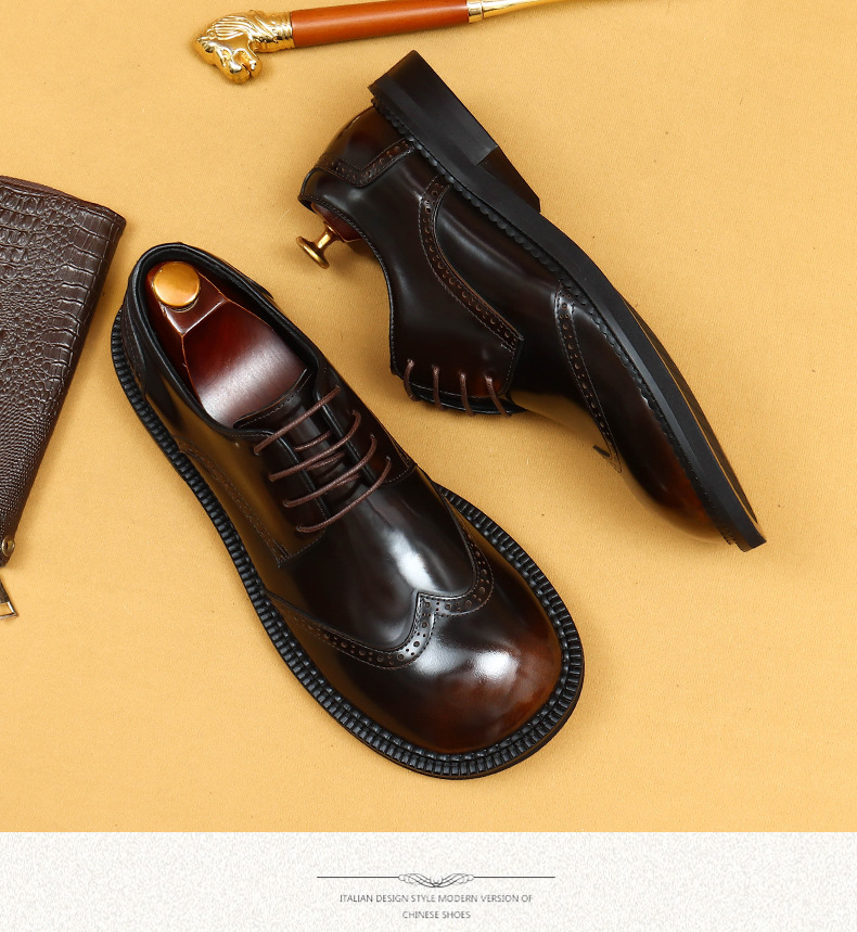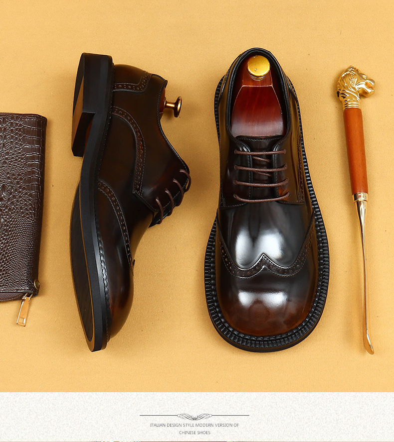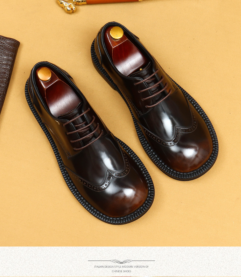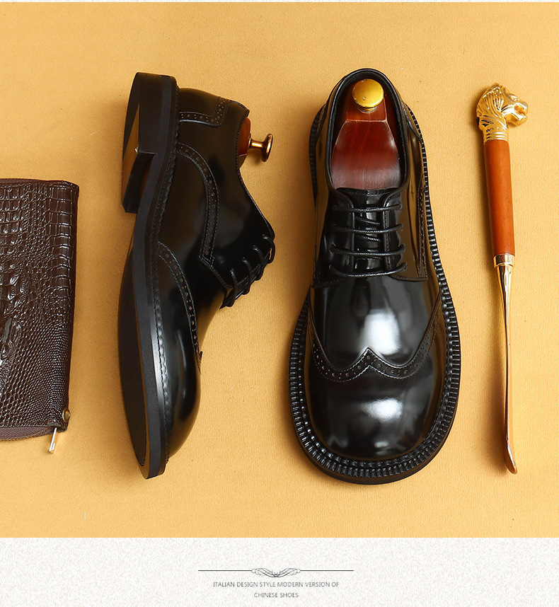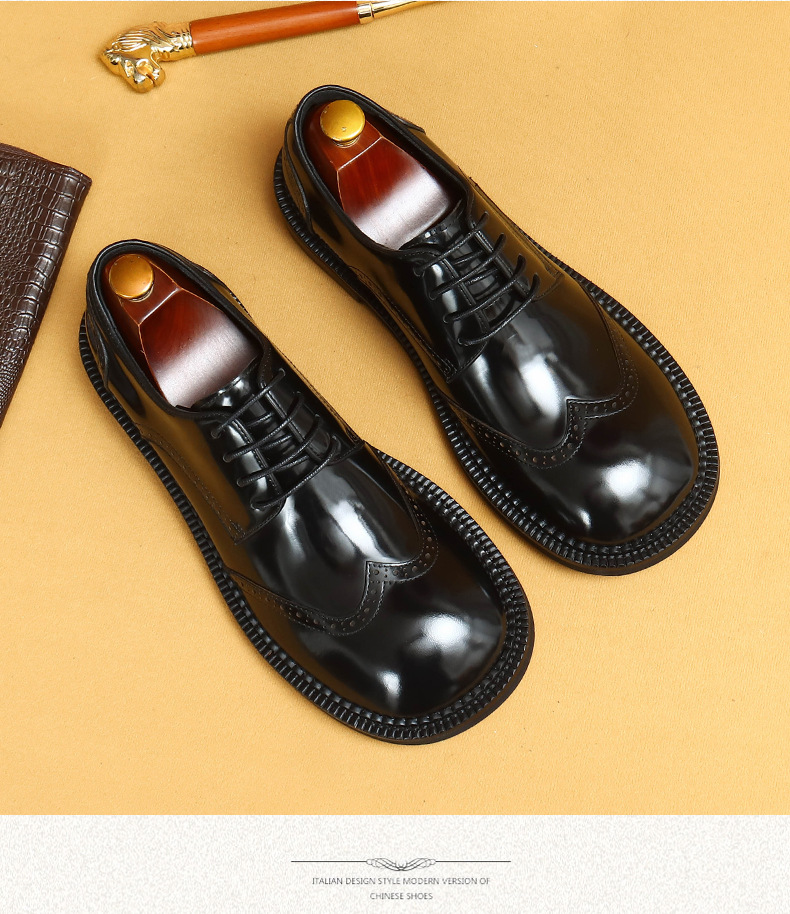 Британская повседневная кожаная обувь мужская кожаная одежда бизнес 2025 новая большая голова круглая голова блестящие мужские туфли