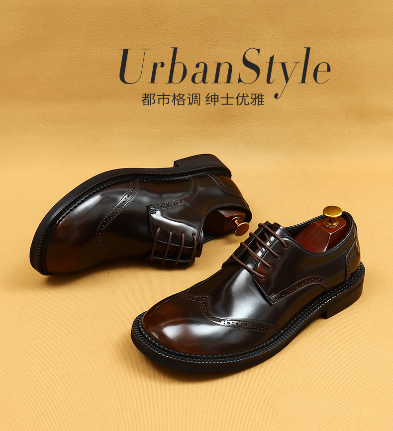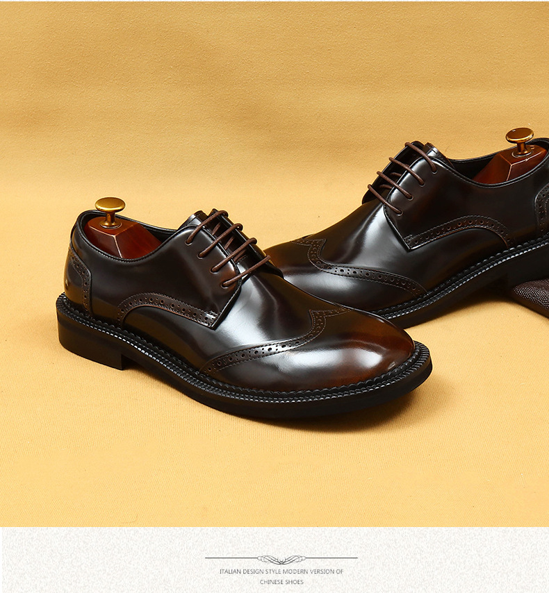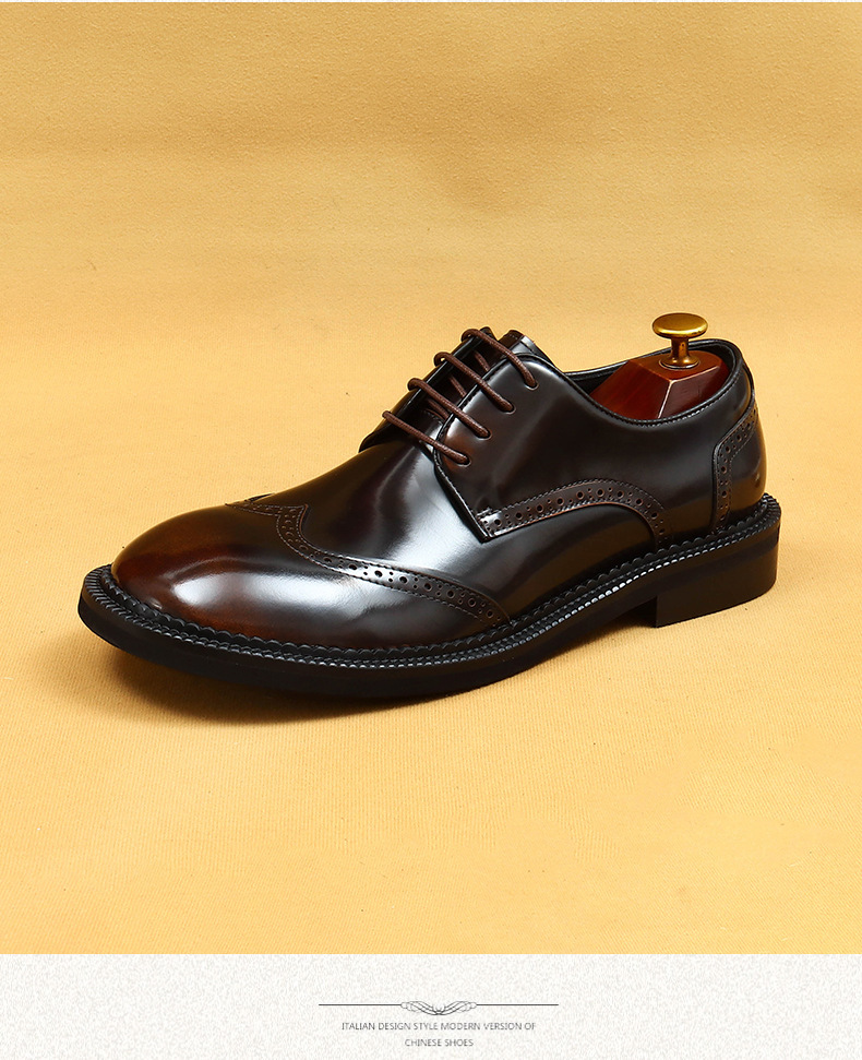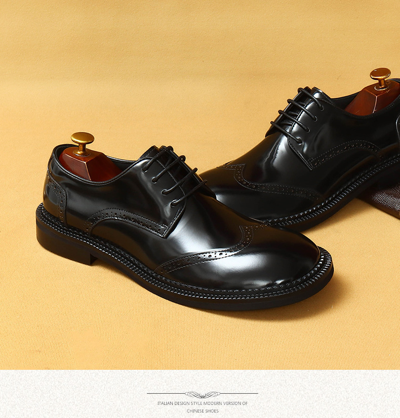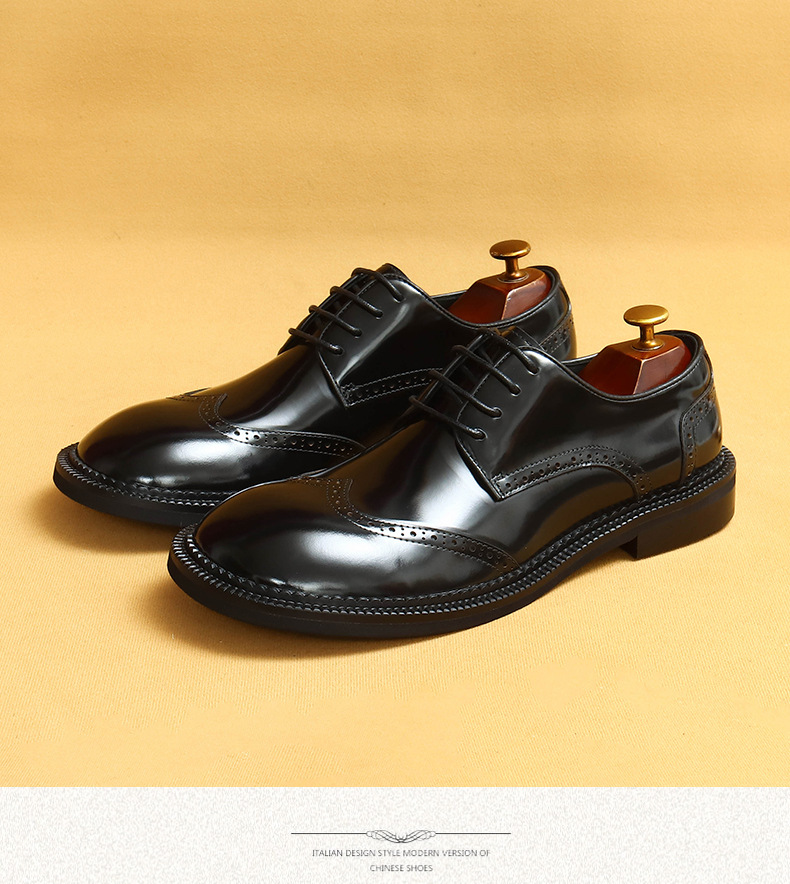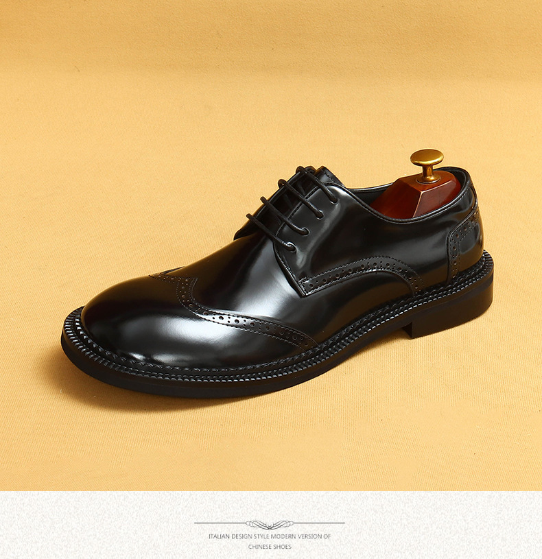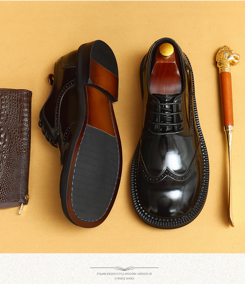 Британская повседневная кожаная обувь мужская кожаная одежда бизнес 2025 новая большая голова круглая голова блестящие мужские туфли