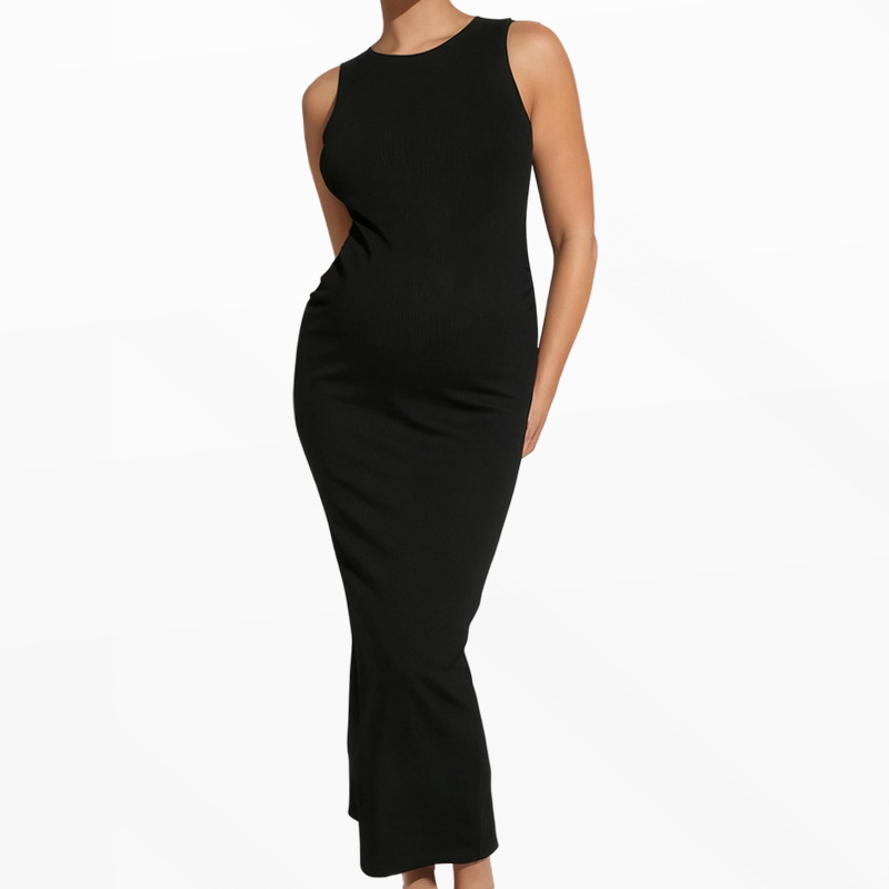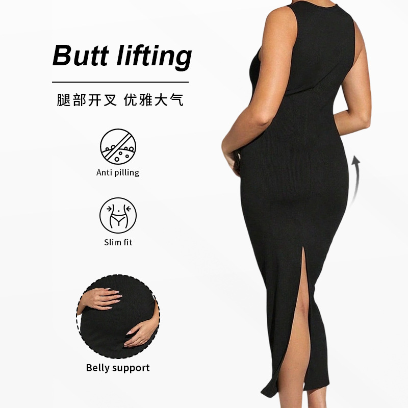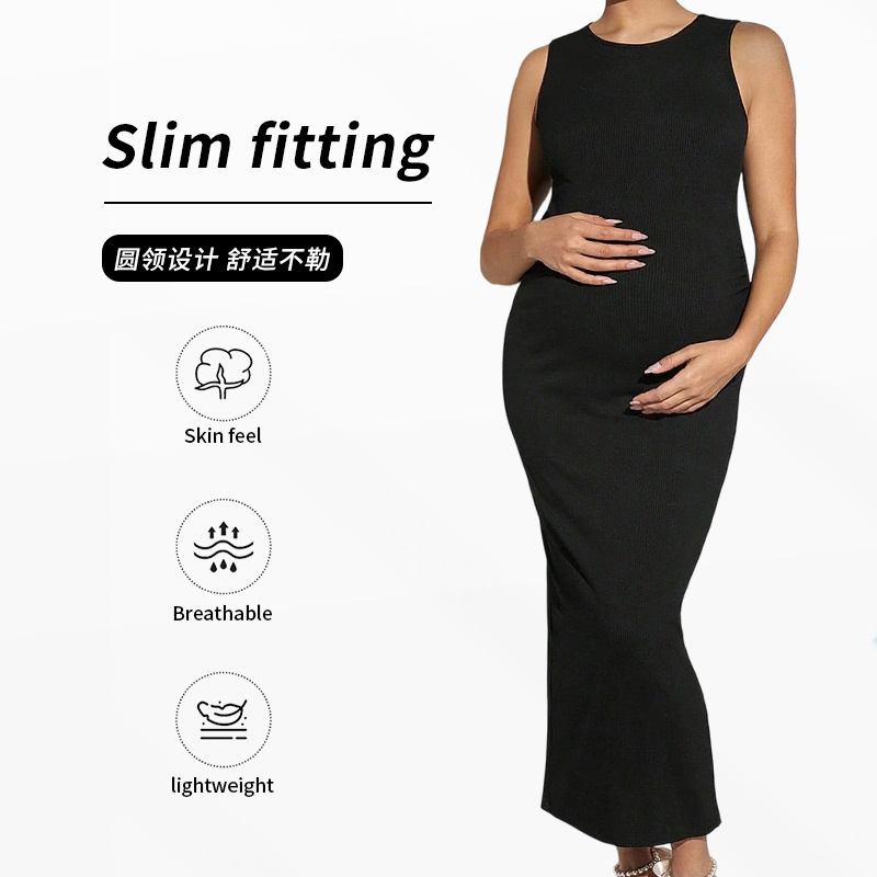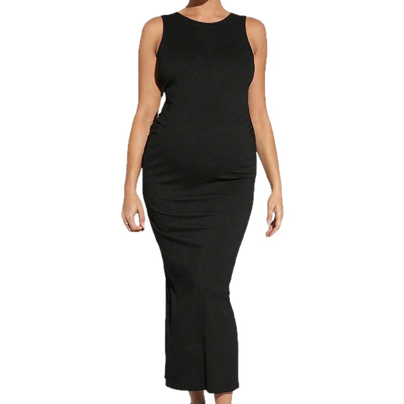 Платье миди без рукавов в европейском и американском стиле с разрезом сзади, облегающее, трикотажное, осеннее, для беременных, стройнящее фигуру