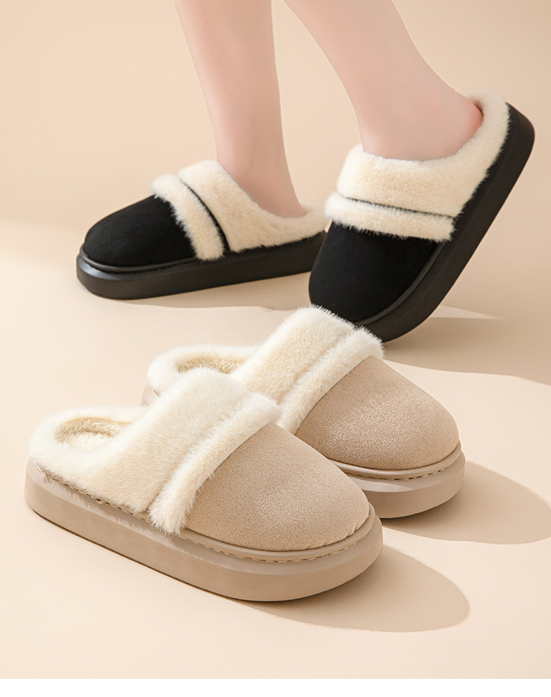 Осенние и зимние теплые хлопковые тапочки для женщин, нескользящие, устойчивые к запахам, на толстой подошве, теплые, модные, подходящие для ношения на улице, хлопковые туфли на флисовой подкладке.