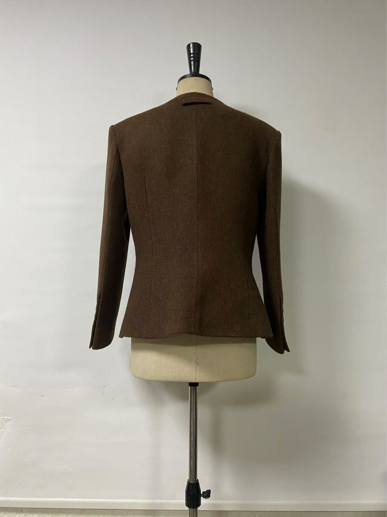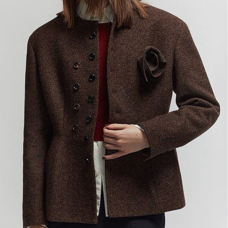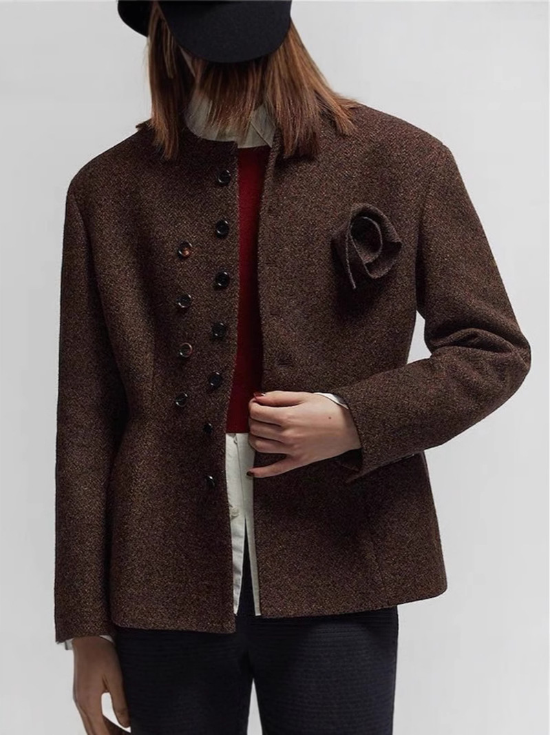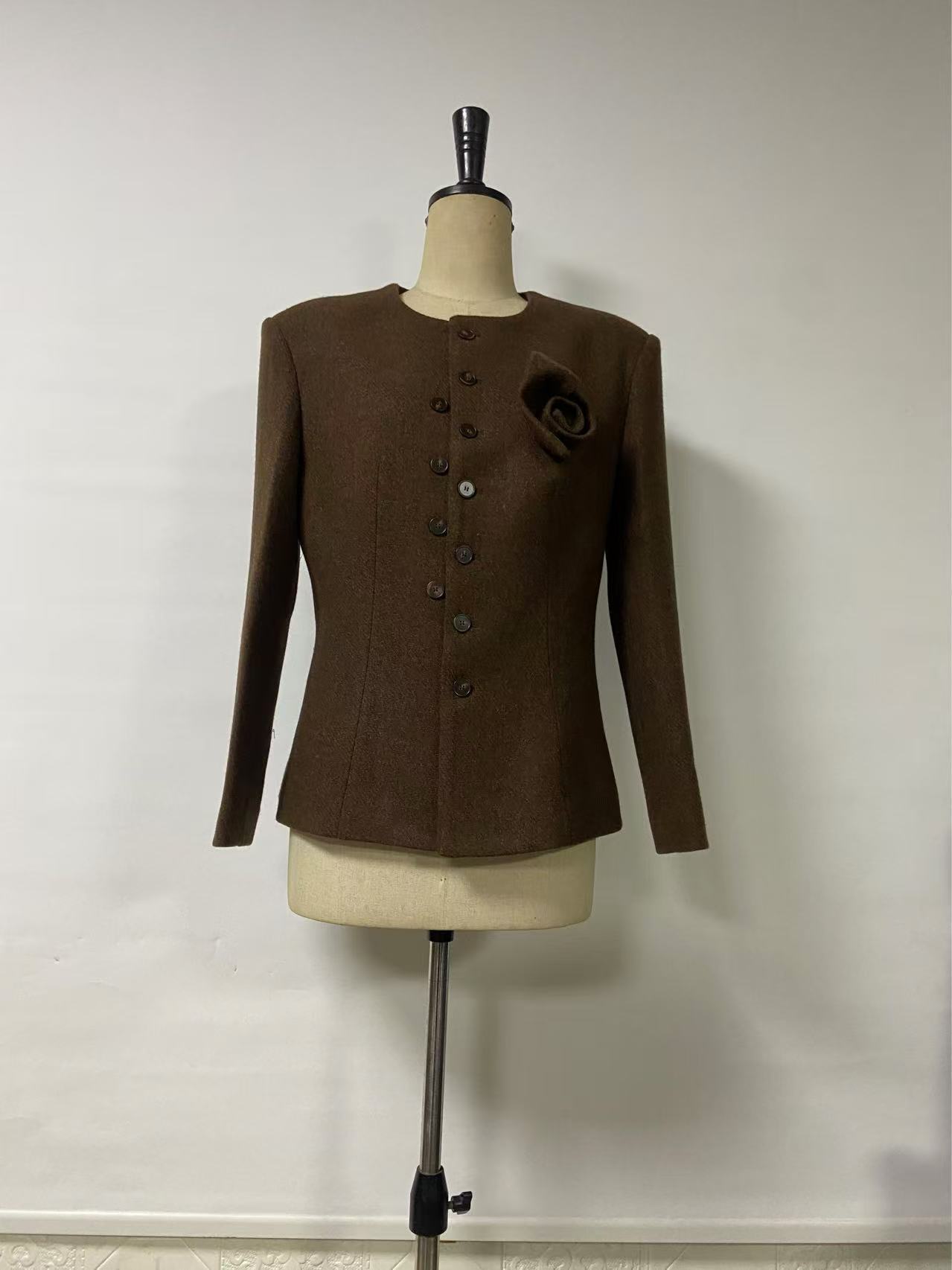 2024 новый осенний и зимний мода высокого класса стерео роз корсак нерегулярно выпуклый талия с круглым вырезом шерстяная шерстяная куртка