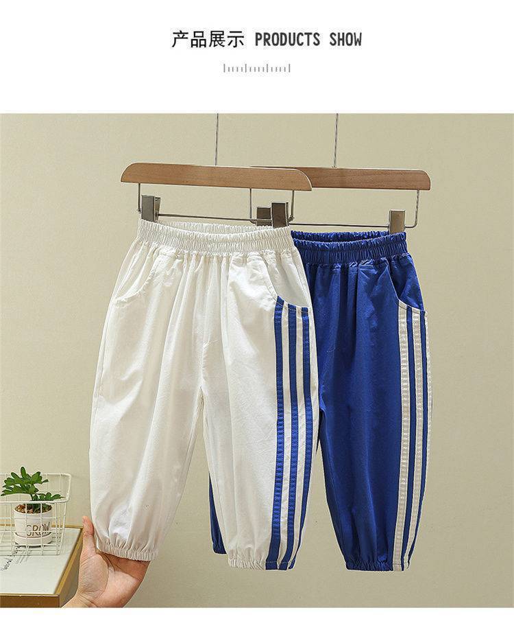 Спортивные повседневные брюки для мальчиков от комаров 2024 летом новые боковые полоски спортивные повседневные брюки