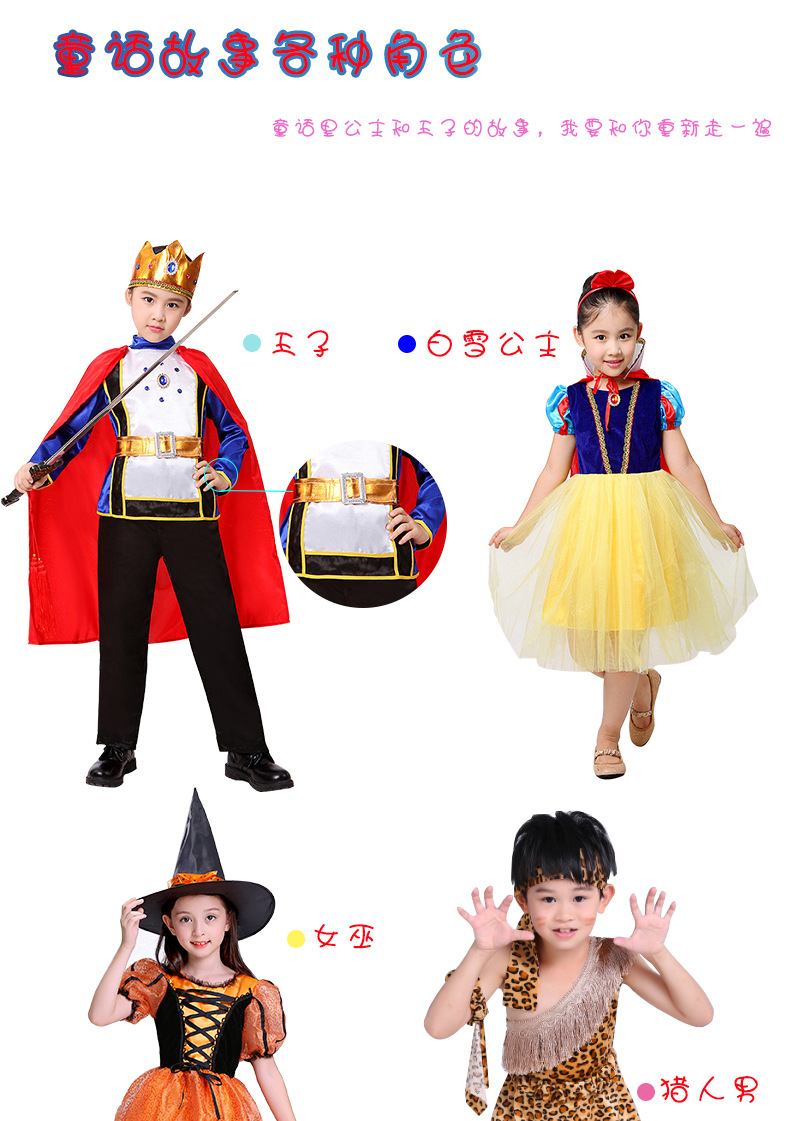 Детская Белоснежка Семь гномов Сценические костюмы Сказочная драма Принц Охотник Волшебное зеркало