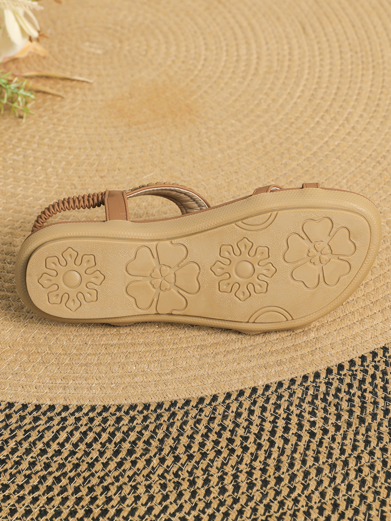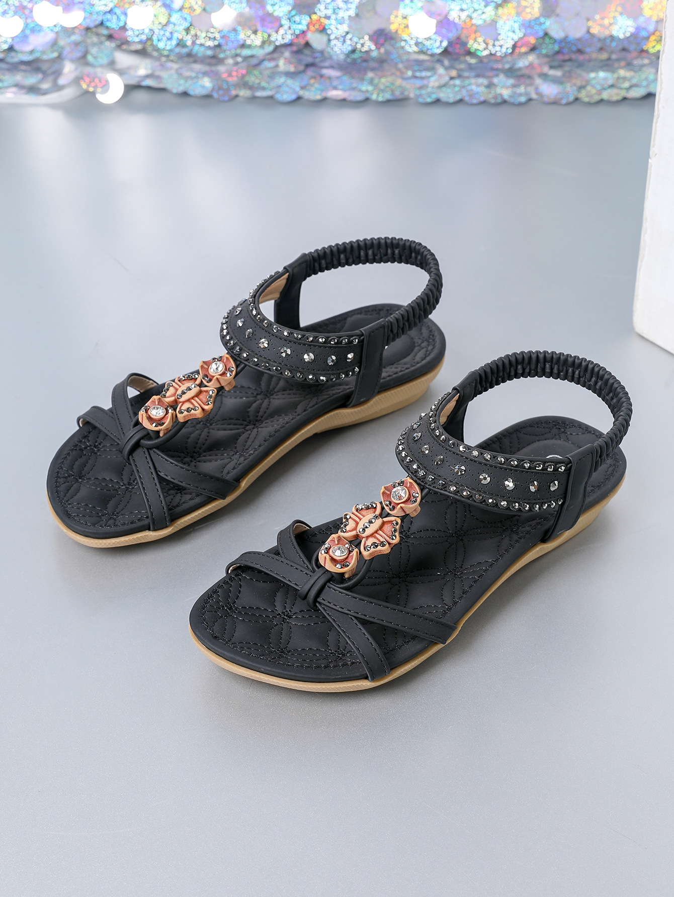 Летние женские сандалии 2024 в богемном стиле, плоские, для внешней торговли, большие размеры, со стразами, повседневные, оптом, на плоской подошве