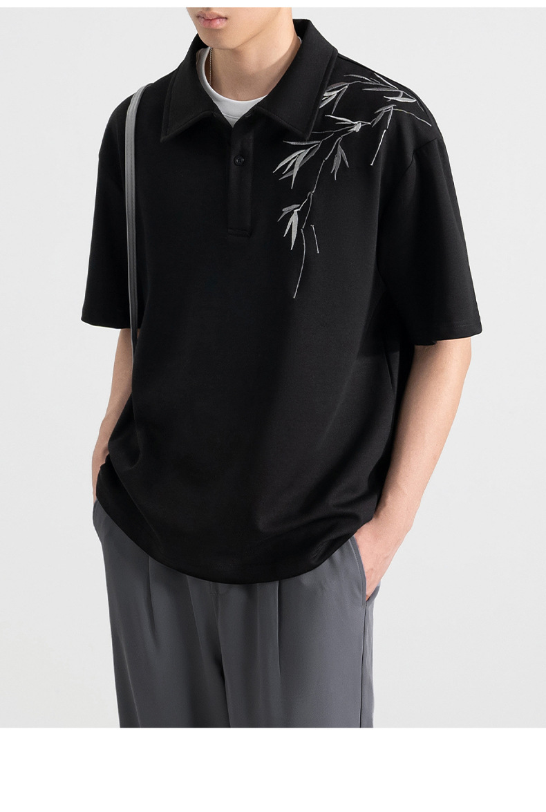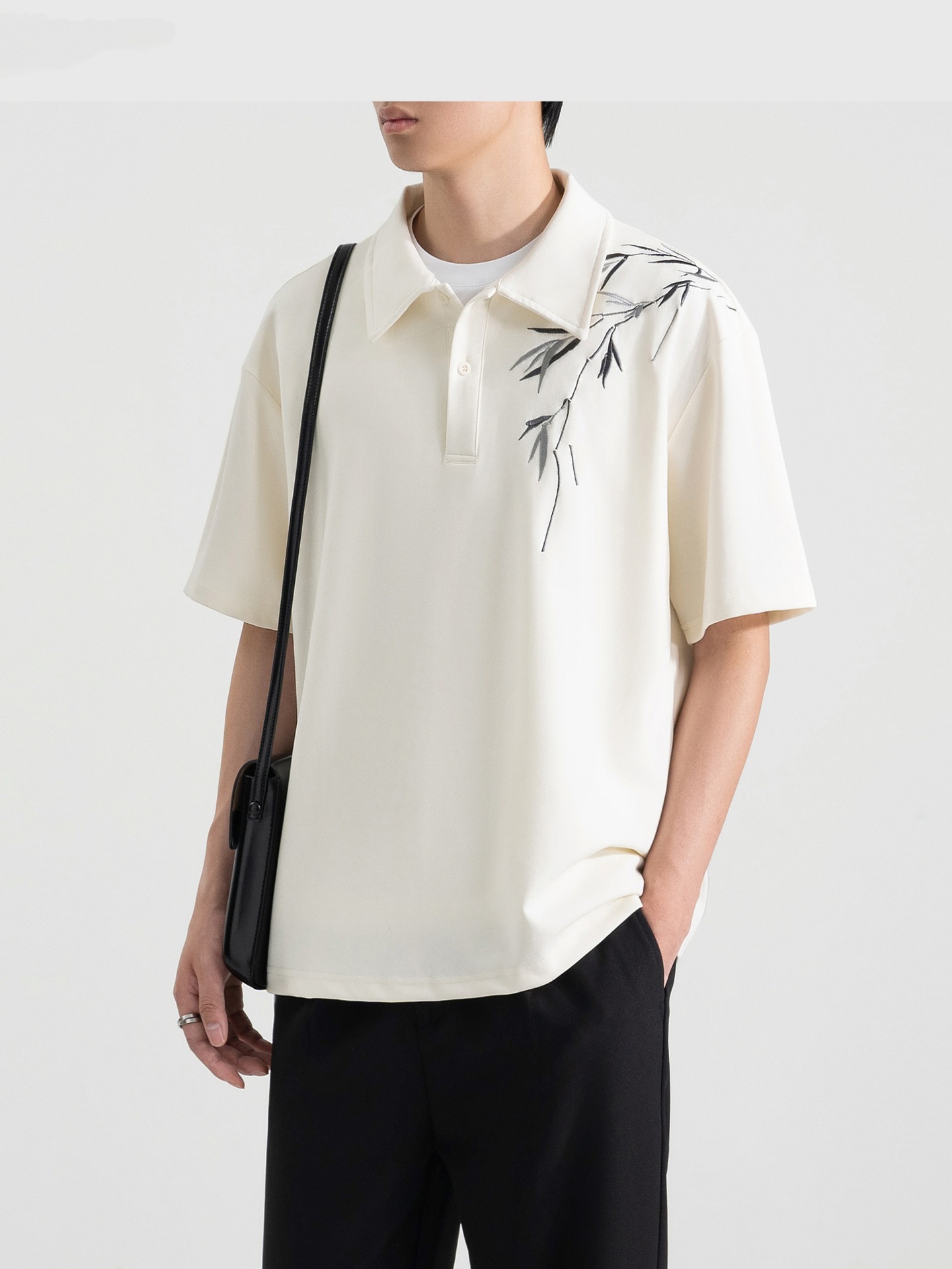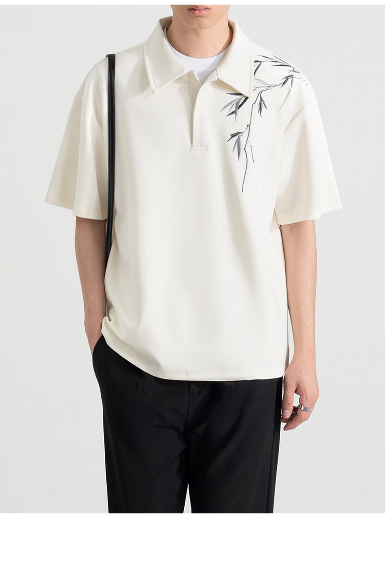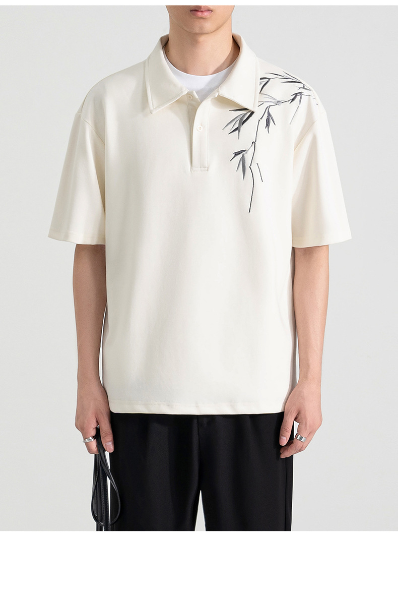 Национальный стиль китайского бамбука вышитый мальчик с отворотом рубашка поло мужская футболка с короткими рукавами лето 2024 новая одежда