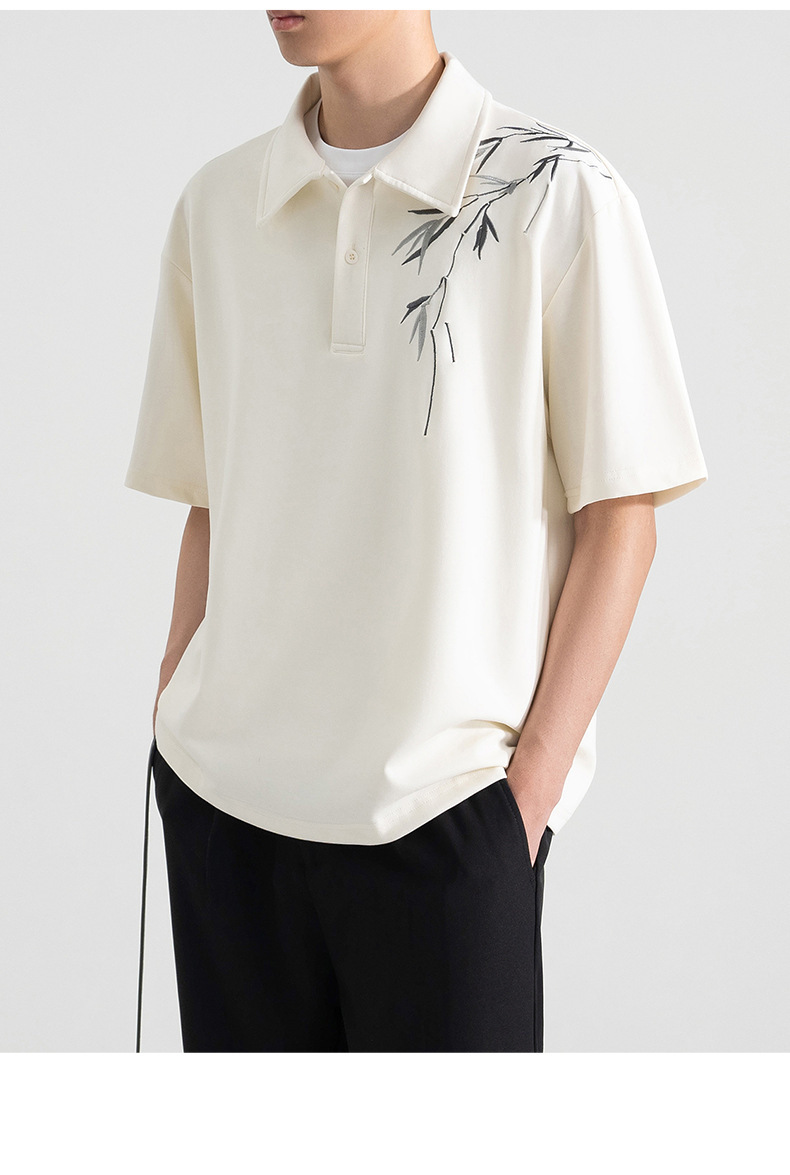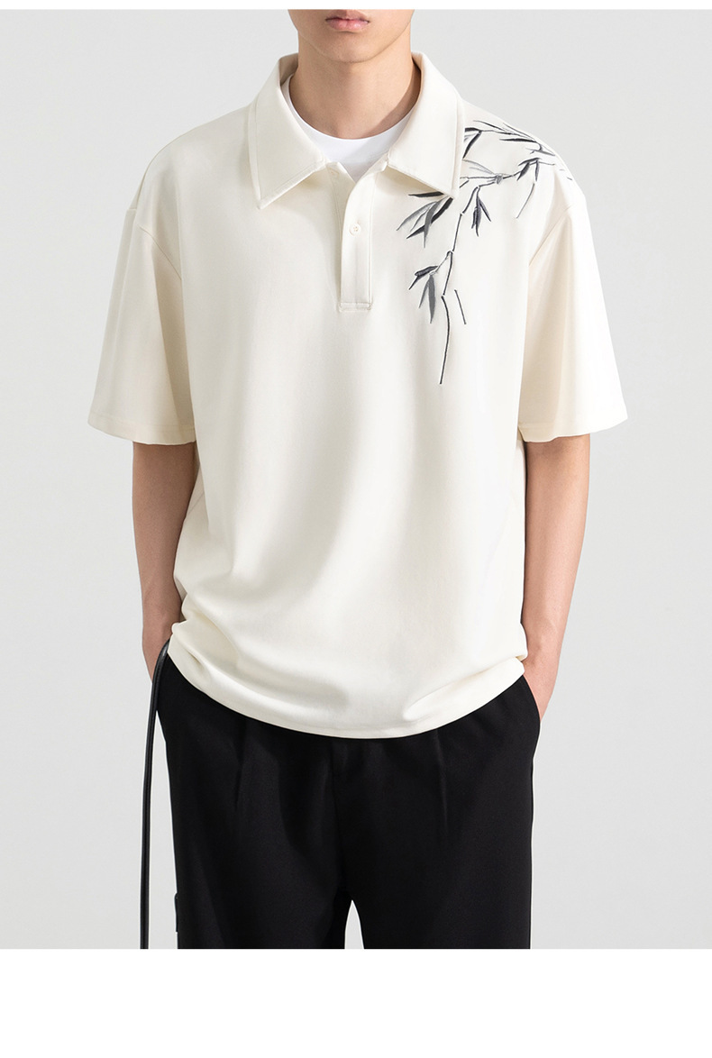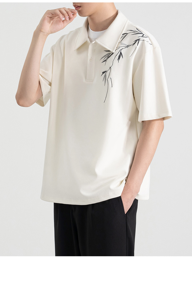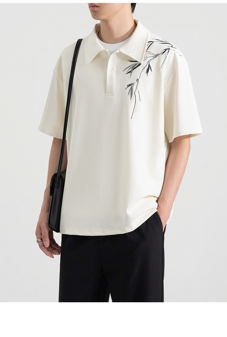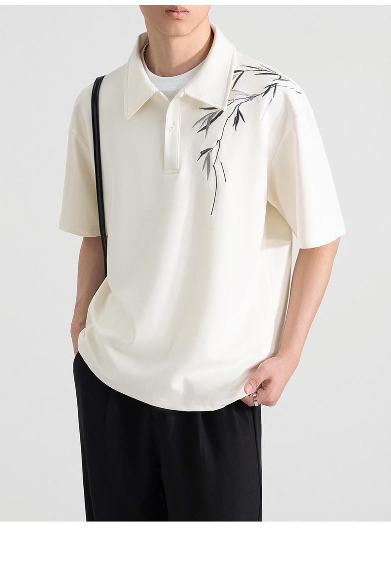 Национальный стиль китайского бамбука вышитый мальчик с отворотом рубашка поло мужская футболка с короткими рукавами лето 2024 новая одежда