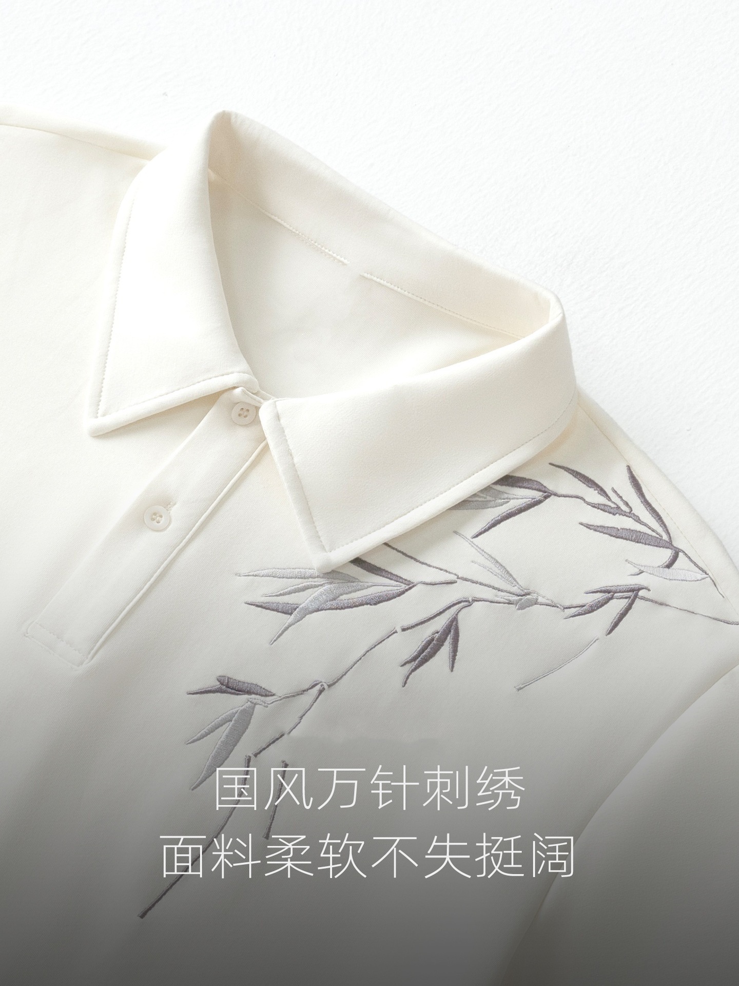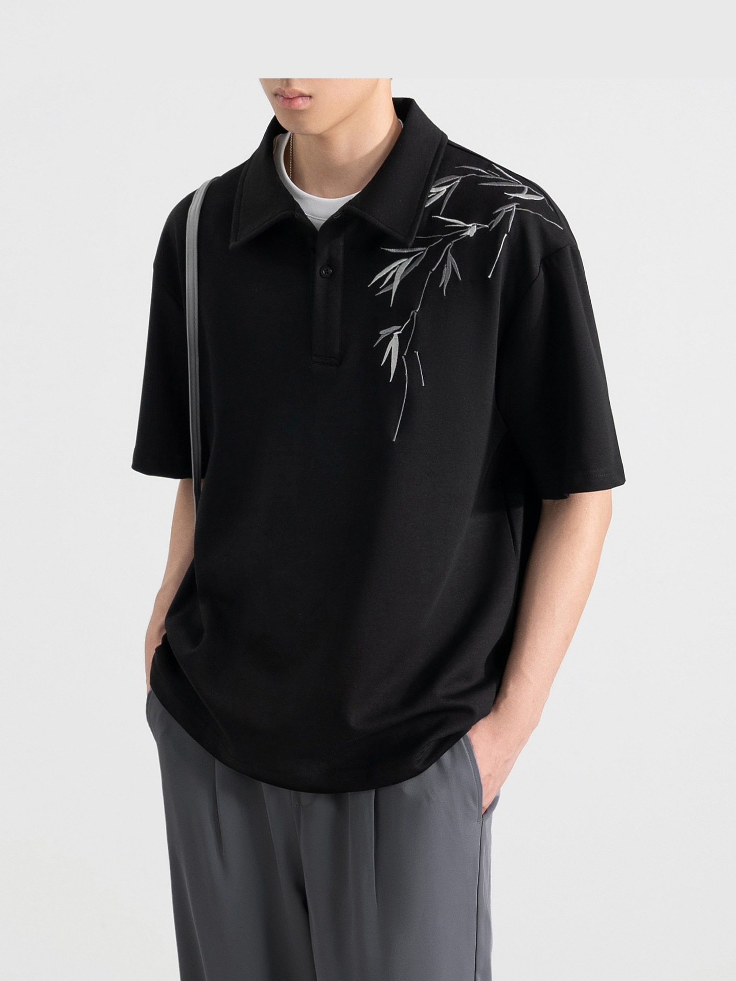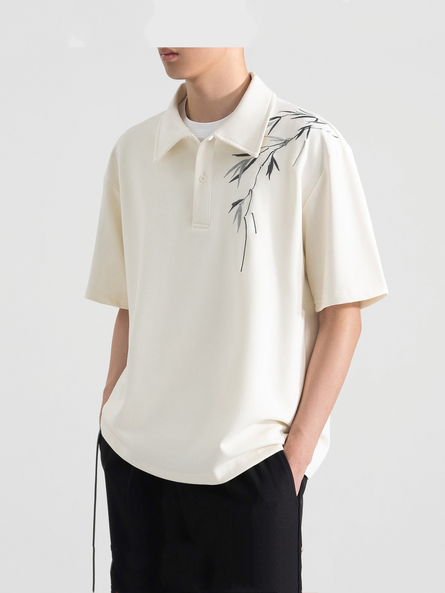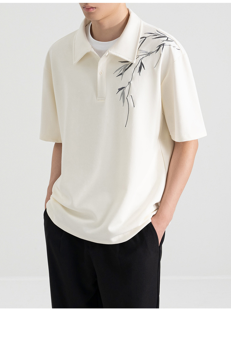 Национальный стиль китайского бамбука вышитый мальчик с отворотом рубашка поло мужская футболка с короткими рукавами лето 2024 новая одежда