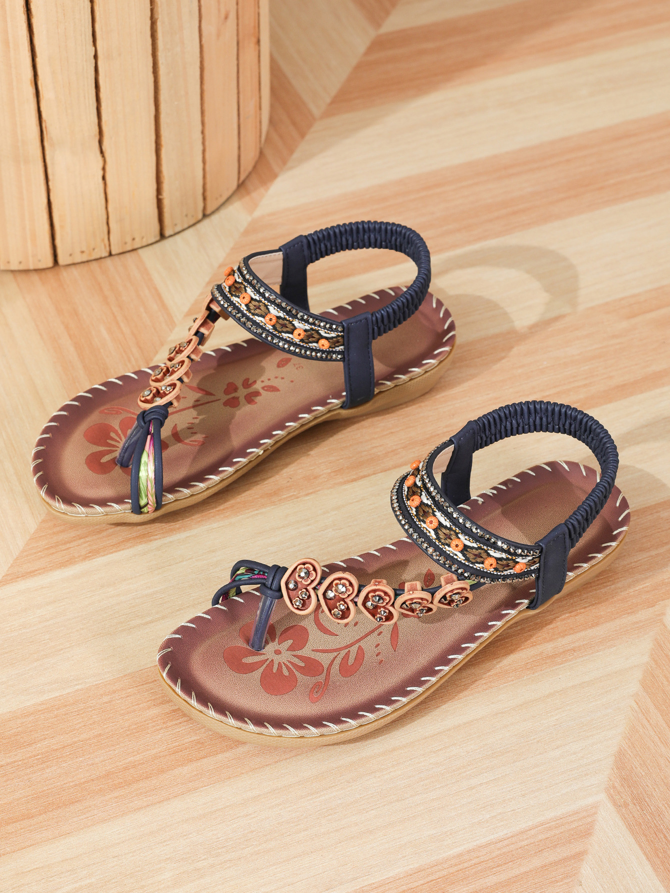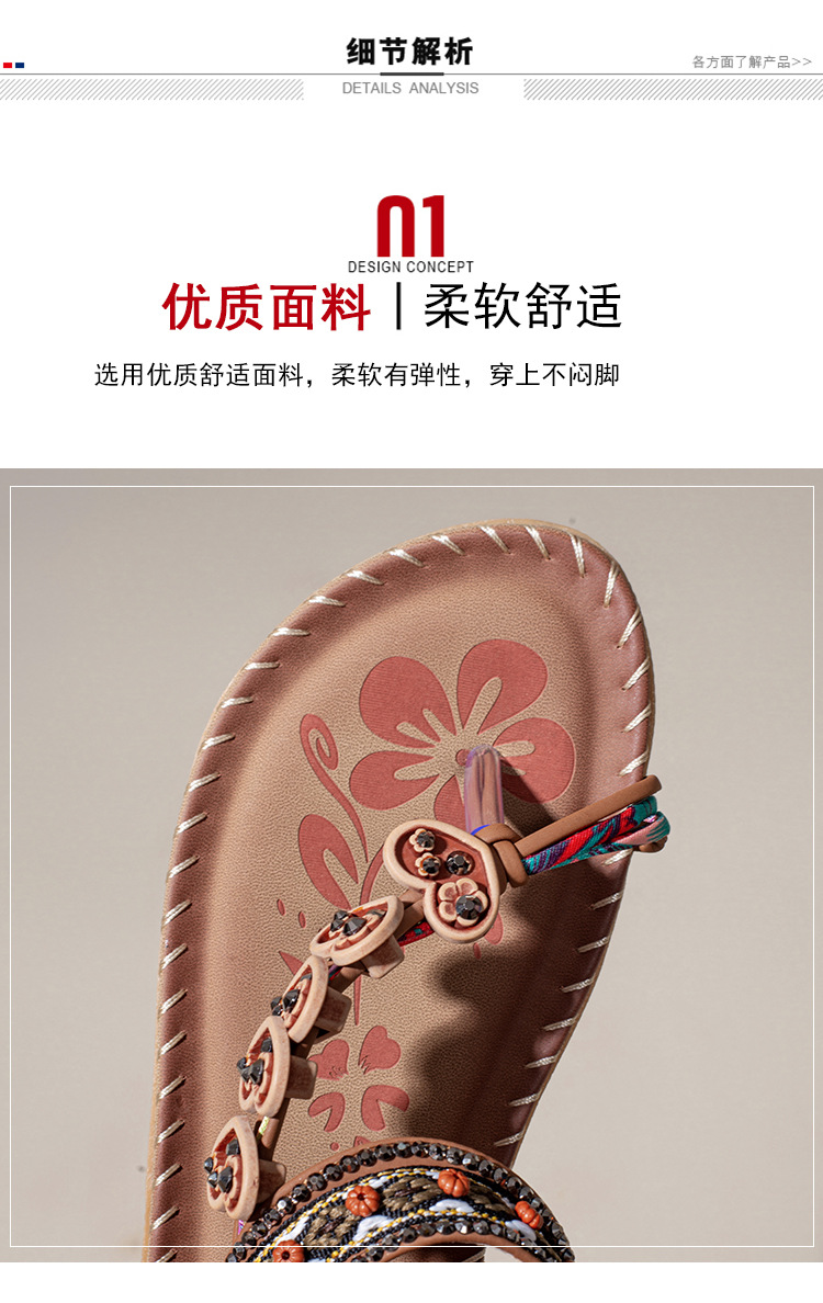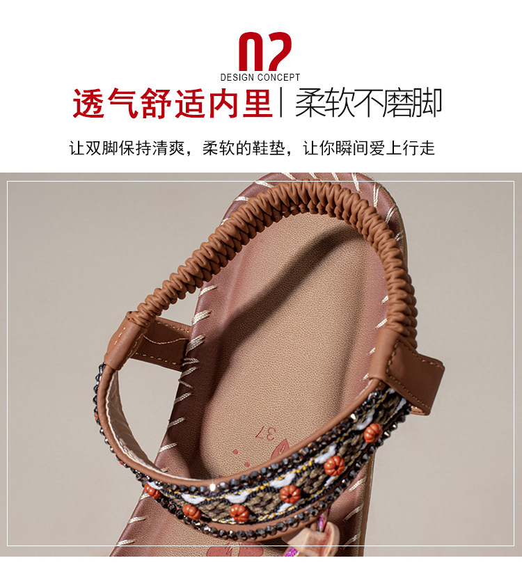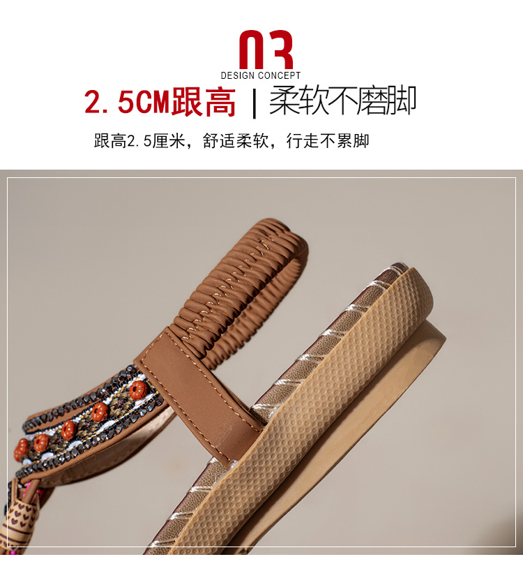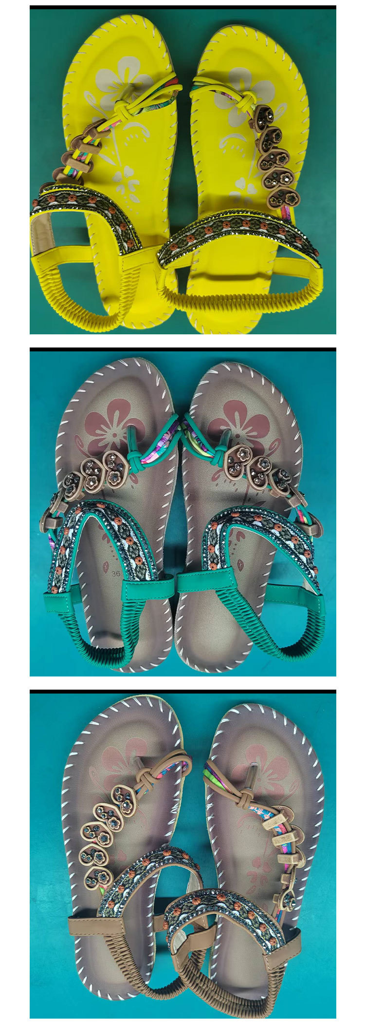 Трансграничная женская обувь в богемном этническом стиле, летние модные пляжные сандалии на плоской подошве, шлепанцы с бриллиантами и бисером