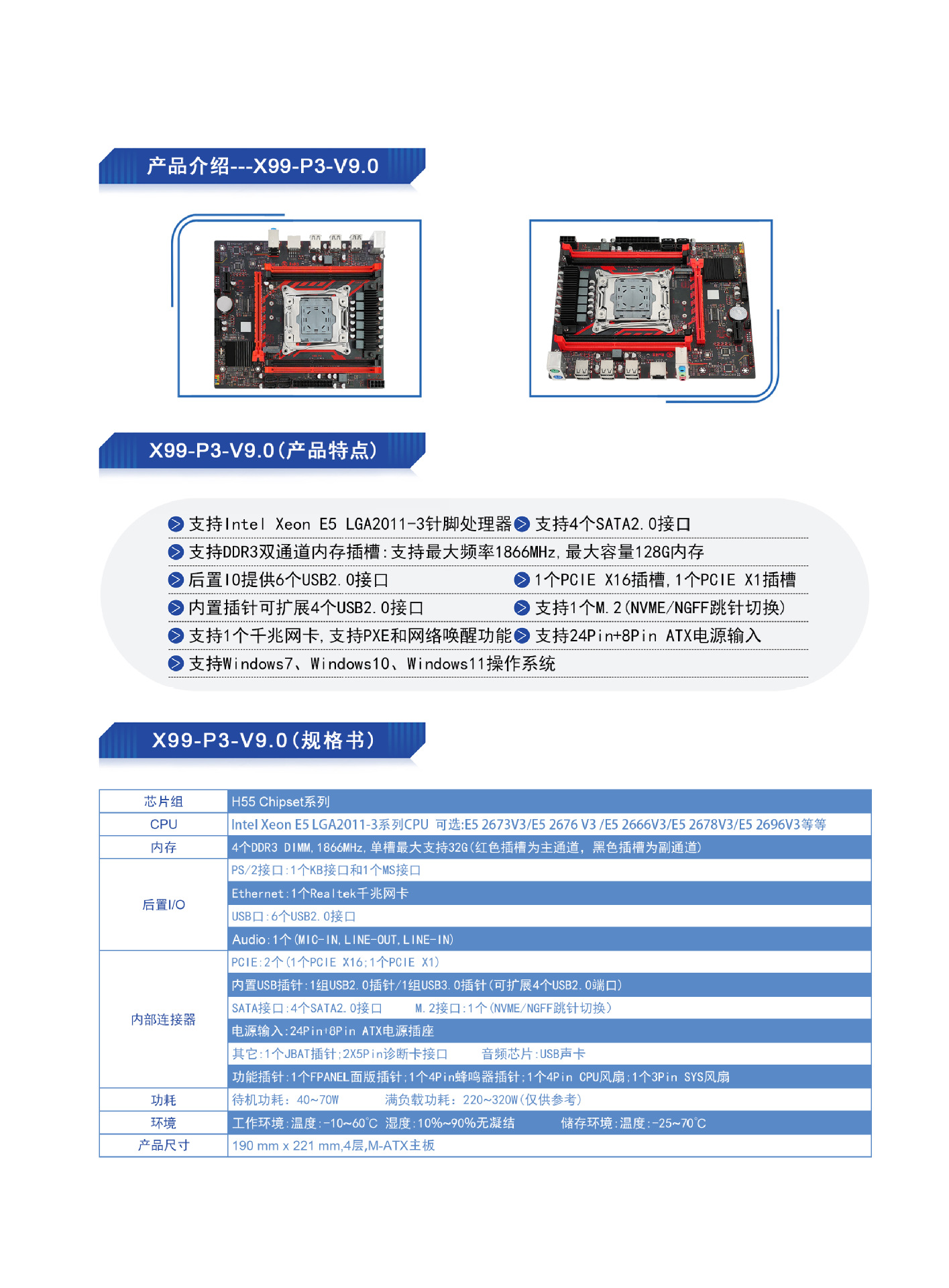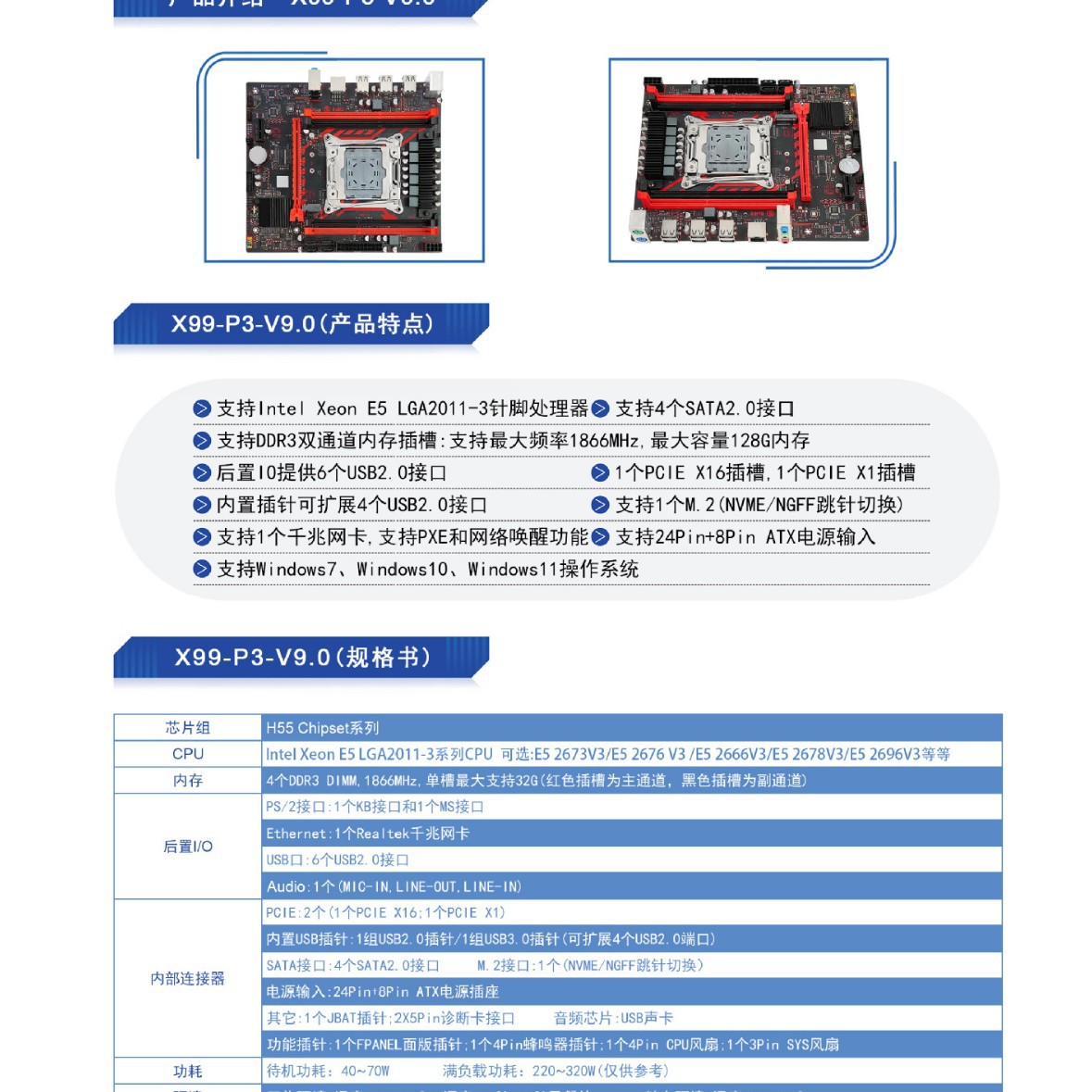 X99-P3-V9.0 Новая материнская плата поддерживает 2011-3-контактную память DDR3 с четырьмя слотами для настольного компьютера