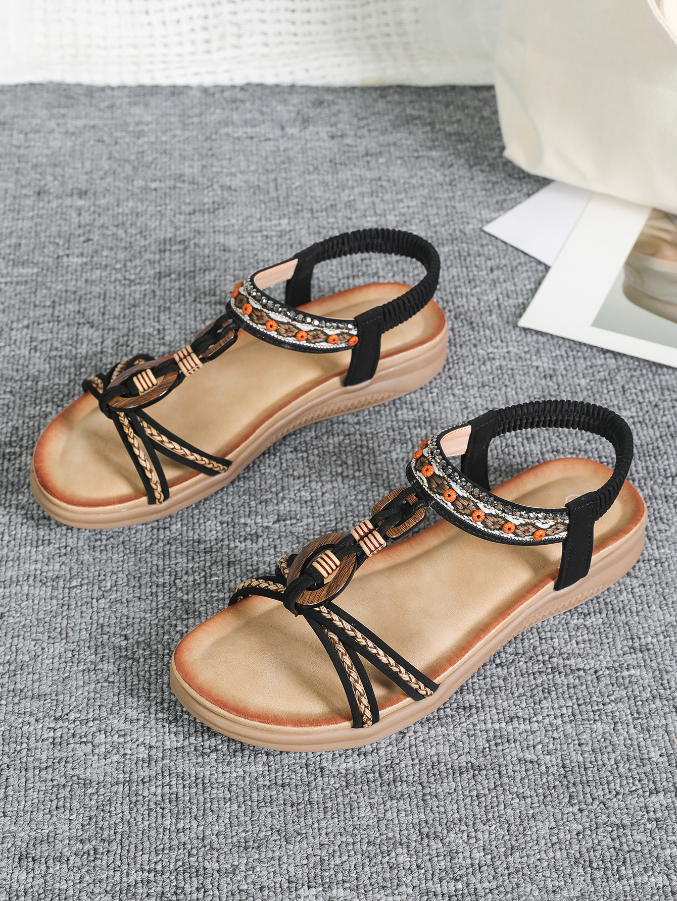 Богемная женская обувь, модные ретро сандалии ручной работы на плоской подошве с деревянной пряжкой, внешняя торговля, женская обувь, оптовая продажа, легкая пляжная обувь для женщин