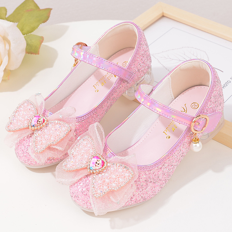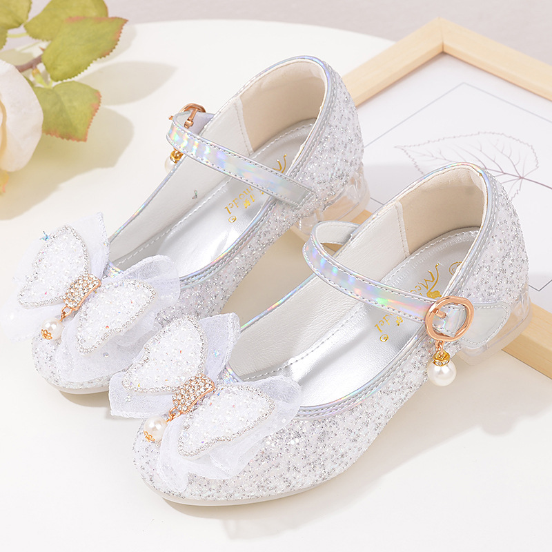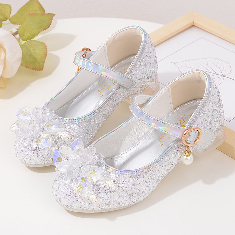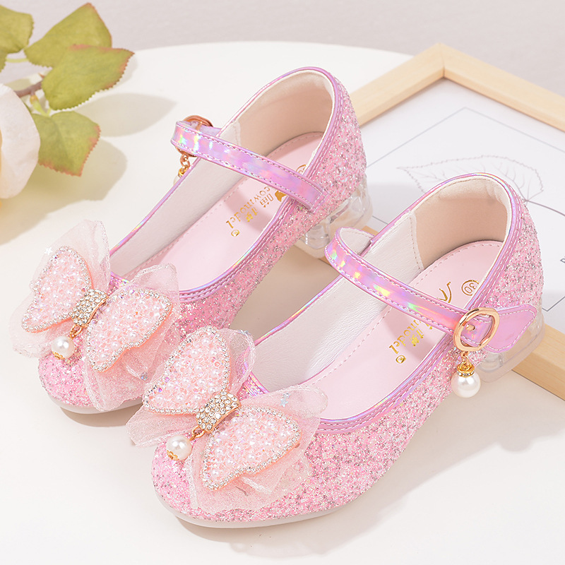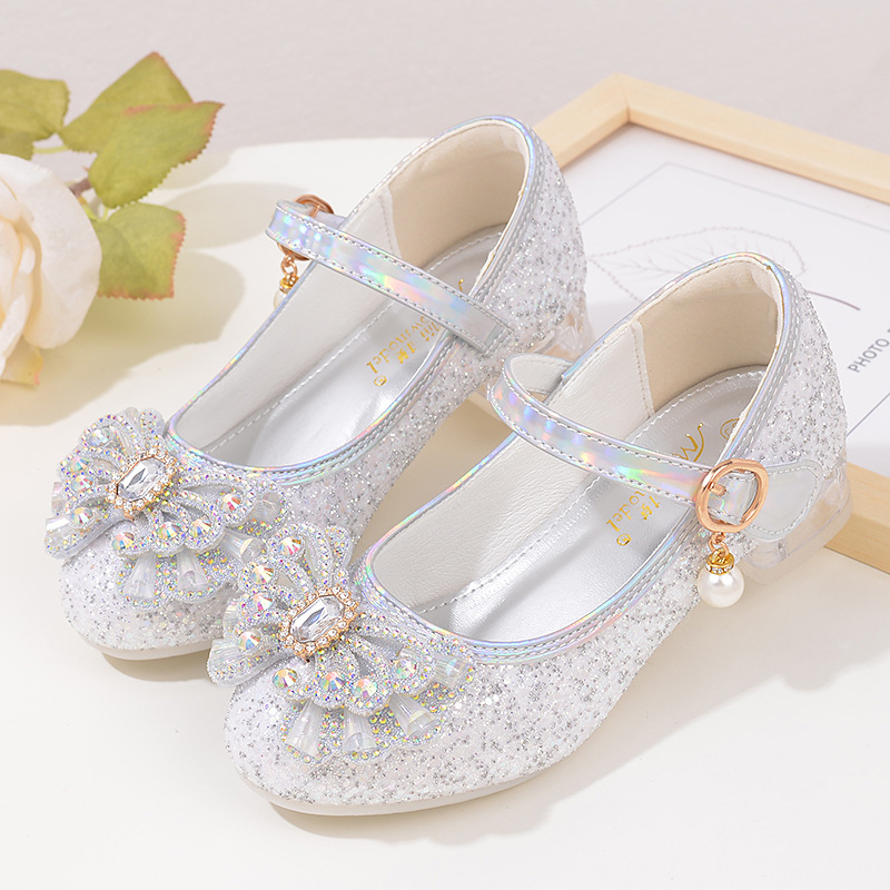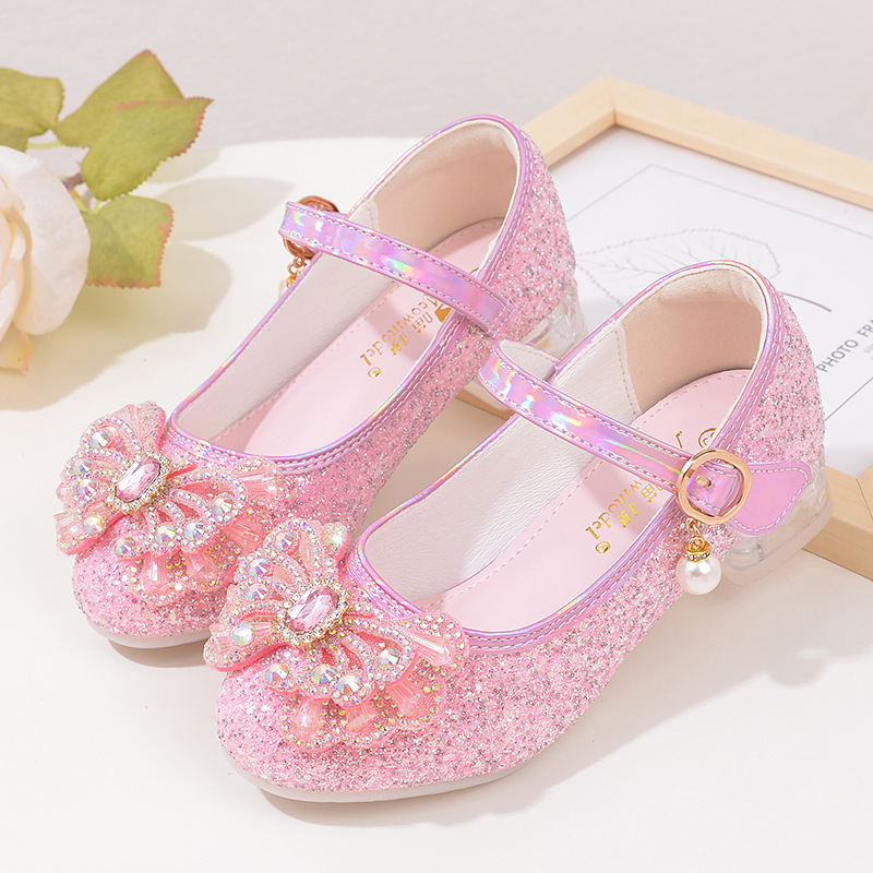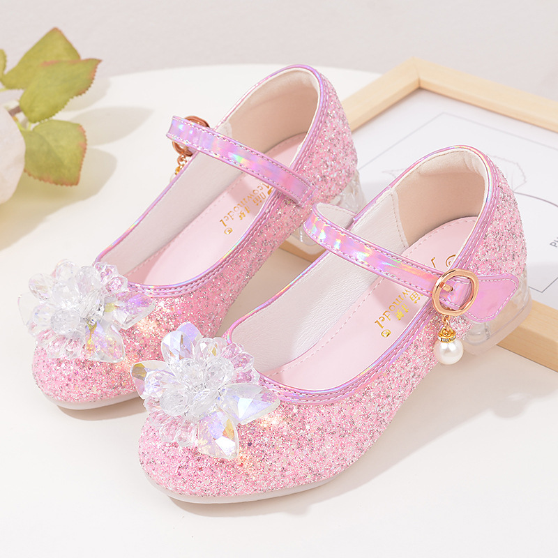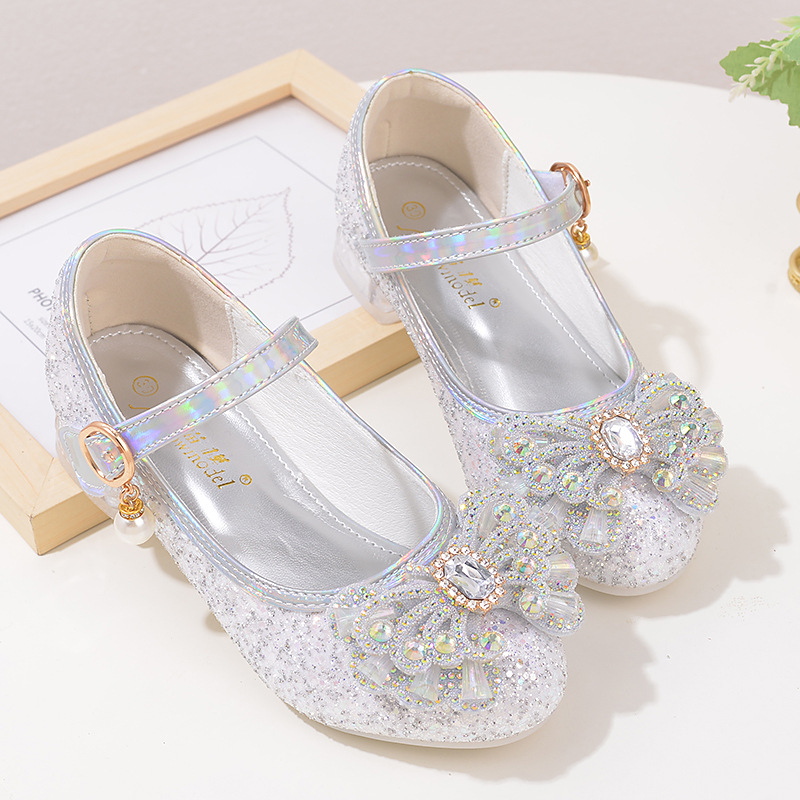 Одиночная обувь для девочек модная принцесса на высоком каблуке весна осень новый стиль маленькая девочка блестящие хрустальные туфли для детей кожаные туфли