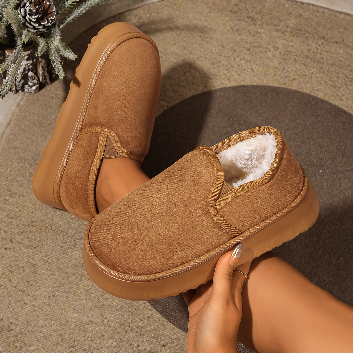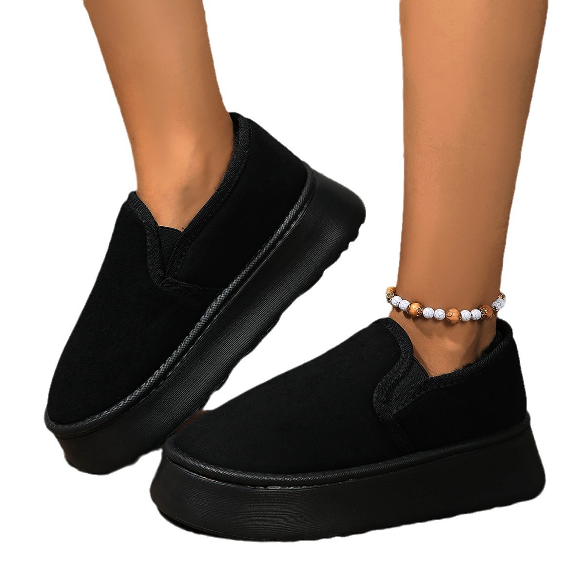 Ленивый один педаль хлебная обувь женский 2024 осень и зима новые снежные сапоги с толстым дном корейская версия дикого бархата теплая хлопчатобумажная обувь