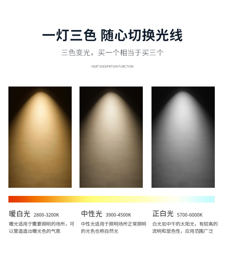 Белый свет (6500K); Средний свет (4000K); Теплый свет (3000K); Интеллектуальное бесэлектродное затемнение (2700K-6500K)