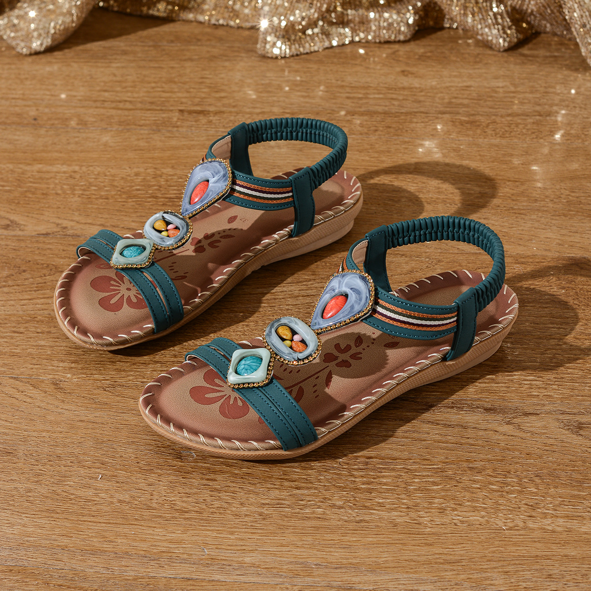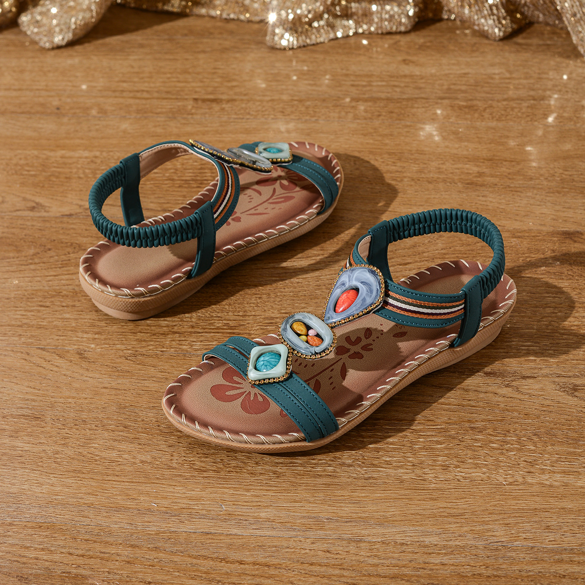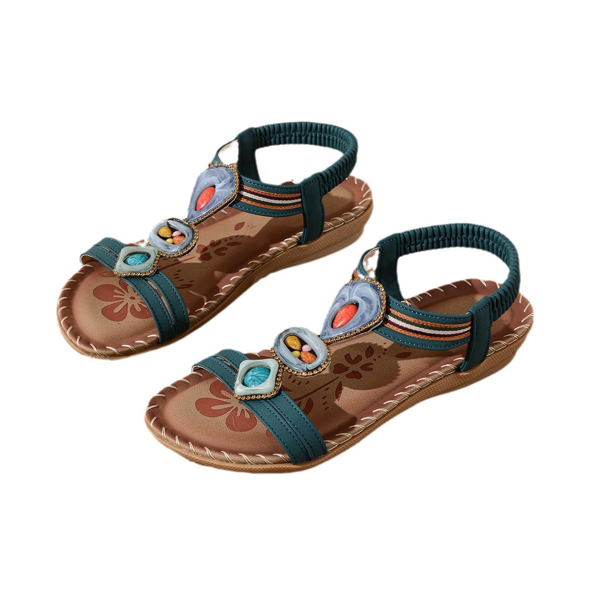 Новинка весны 2024, богемные женские трансграничные сандалии Amazon на плоской подошве большого размера в клетку, внешняя торговля