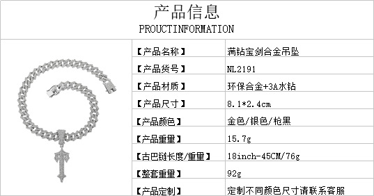 Трансграничный полный бриллиант меч сплава кулон хип-хоп кубинский цепной кулон модный дизайн ожерелье мужская ключица хип-хоп