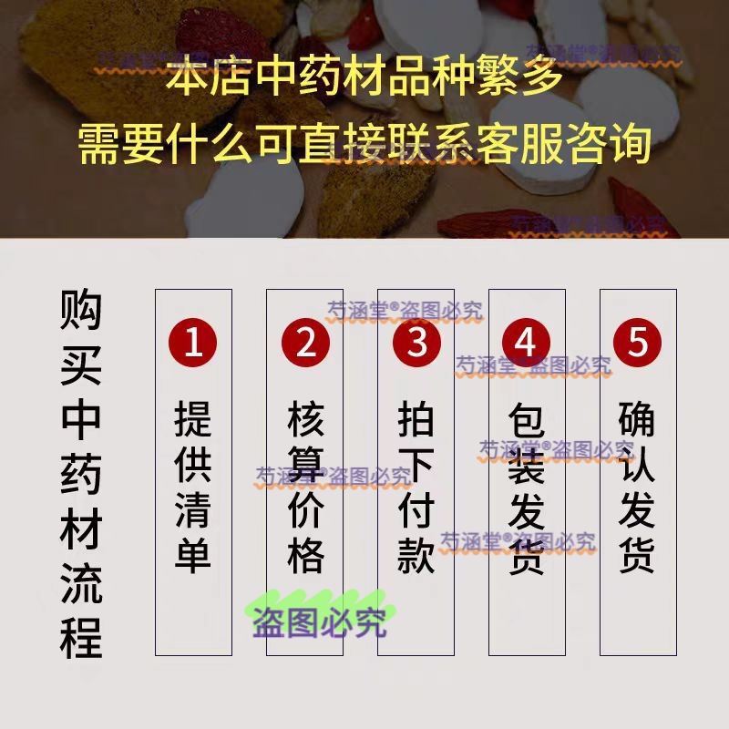 发送清单给客服,核算价格。如果不联系直接拍下的,默认发1g薏苡仁。请悉知